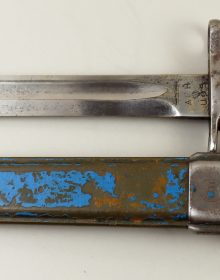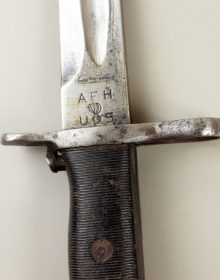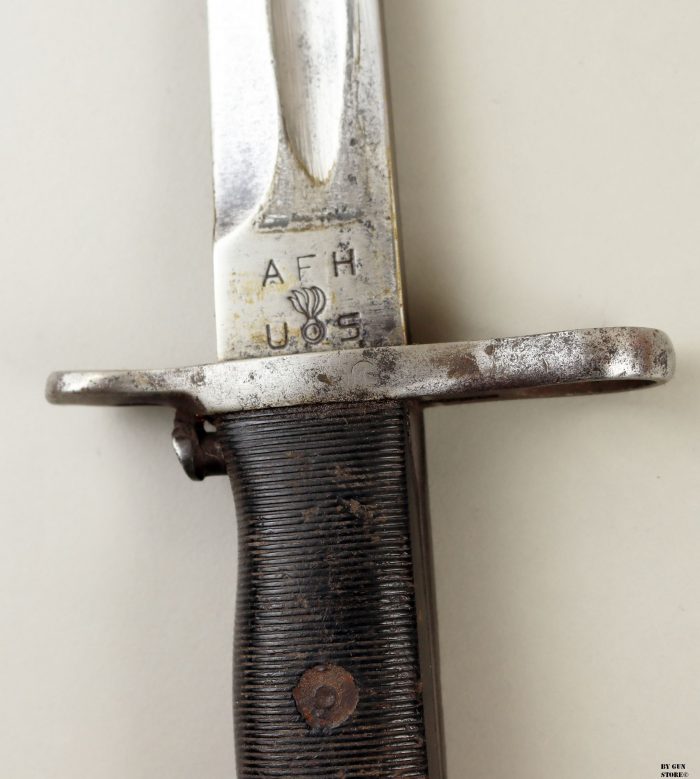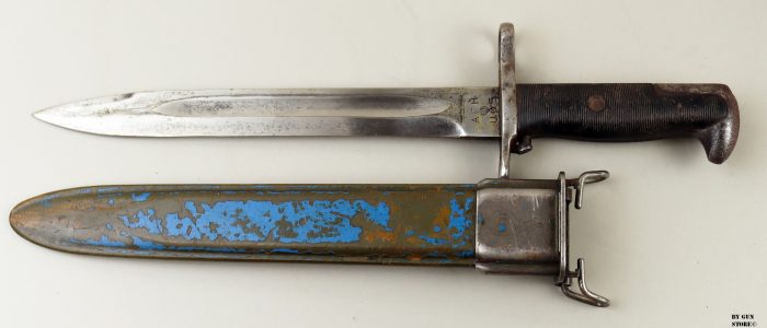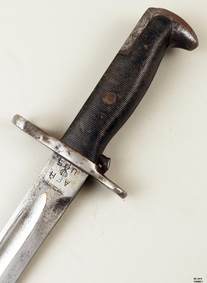Baionetta modello M1 per fucile Garand M1 e Springfield 1903. Lama 10” pollici, marcata AFH (American Fork and Hoe) US e flaming bomb. Fodero M7