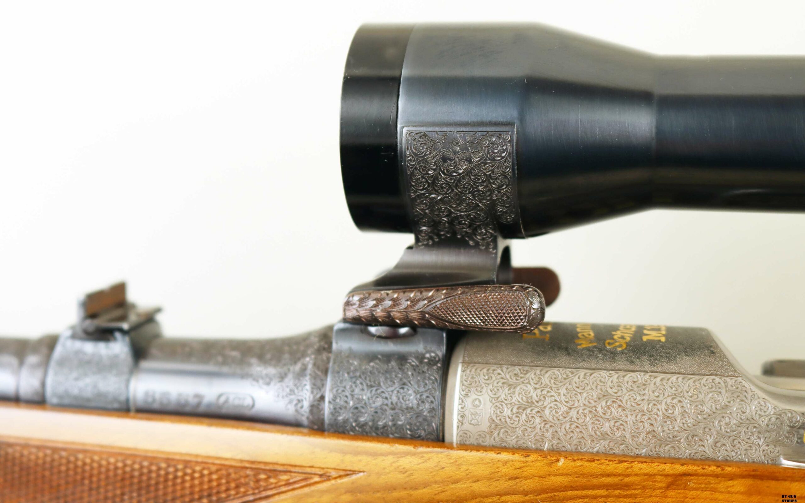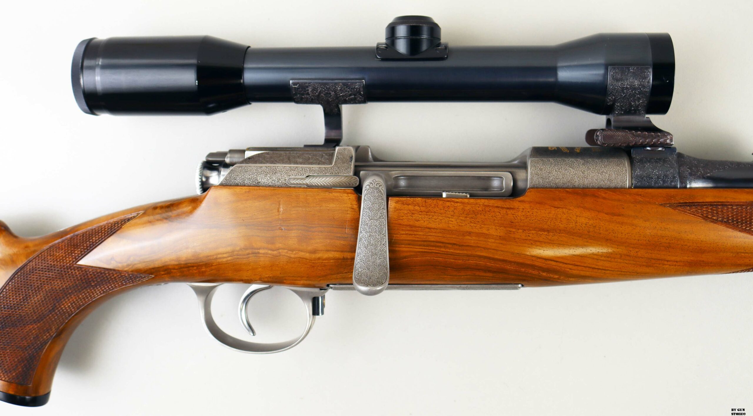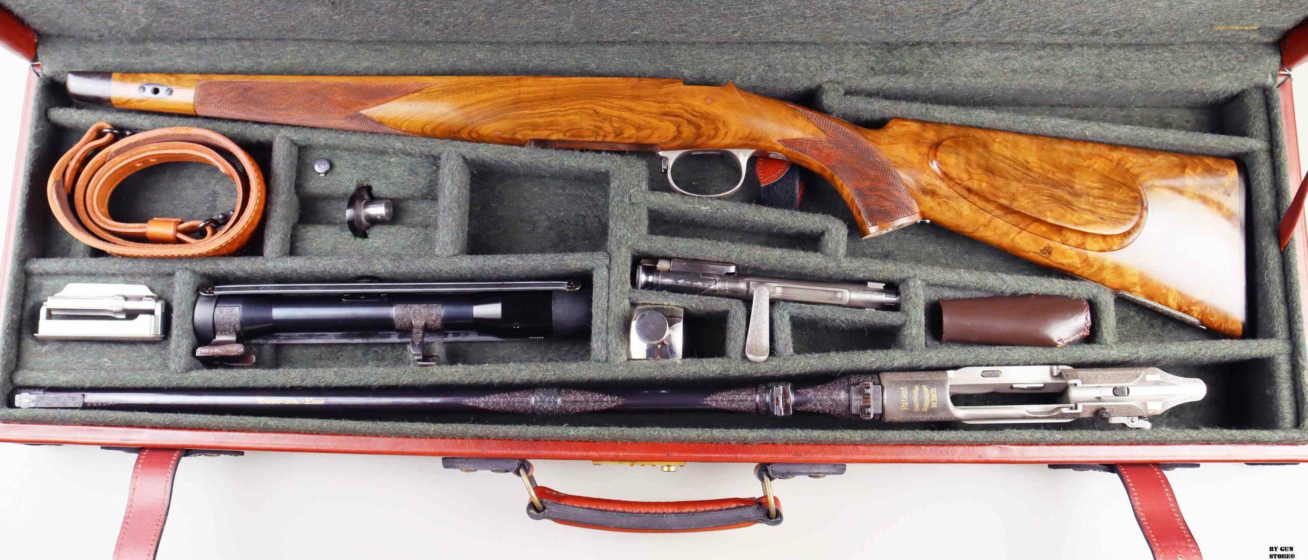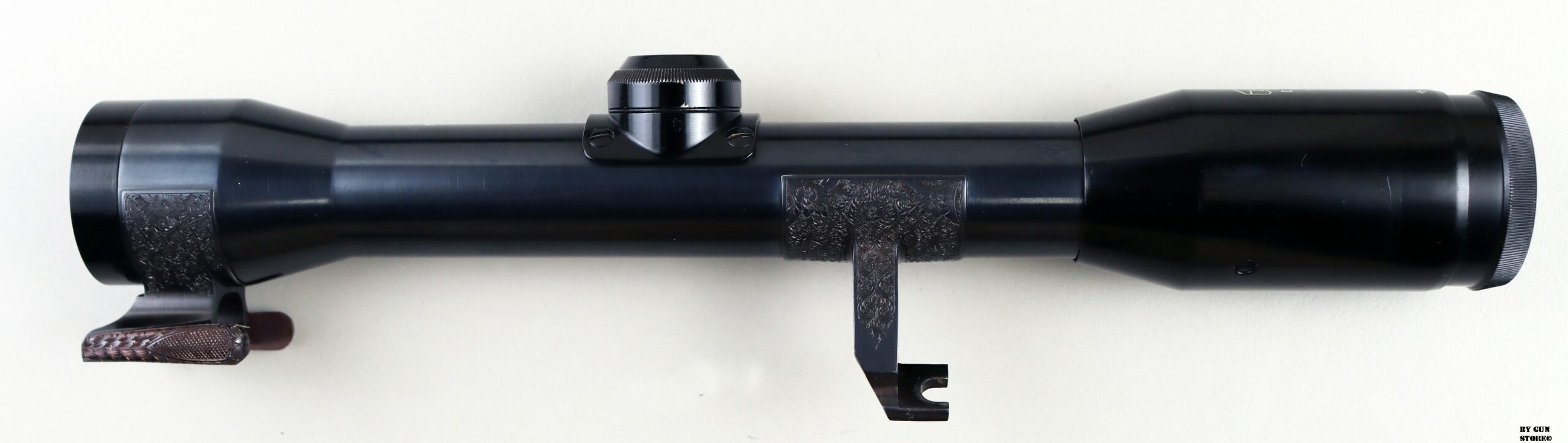 Un’opera d’arte, un fucile della Osterreich Waffenfabrick Steyr nel modello Mannlicher Schoenauer 1905, finemente elaborato dalla Concari Armi di Lecco. Arma bancata originariamente nel 1983 presso il BNP di Gardone Valtrompia (AL). Un’arma finemente incisa in una versione Luxus. Un set completo di cassetta e smontabile. Arma completa della sua ottica dedicata, anch’essa incisa, Carl Zeiss nel modello Diasta 4×32 con reticolo perfetto. Una carabina da caccia in condizioni splendide, che ha vuto un unico proprietario, con calcio in radica, impugnatura a pistola con zigrini ottimi e poggiaguancia. Completa il tutto la cassetta dedicata per il trasporto. Calibro 6,5×57.