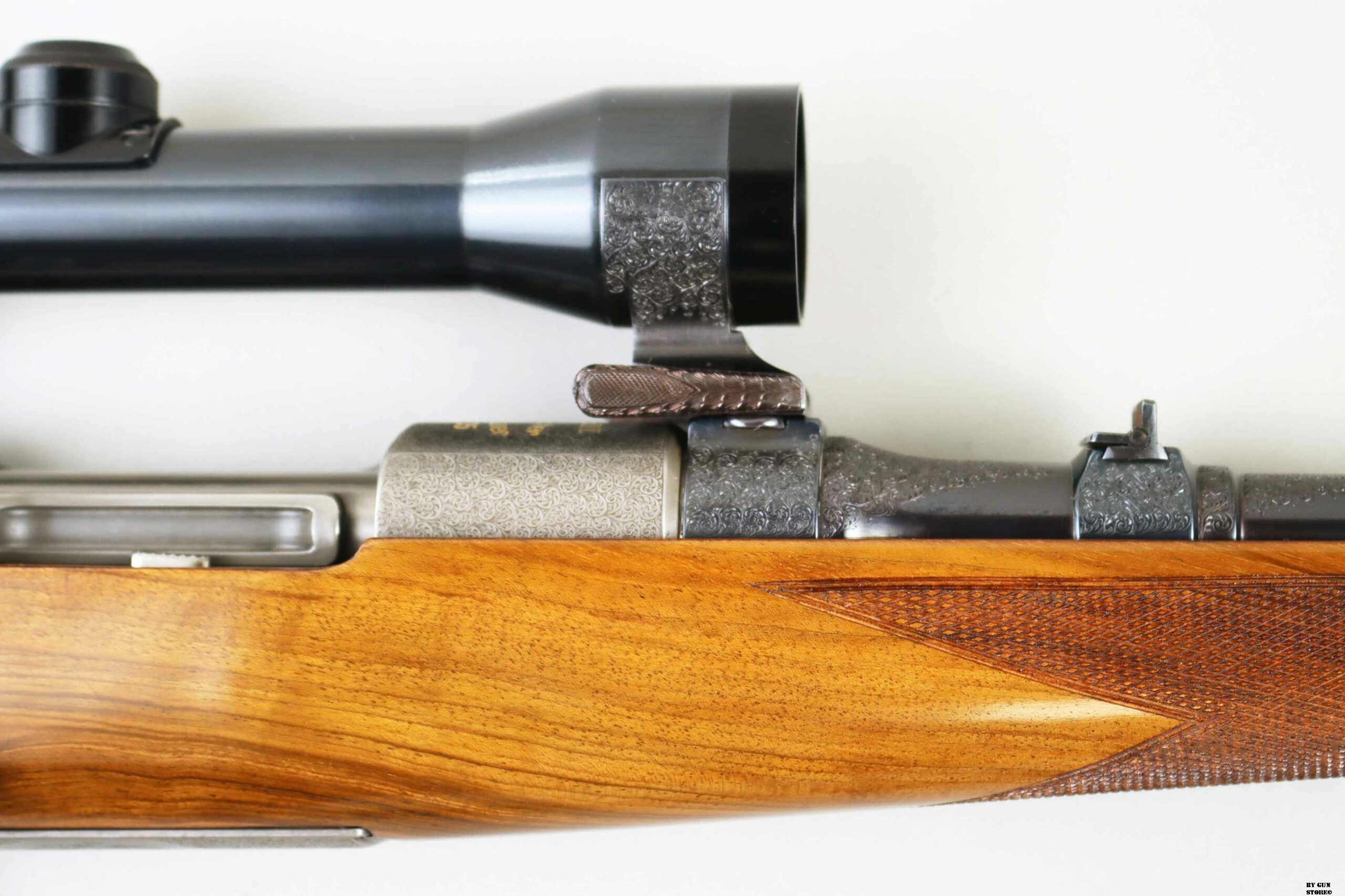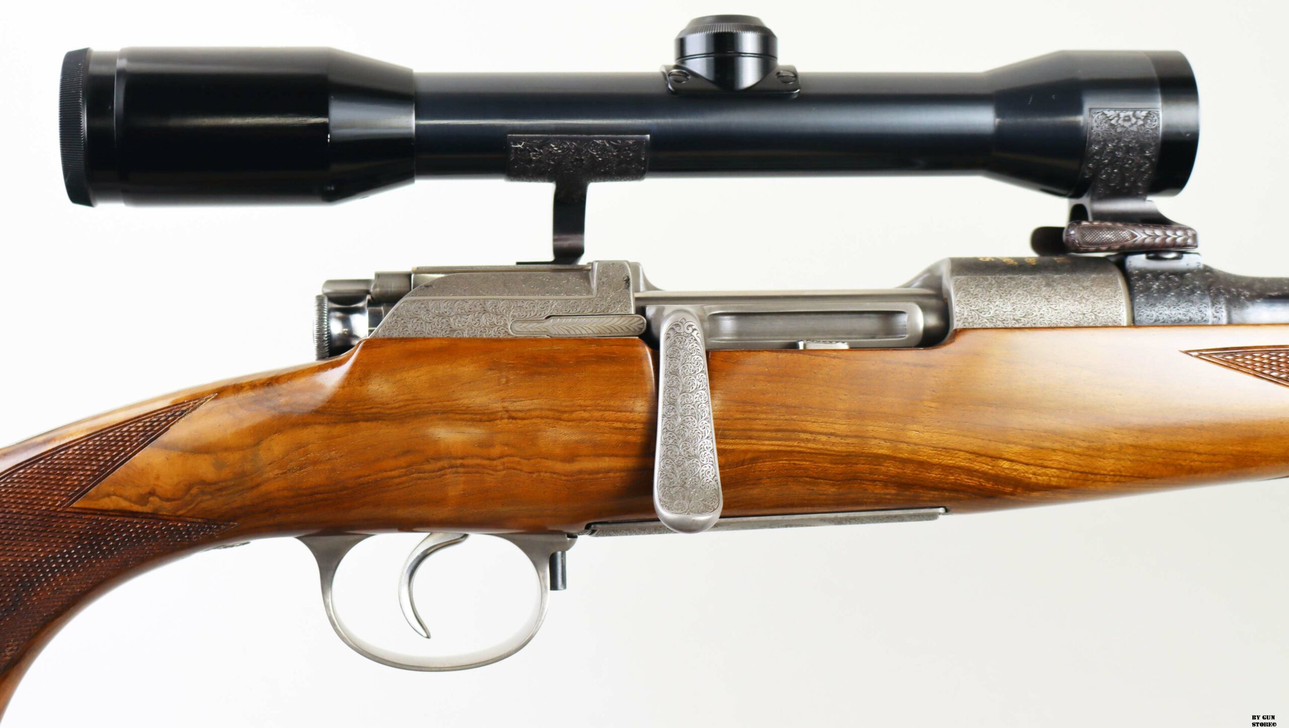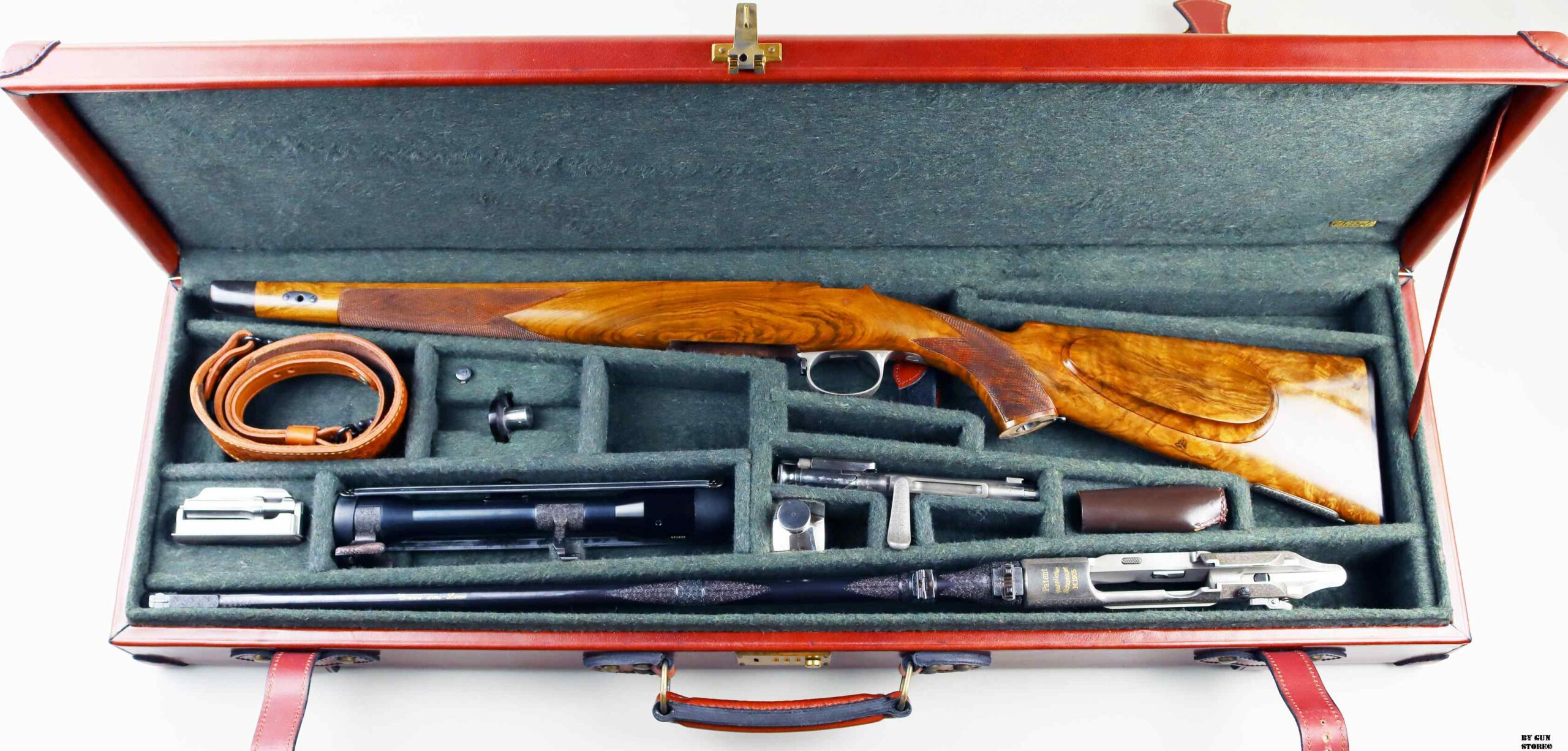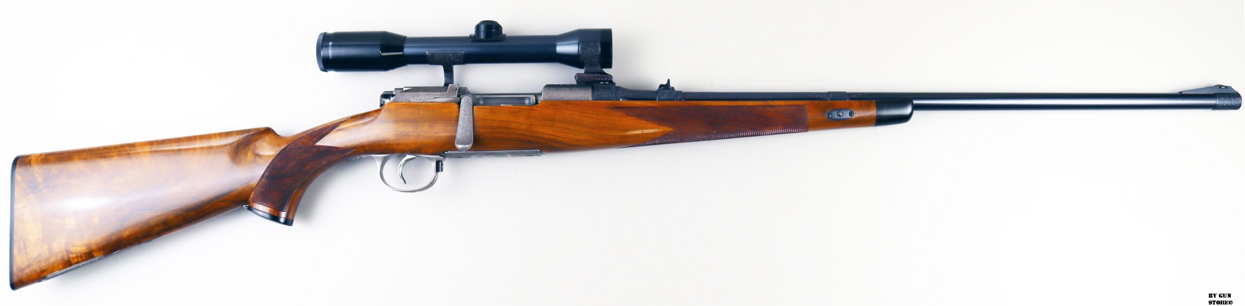 Un’opera d’arte, un fucile della Osterreich Waffenfabrick Steyr nel modello Mannlicher Schoenauer 1905, finemente elaborato dalla Concari Armi di Lecco. Arma bancata originariamente nel 1983 presso il BNP di Gardone Valtrompia (AL). Un’arma finemente incisa in una versione Luxus. Un set completo di cassetta e smontabile. Arma completa della sua ottica dedicata, anch’essa incisa, Carl Zeiss nel modello Diasta 4×32 con reticolo perfetto. Una carabina da caccia in condizioni splendide, che ha vuto un unico proprietario, con calcio in radica, impugnatura a pistola con zigrini ottimi e poggiaguancia. Completa il tutto la cassetta dedicata per il trasporto. Calibro 6,5×57.