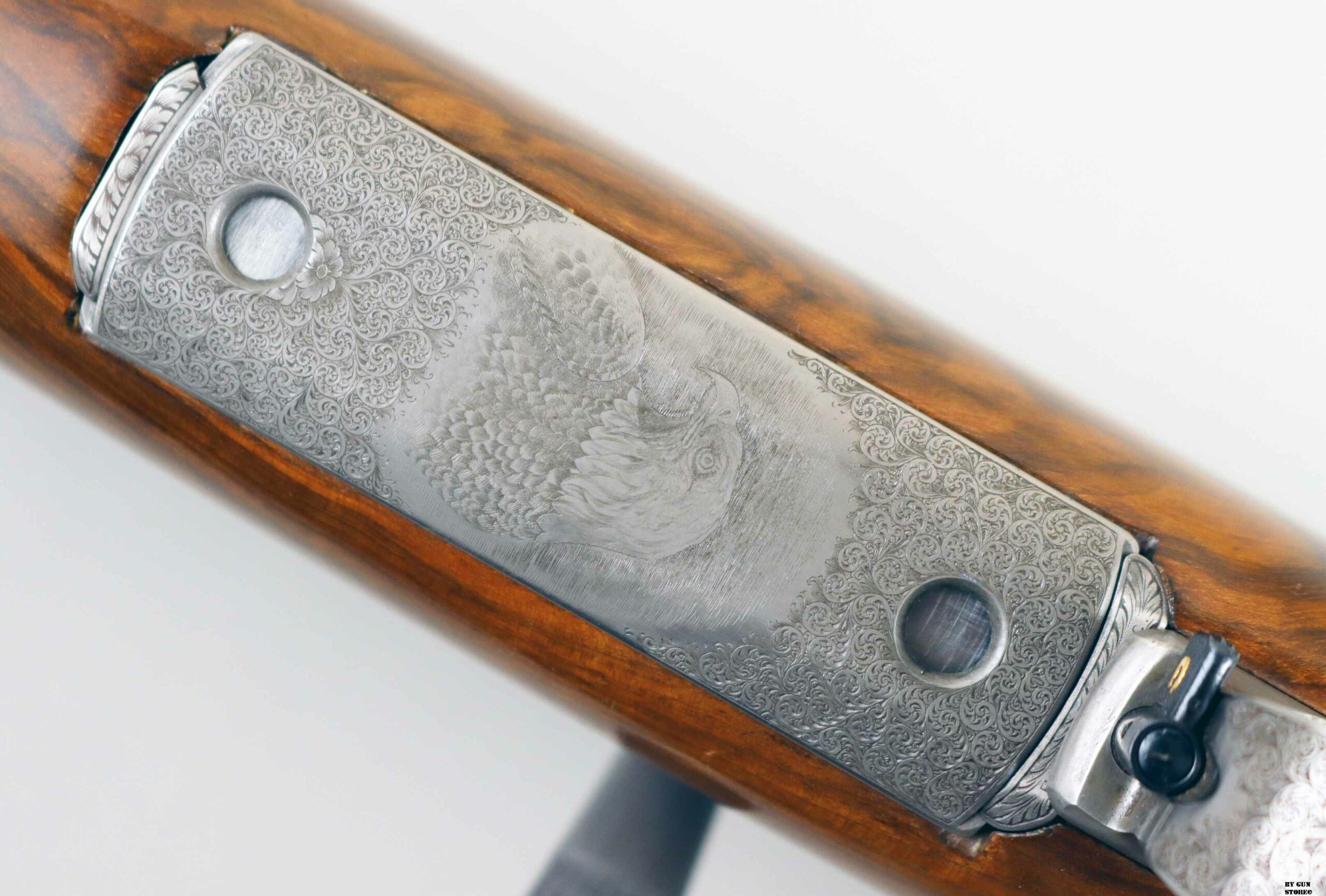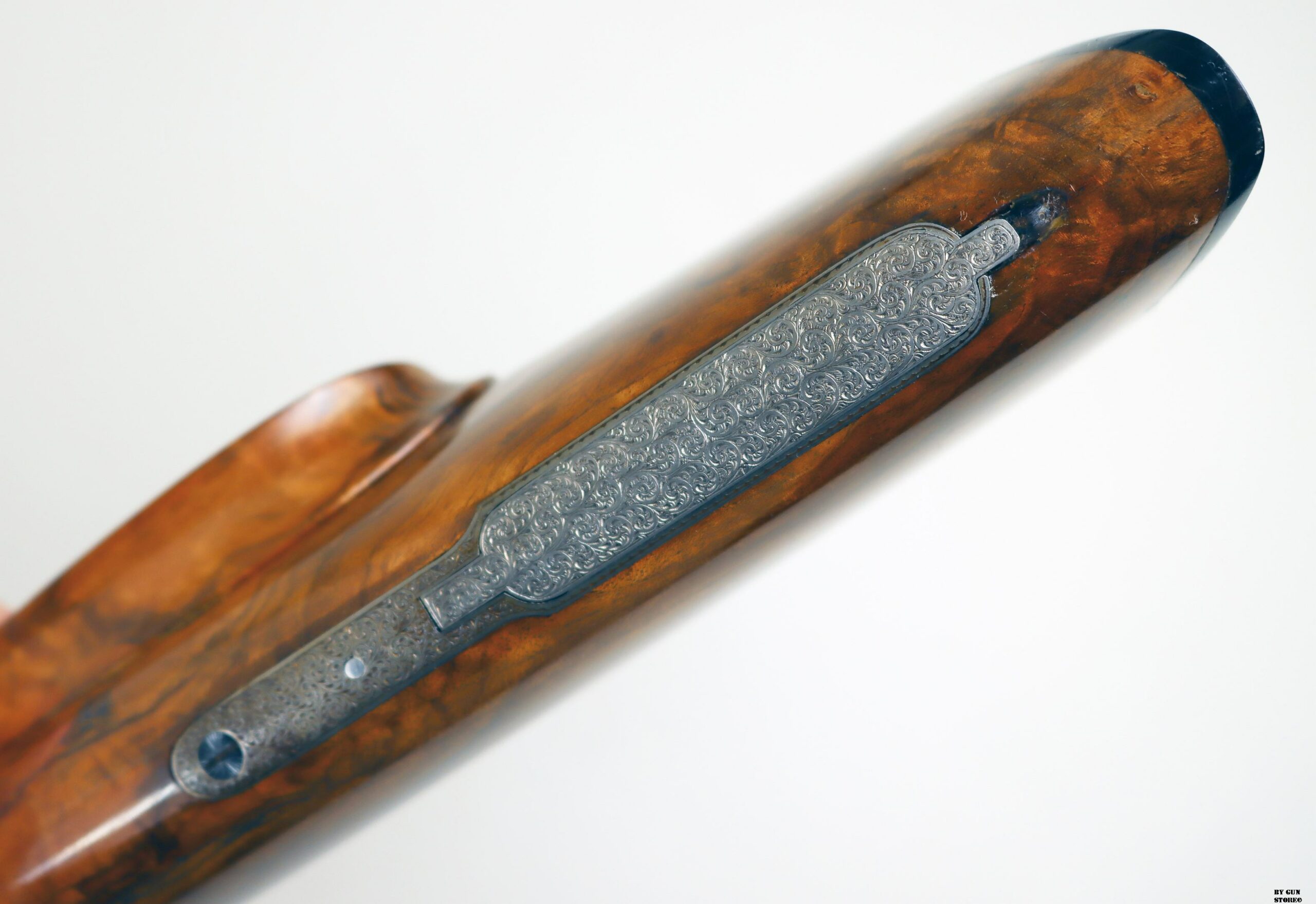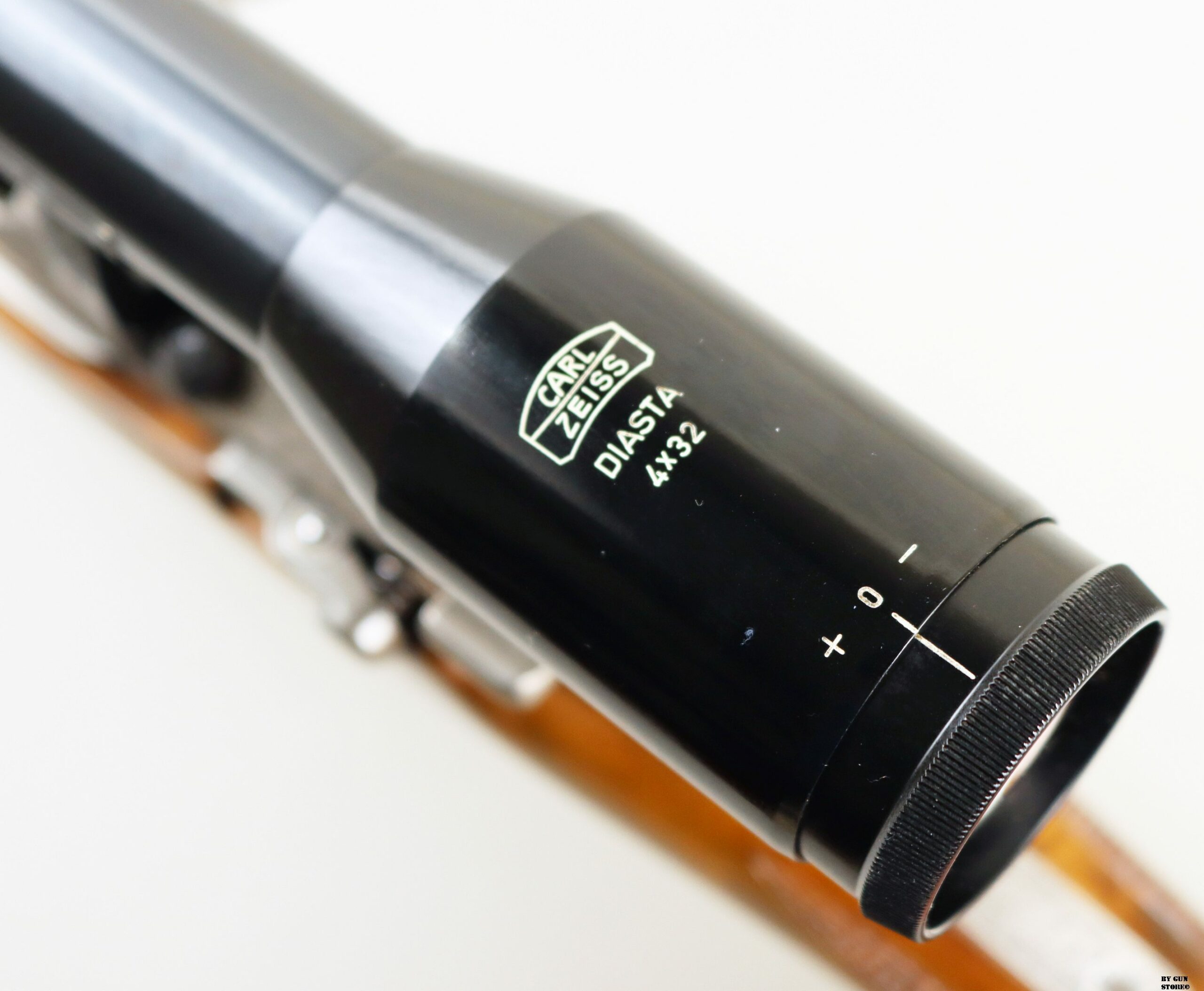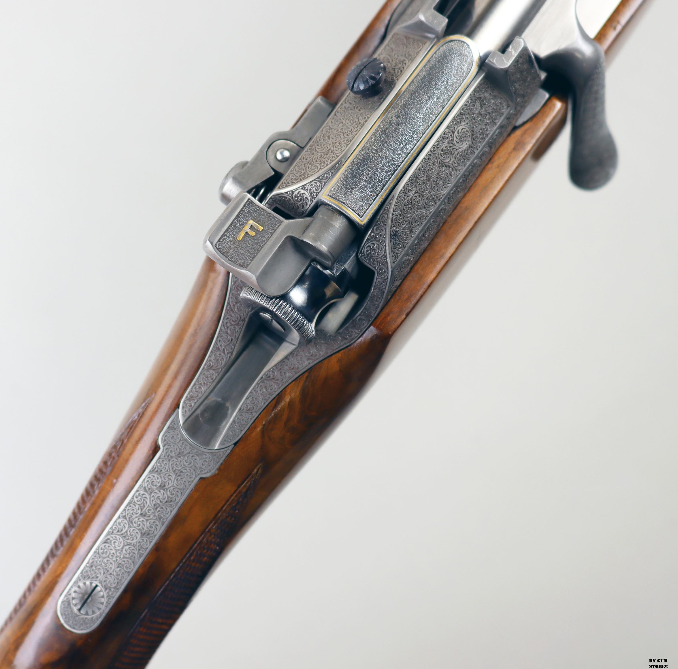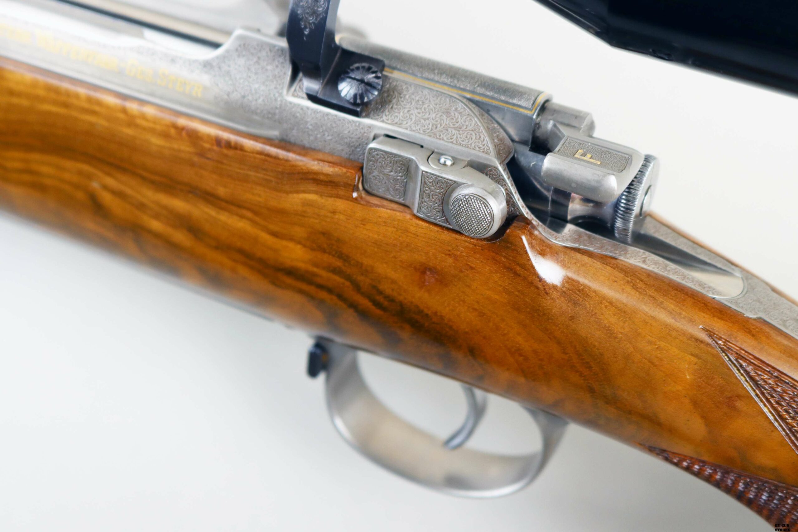 Un’opera d’arte, un fucile della Osterreich Waffenfabrick Steyr nel modello Mannlicher Schoenauer 1905, finemente elaborato dalla Concari Armi di Lecco. Arma bancata originariamente nel 1983 presso il BNP di Gardone Valtrompia (AL). Un’arma finemente incisa in una versione Luxus. Un set completo di cassetta e smontabile. Arma completa della sua ottica dedicata, anch’essa incisa, Carl Zeiss nel modello Diasta 4×32 con reticolo perfetto. Una carabina da caccia in condizioni splendide, che ha vuto un unico proprietario, con calcio in radica, impugnatura a pistola con zigrini ottimi e poggiaguancia. Completa il tutto la cassetta dedicata per il trasporto. Calibro 6,5×57.