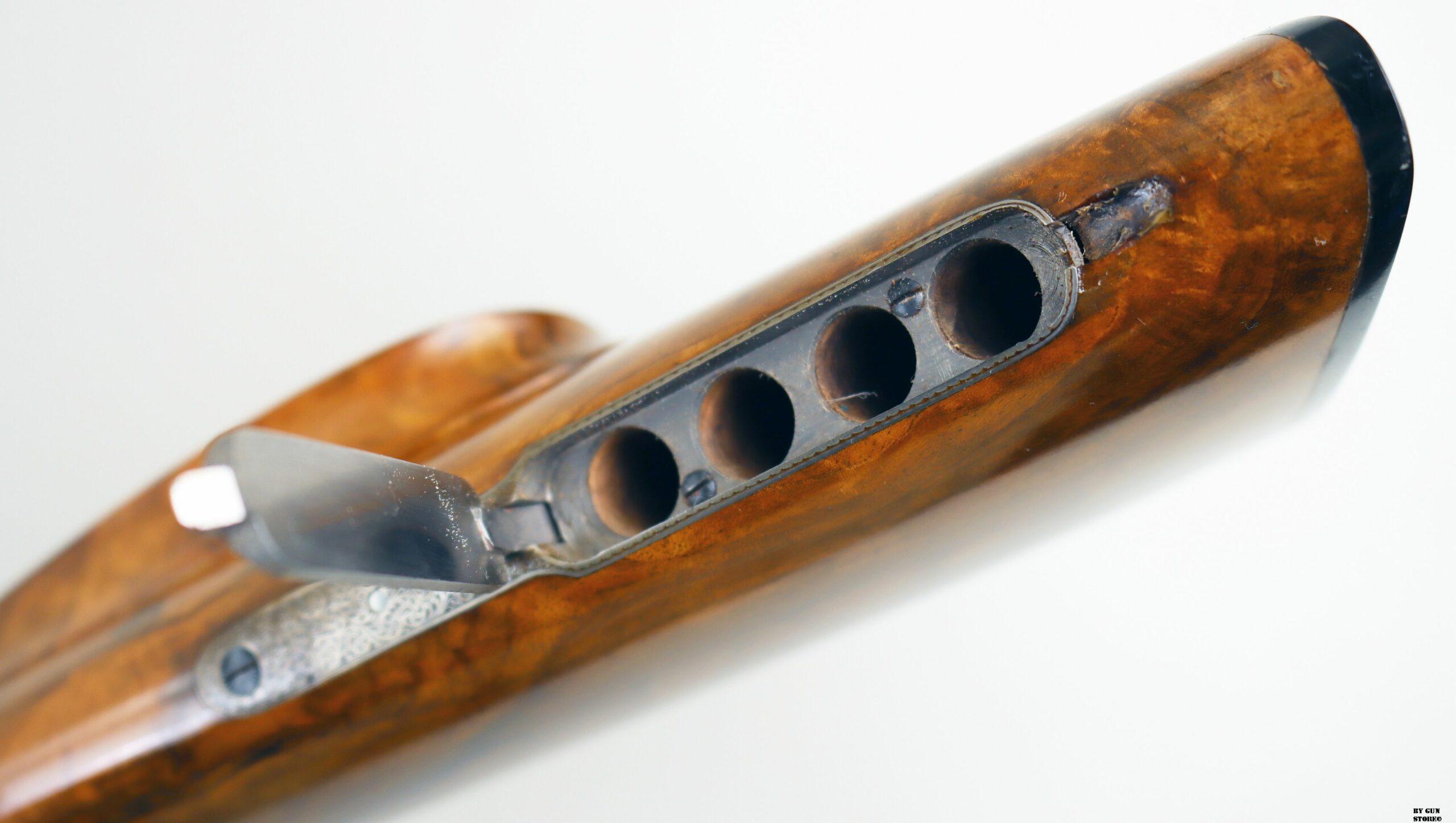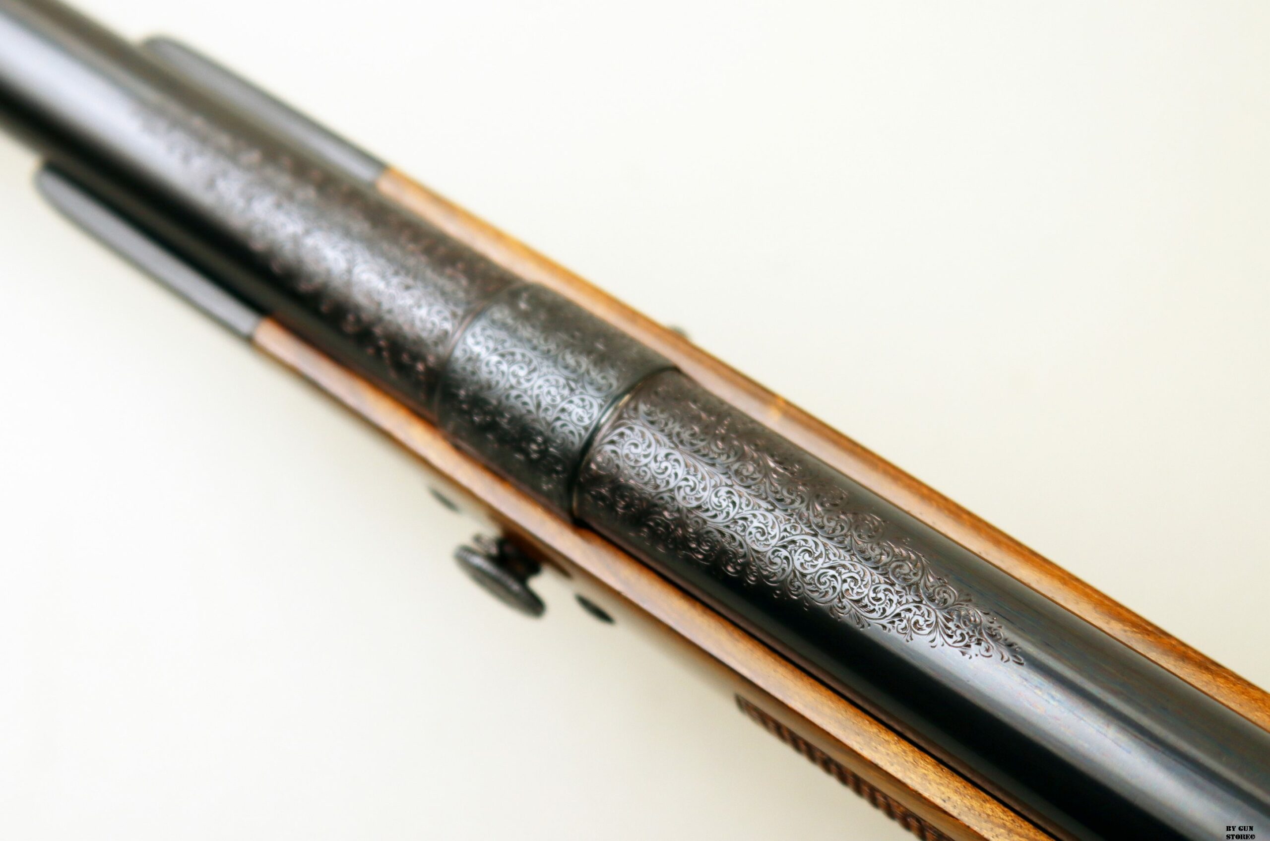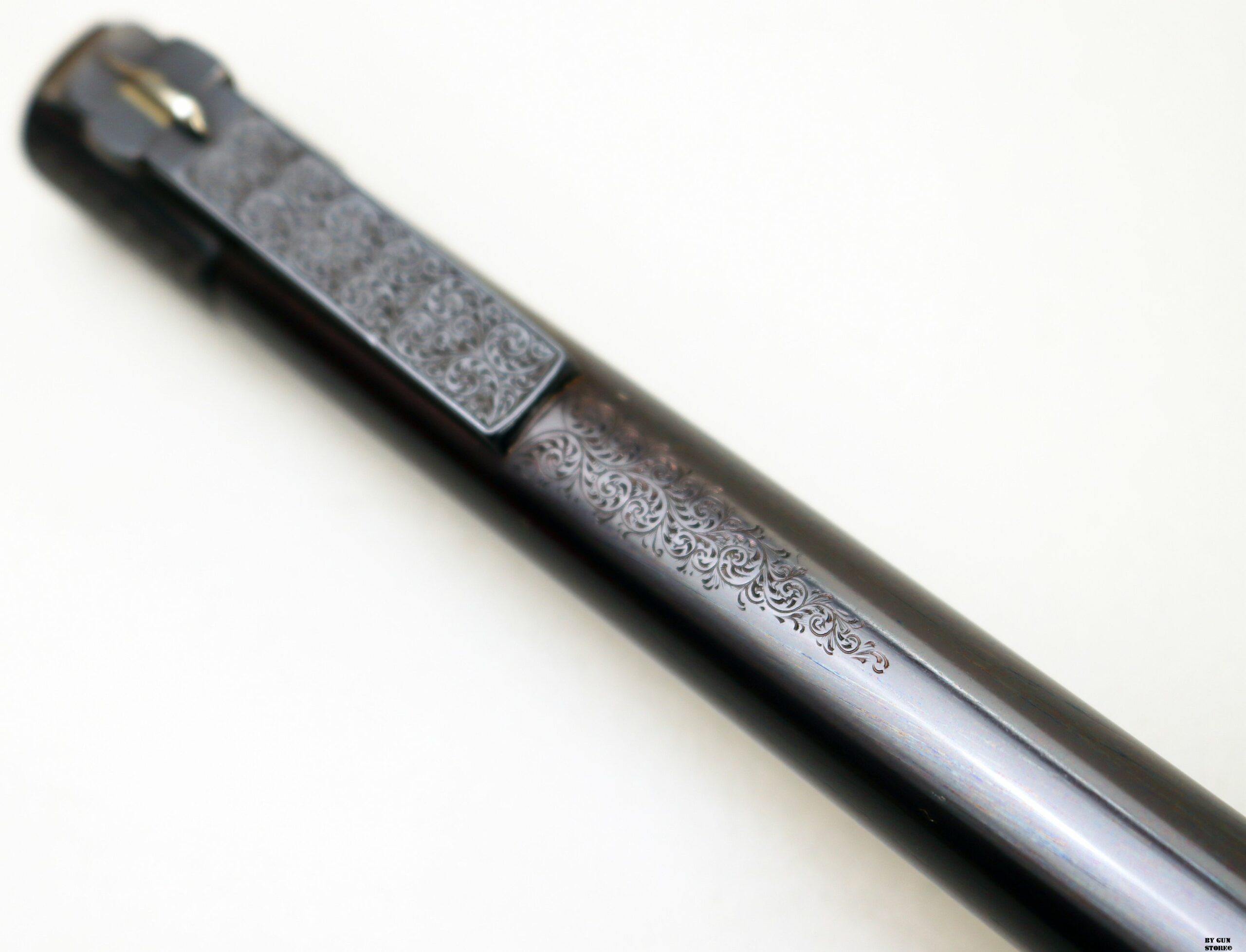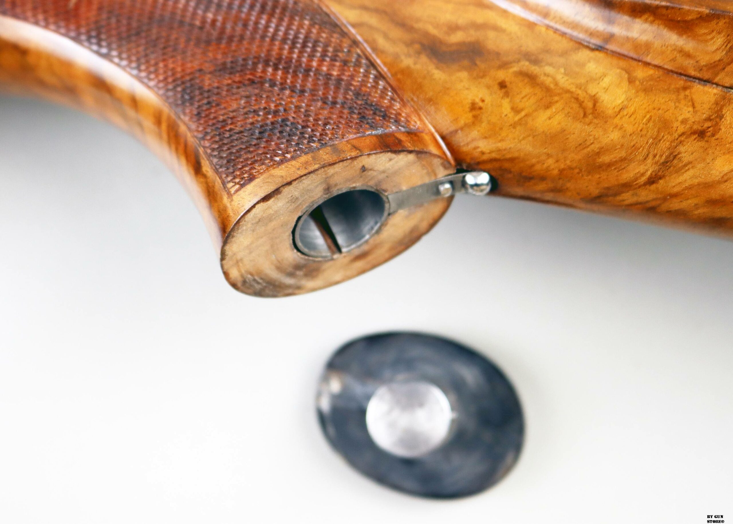 Un’opera d’arte, un fucile della Osterreich Waffenfabrick Steyr nel modello Mannlicher Schoenauer 1905, finemente elaborato dalla Concari Armi di Lecco. Arma bancata originariamente nel 1983 presso il BNP di Gardone Valtrompia (AL). Un’arma finemente incisa in una versione Luxus. Un set completo di cassetta e smontabile. Arma completa della sua ottica dedicata, anch’essa incisa, Carl Zeiss nel modello Diasta 4×32 con reticolo perfetto. Una carabina da caccia in condizioni splendide, che ha vuto un unico proprietario, con calcio in radica, impugnatura a pistola con zigrini ottimi e poggiaguancia. Completa il tutto la cassetta dedicata per il trasporto. Calibro 6,5×57.