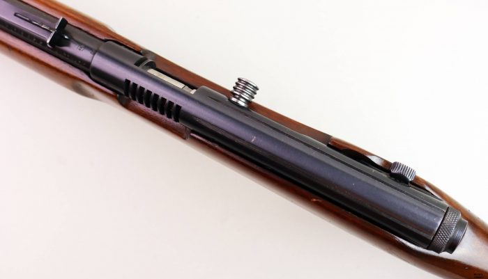 Anno 1955 per questa carabina semiautomatica Savage modello 60 Deluxe. Possibilità di camerare il calibro 22 long o short. Brunitura di ottima qualità con canna, meccanica e azione ottime. Ottimo oggetto da collezione o da divertimento.