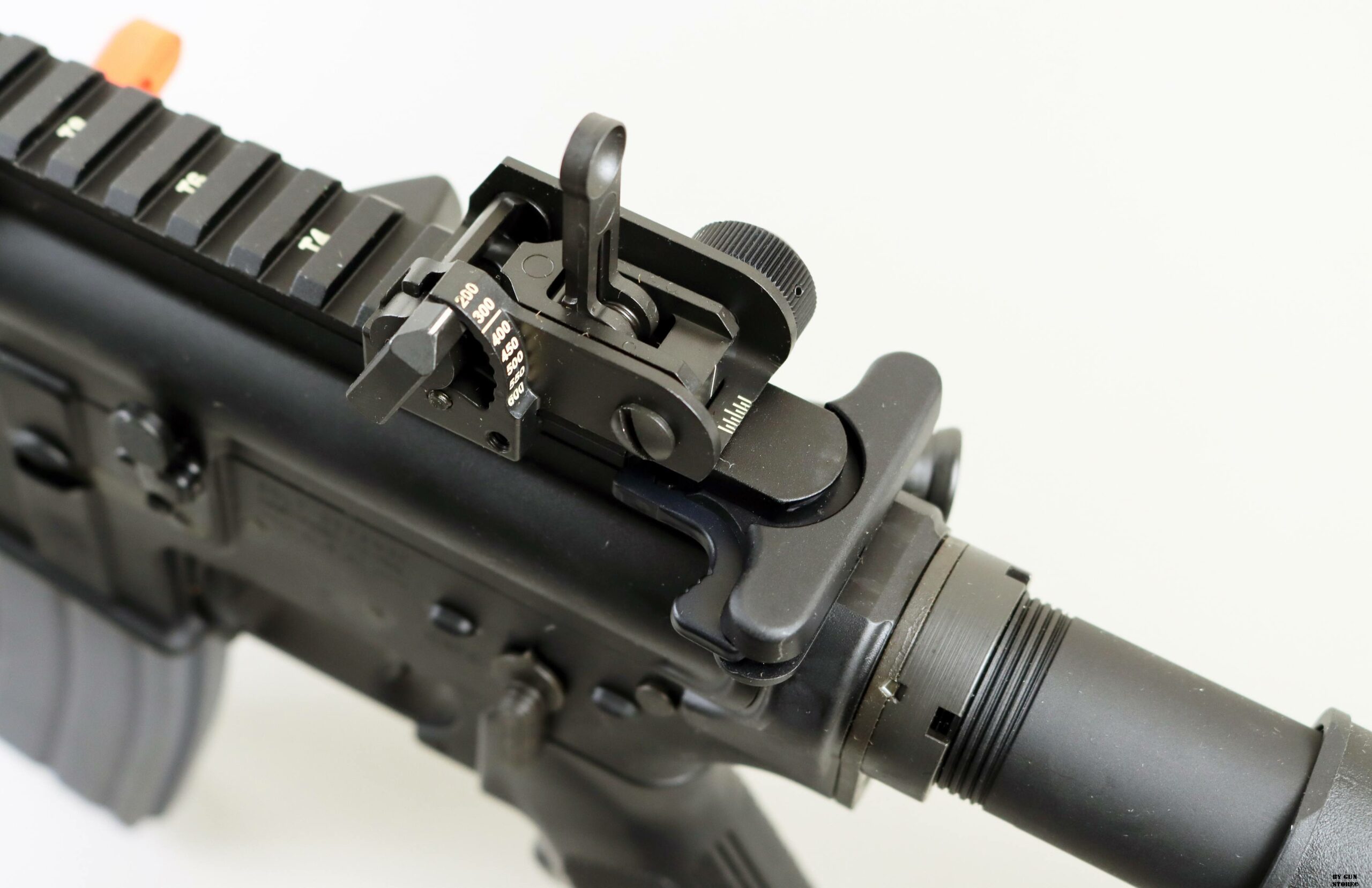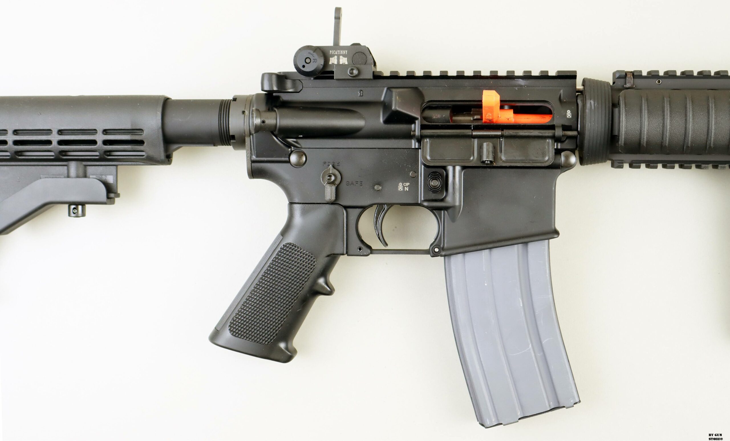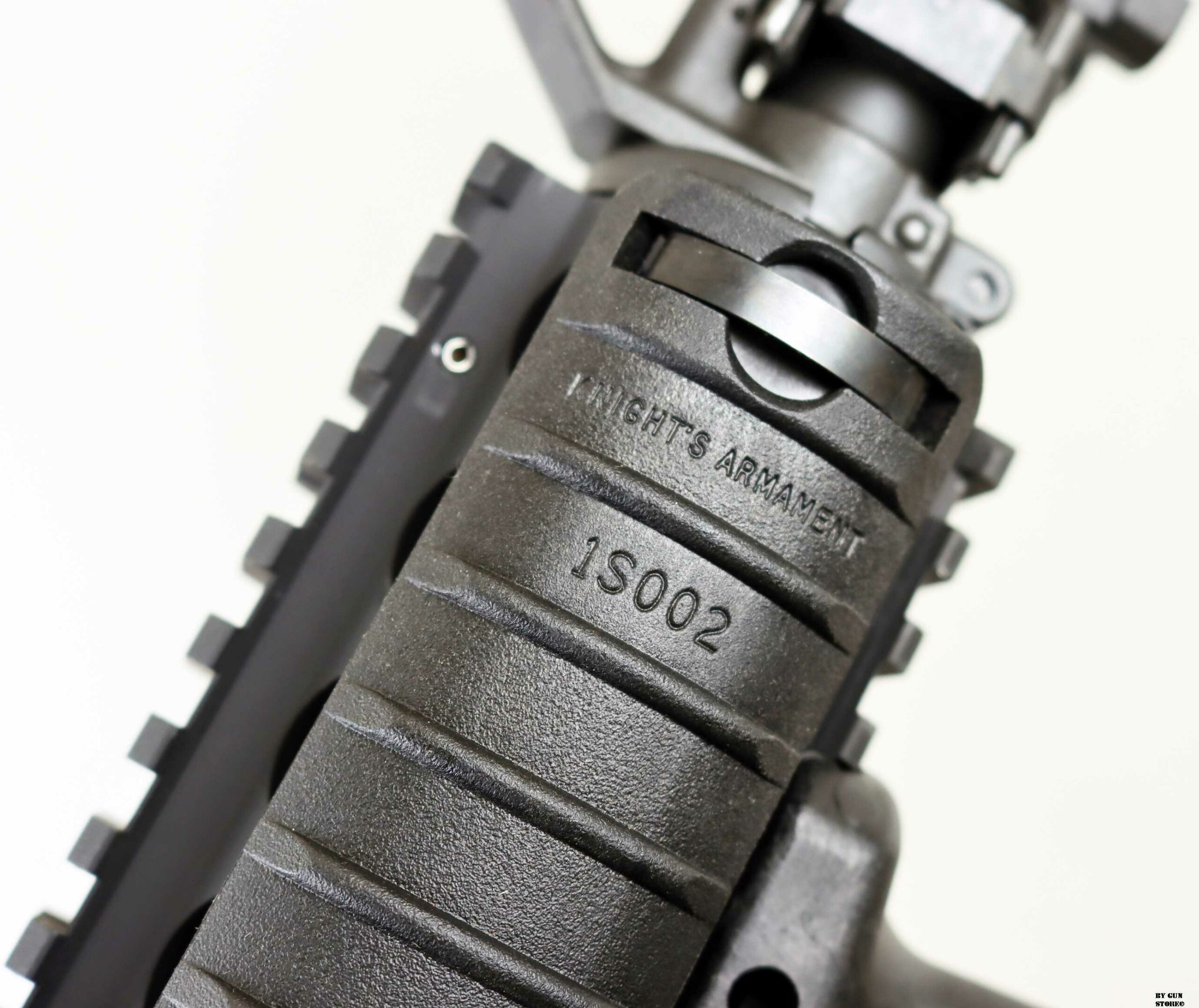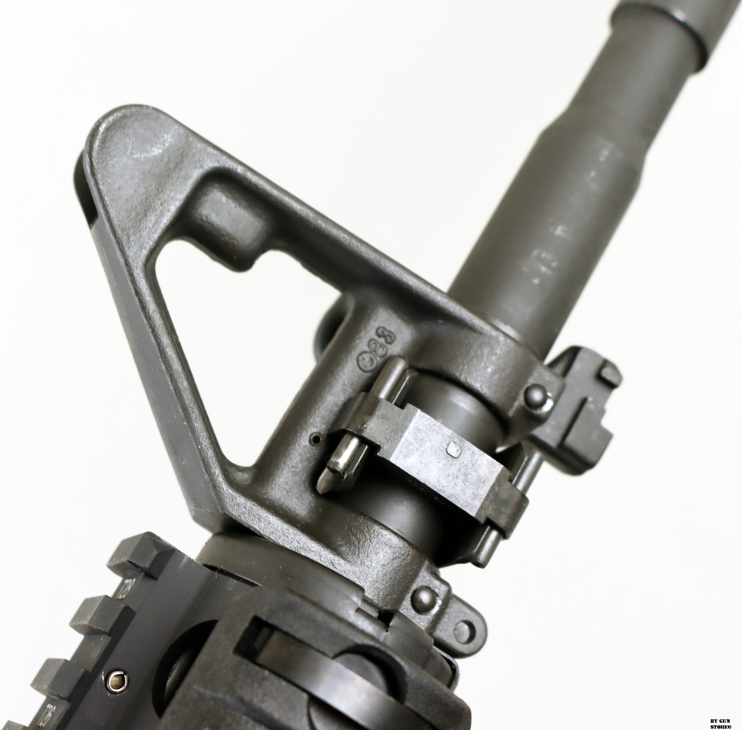 Il Colt carbine in configurazione M4A1 SOCOM. Il low receiver presenta, oltre il noto cavallino rampante, la rullatura PROPERTY OF THE US GOVT, M4A1 CARBINE e CAL. 5,56 MM. La canna è una vera canna pesante SOCOM 14.5. Include l’attacco della cinghia laterale sul blocco del gas e il selettore della sicura ambidestro. Rail e vertical grip della Knight’s Armament e mira Picatinny. ALL PROUDLY MADE IN THE USA. Classificazione Sportiva 12_02252s3c