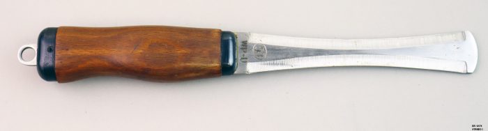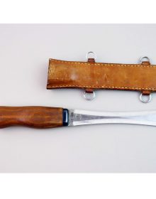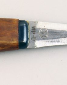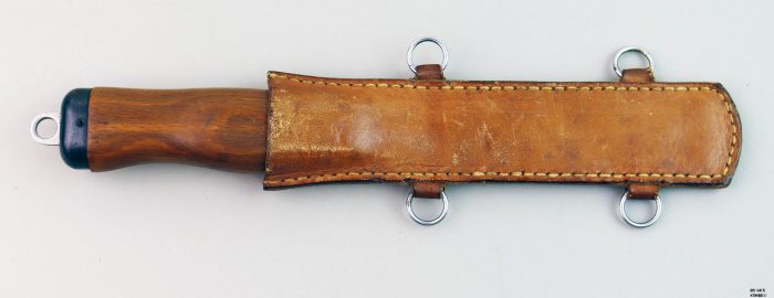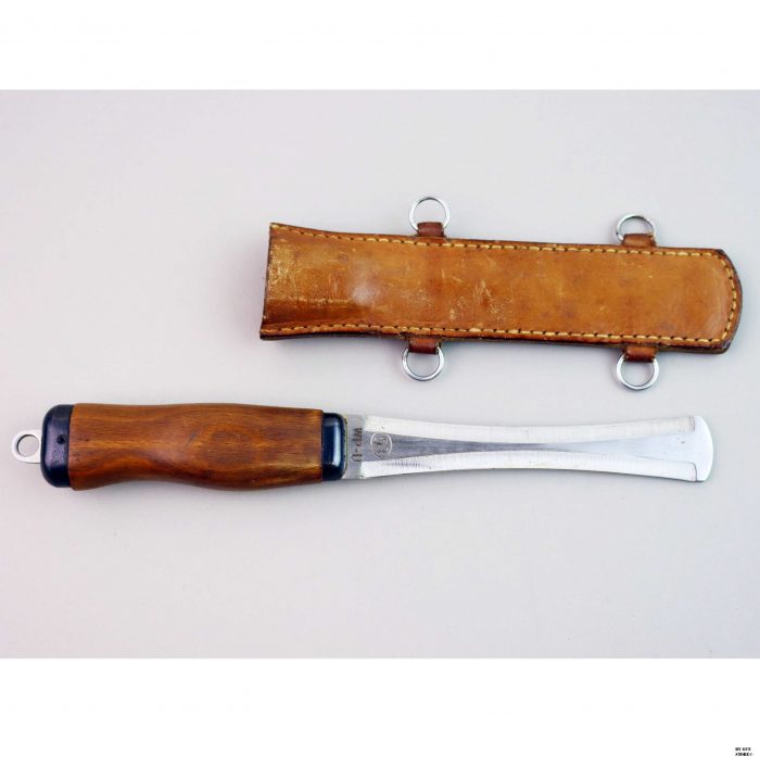 Raro coltello Nóż spadocronowy wz. 1965 che tradotto letteralmente è “modello di coltello da paracadute 1965” in uso ai paracadutisti dell’esercito polacco. Versione per tagliare le funicelle del paracadute. Il 53 nell’ovale sta per il produttore Zaklady Metalowe Wifama di Lódz mentre WP-D sta per W ojska P owietrzno D esantowe (truppe aviotrasportate). Attrezzo veramente di non facile reperibilità e ottimo per una collezione a tema.
