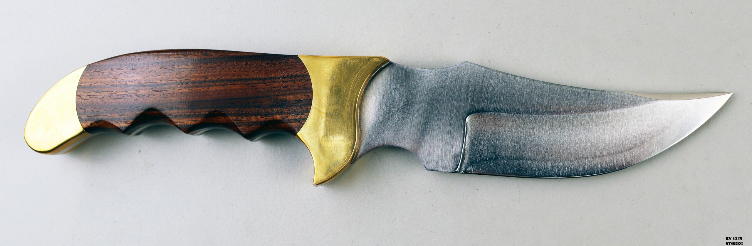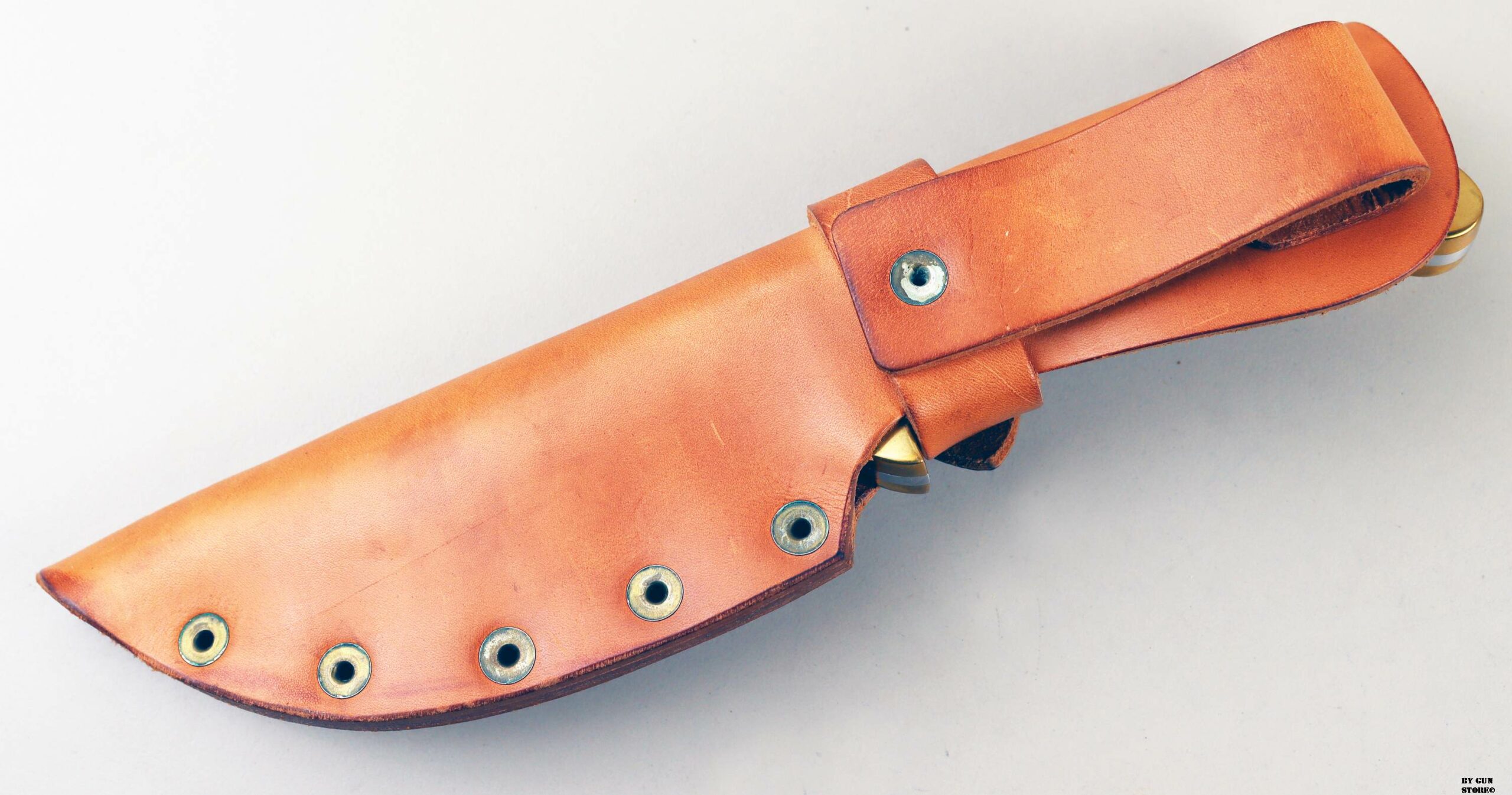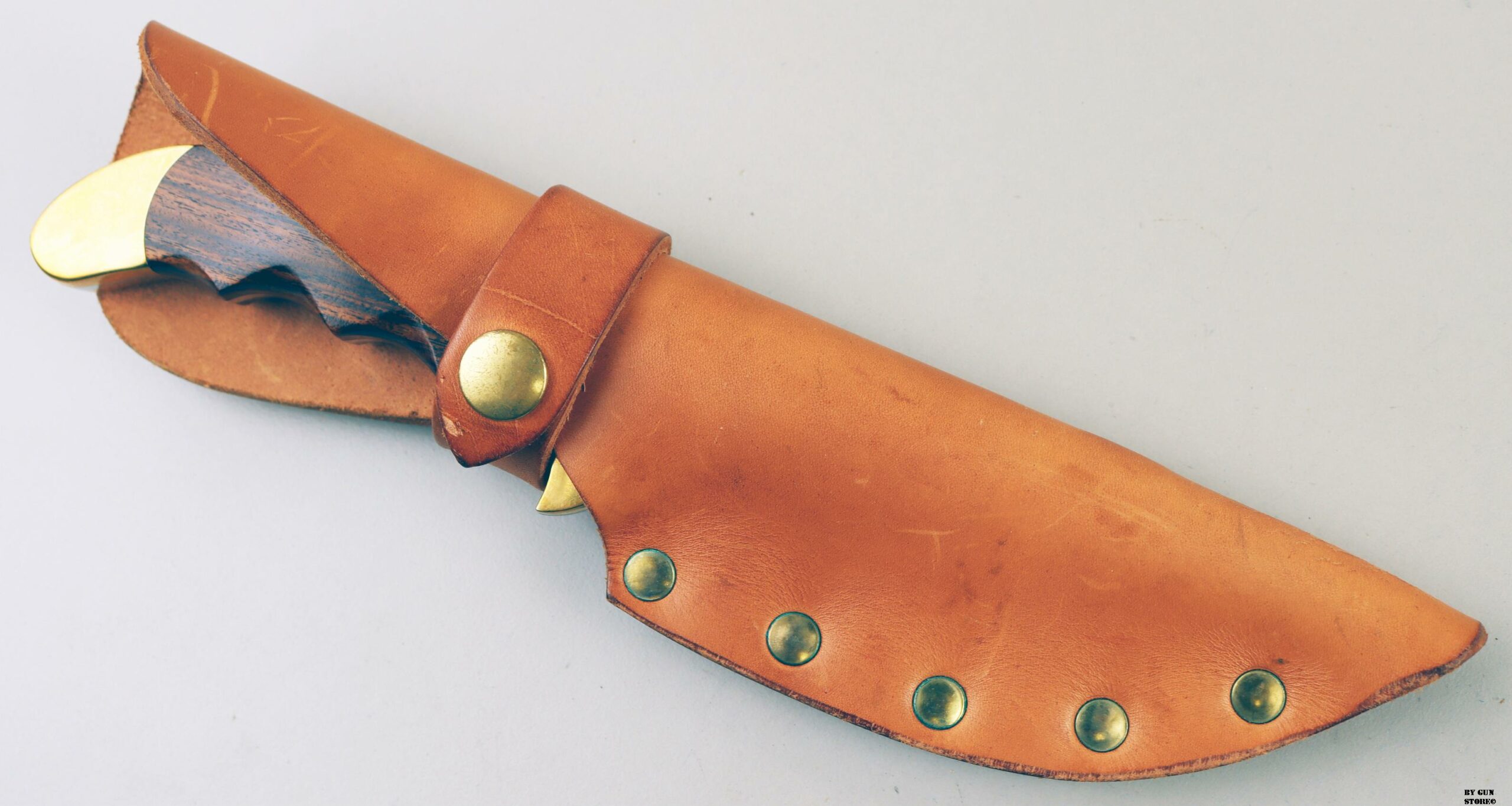 Coltello Rigid orginale Made in USA modello Caibou Hunter. I coltelli Rigid sono stati prodotti all’inizio degli anni ’70 dagli ex dipendenti Buck, Bill Duff, Dean Parks e Don Collum a Santee, in California, prima di trasferirsi a Lake Hamilton, in Arizona. Hanno fatto la loro linea di coltelli prodotti a mano ma hanno cessato l’attività alla fine degli anni ’80 e la United Cutlery ha acquistato il nome Rigid spostando la produzione da Tak Fukuta a Gifu, in Giappone. Questo è il modello R-8 Caribou, 9 7/8” di lunghezza con lama da 5” semi cava rettificata in acciaio ad alto tenore di carbonio antimacchia. Realizzato con codolo pieno, manici in palissandro con rientranze a dita intere, rinforzi e perni in ottone. Il fodero in vera pelle nera è realizzata in modo robusto con rivetti in ottone.
