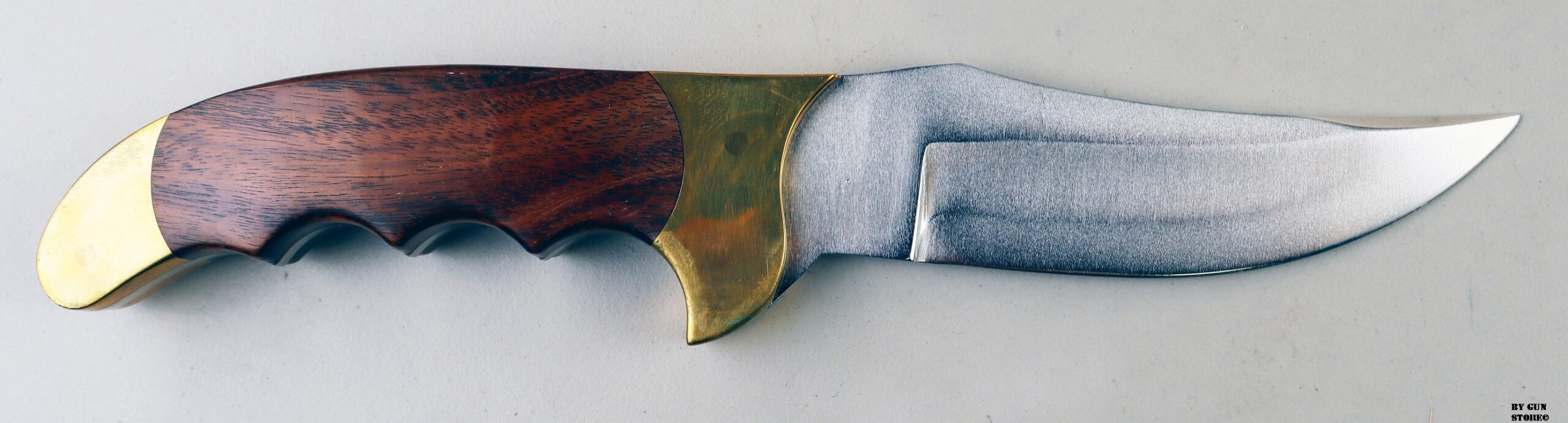 Coltello Rigid originale Made in USA modello Ripper. I coltelli Rigid sono stati prodotti all’inizio degli anni ’70 dagli ex dipendenti Buck, Bill Duff, Dean Parks e Don Collum a Santee, in California, prima di trasferirsi a Lake Hamilton, in Arizona. Hanno fatto la loro linea di coltelli prodotti a mano ma hanno cessato l’attività alla fine degli anni ’80 e la United Cutlery ha acquistato il nome Rigid spostando la produzione da Tak Fukuta a Gifu, in Giappone. Questo è il modello Ripper con lama semi cava rettificata in acciaio ad alto tenore di carbonio antimacchia. Realizzato con codolo pieno, manici in palissandro con rientranze a dita intere, rinforzi e perni in ottone. Il fodero in vera pelle è realizzato in modo robusto con rivetti in ottone.