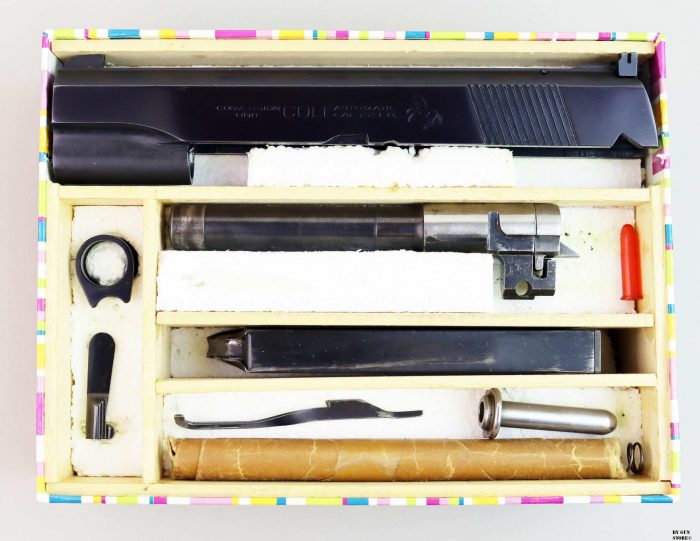 Ottimo set “Conversion Unit” per pistola Colt 1911. Originale dell’epoca è completo di gli accessori. Ideale per collezione o da utilizzare per allenamento sulla propria Government Model. Calibro .22 l.r. non fa cumulo in denuncia.