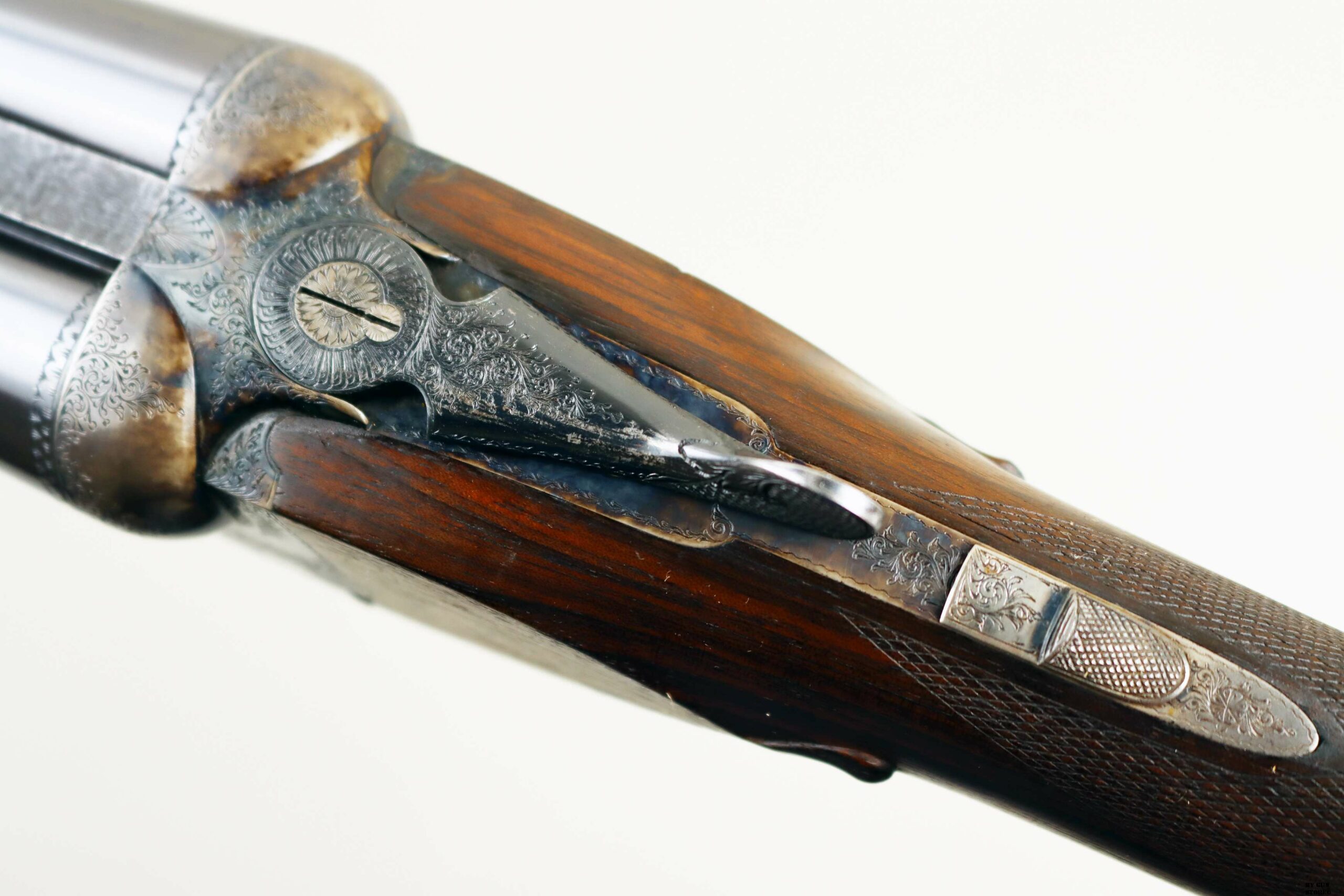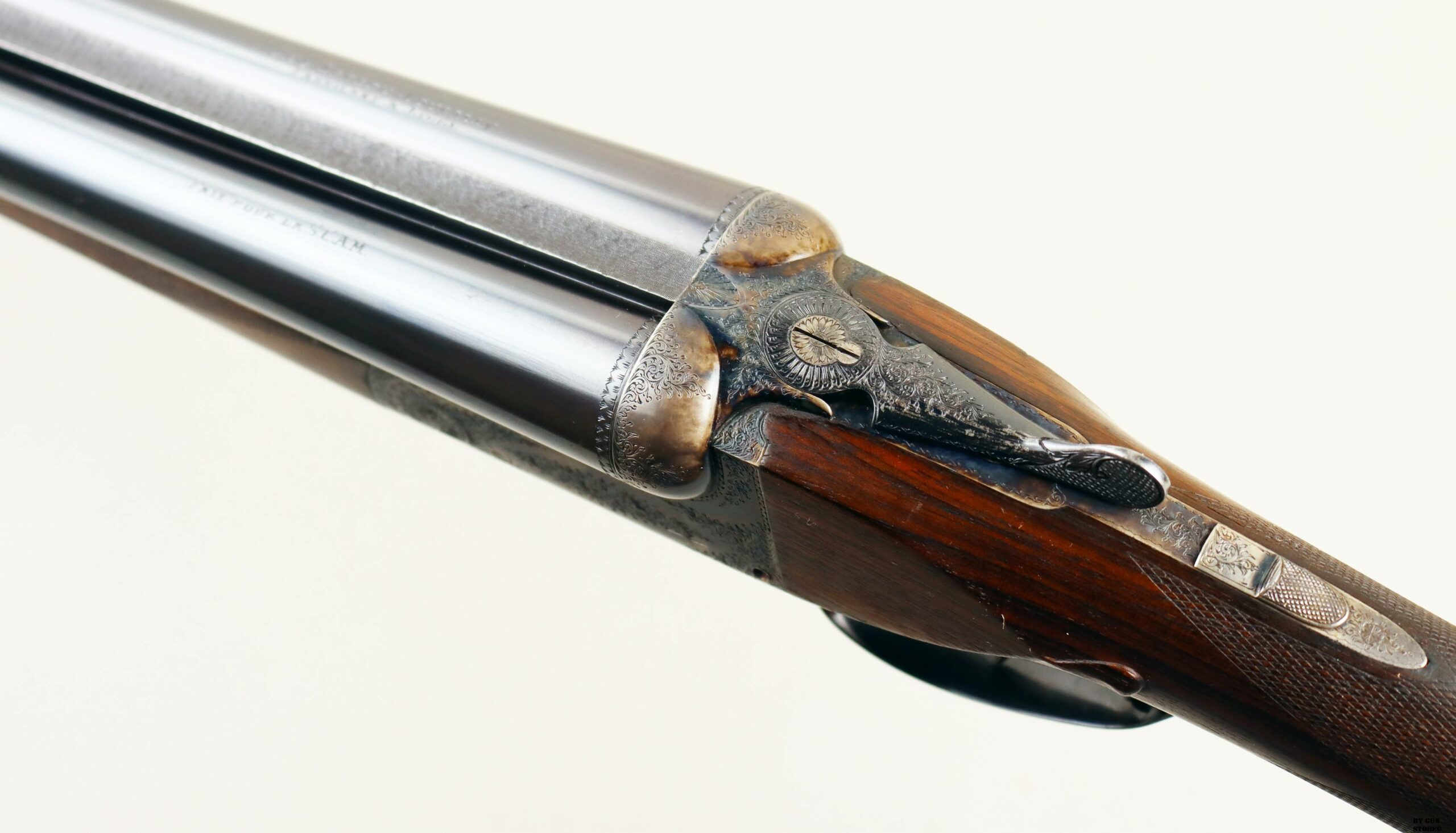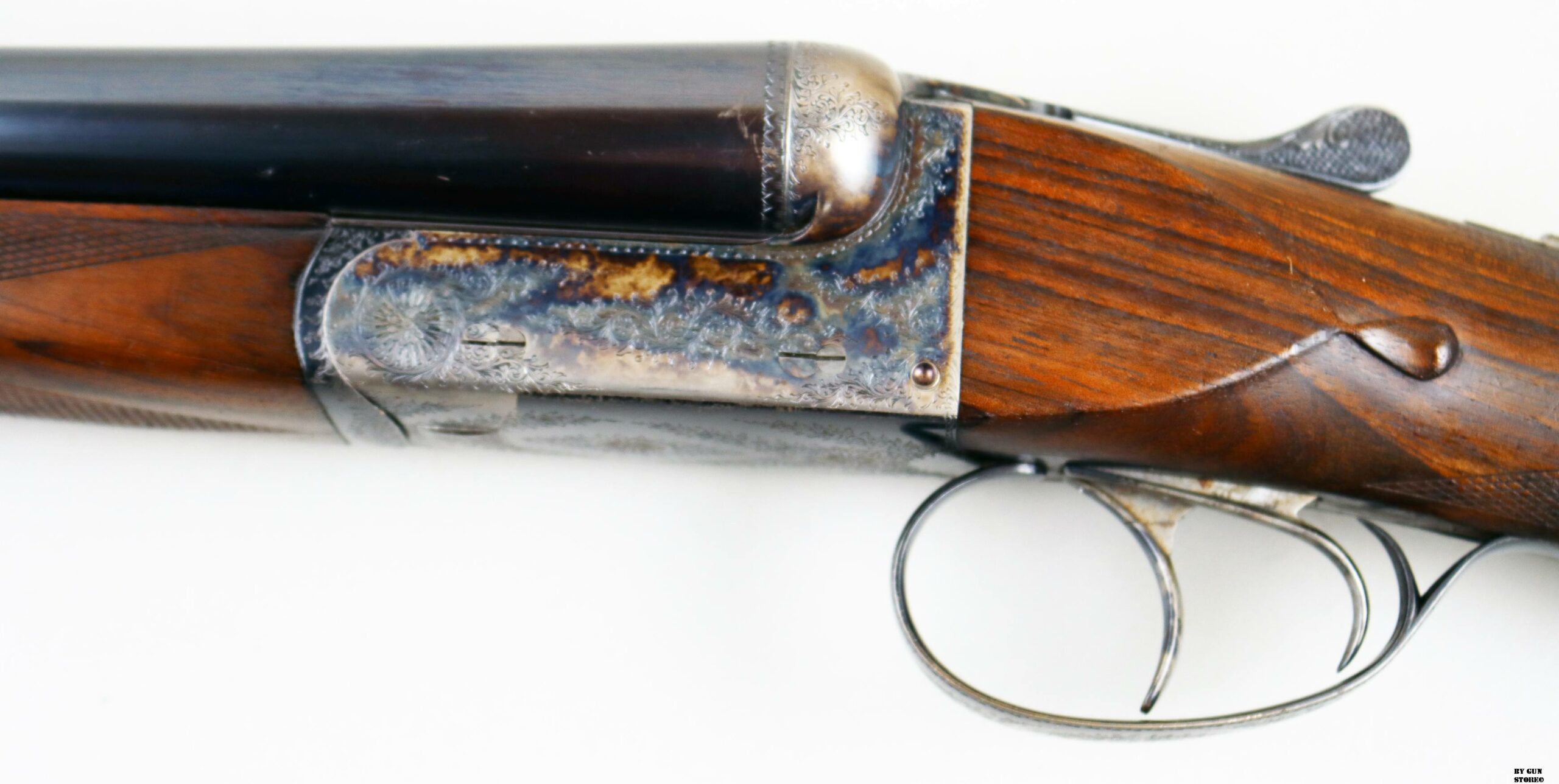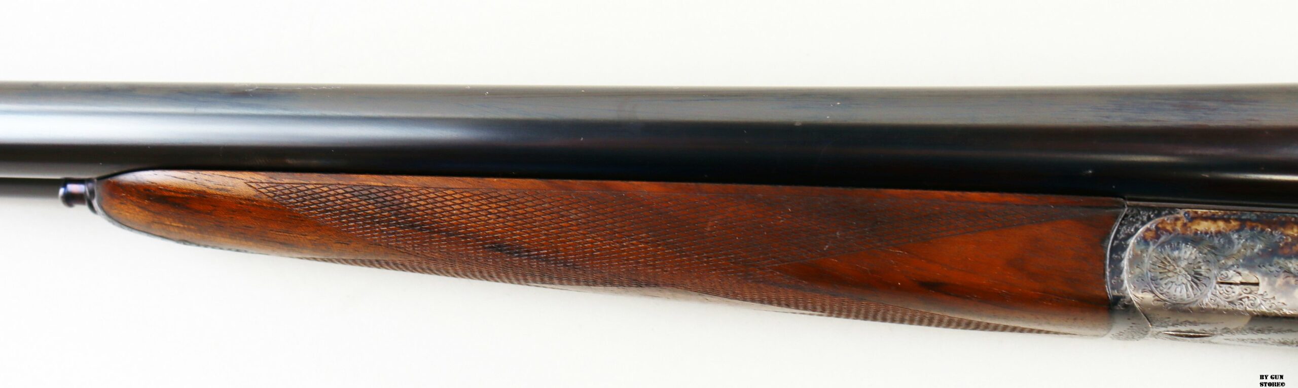 Prodotta per la nota armeria SCAM di Milano, proviene da famiglia e unico proprietario. Canne ottime, meccanica perfetta. Brunitura originale e cassa con fini incisioni tartarugate.