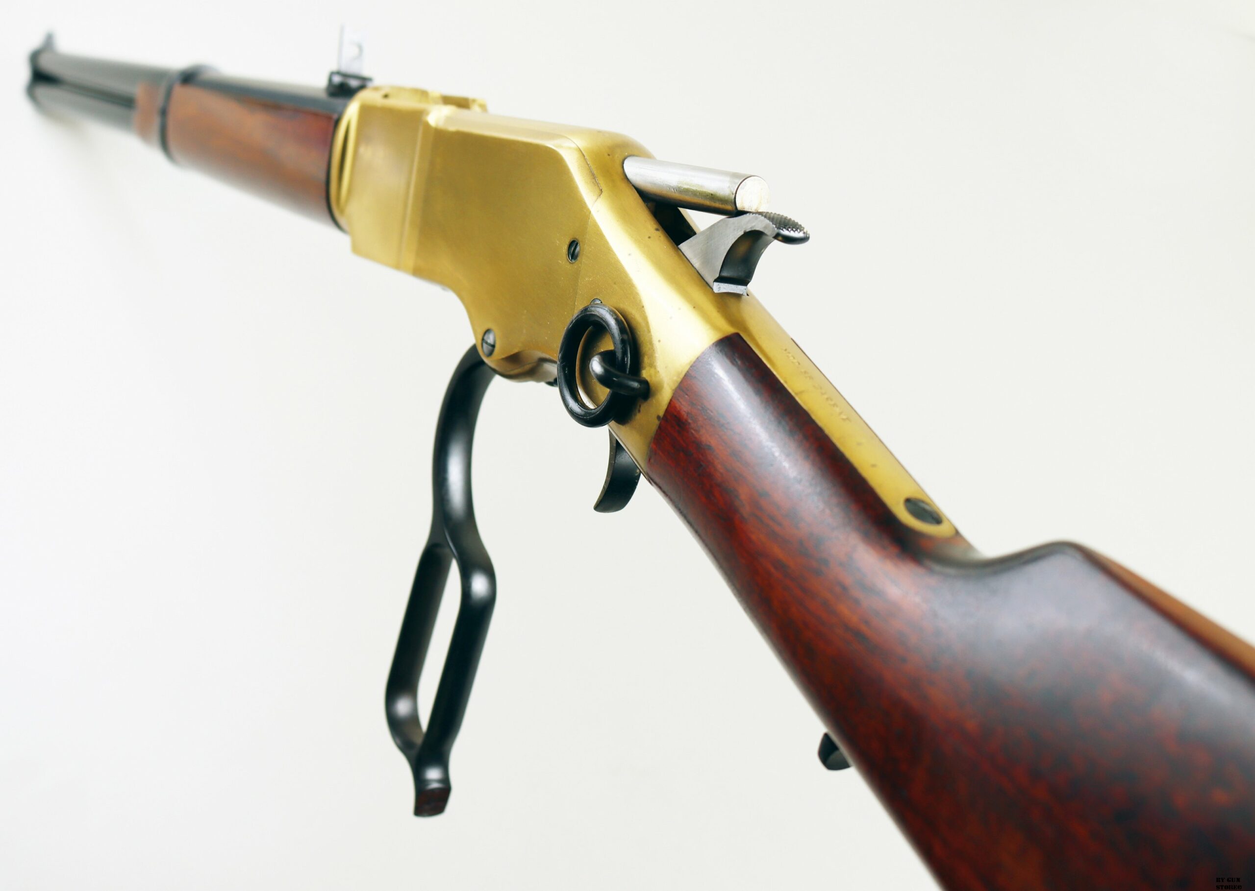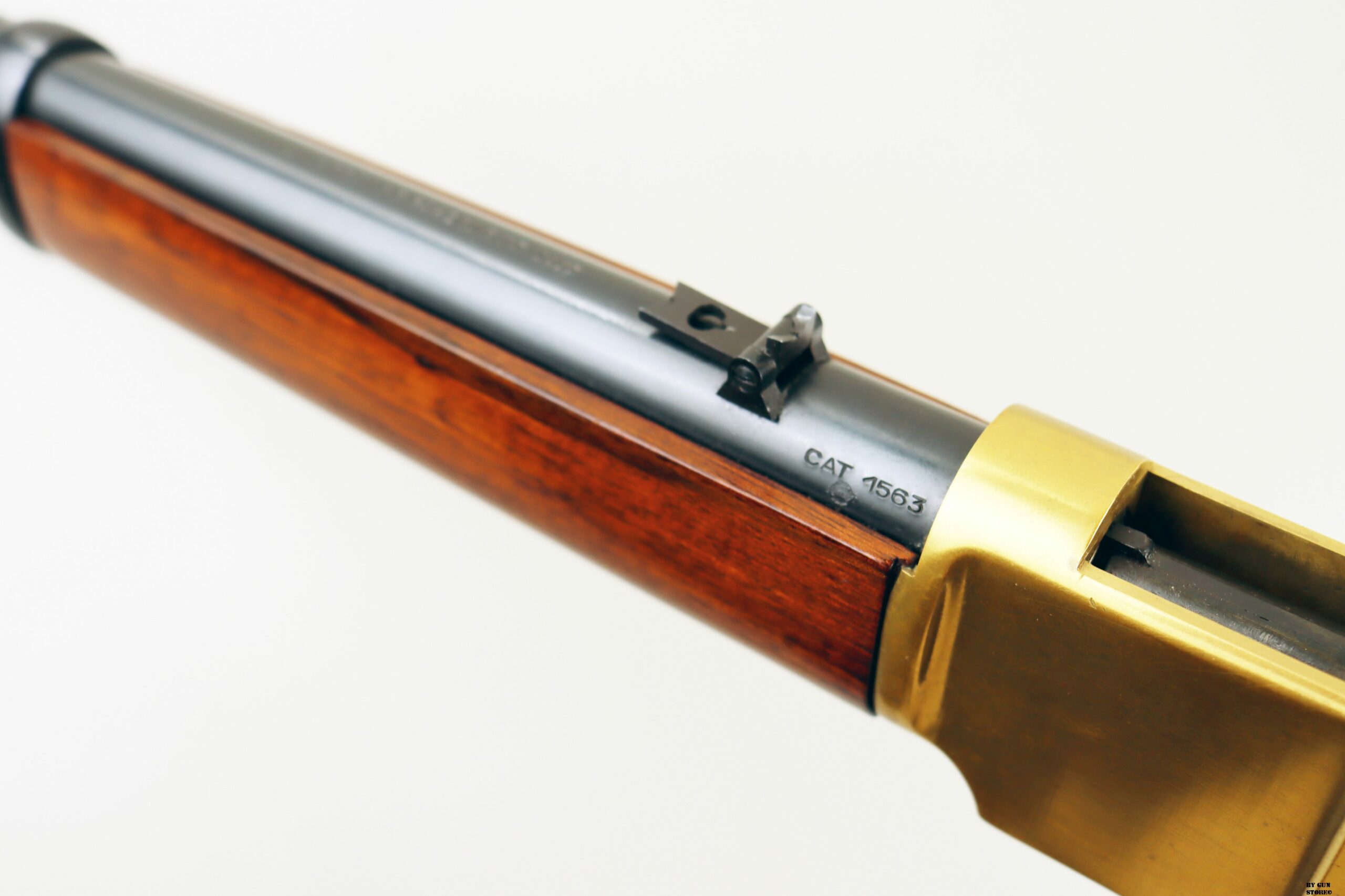 Splendido fucile a leva prodotto dalla Uberti SPA nel modello 1866 Carbine. Versione con carcassa in ottone, presenta una brunitura perfetta. Legni ottimi e canna, meccanica e azione sono perfette. Arma iconica di pregiata fattura è in calibro classico 44/40. Ottimo pezzo per utilizzo al poligono o per una collezione a tema stile Western.
