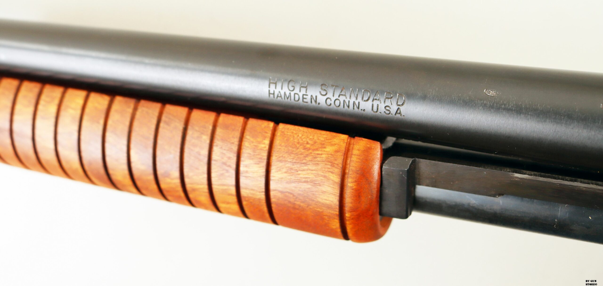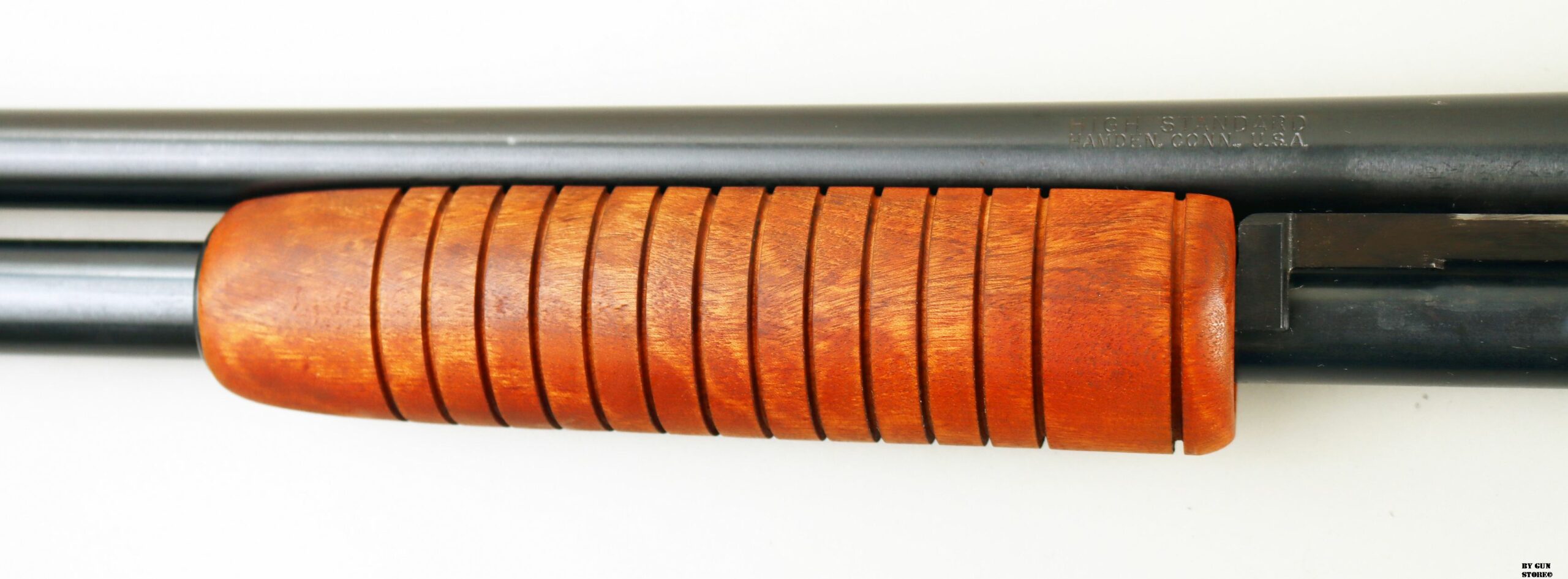 Condizioni pari al nuovo per questo splendido e, ormai, non comune fucile a pompa prodotto dalla High Standard di Hamnden in Connecticut nel modello K120 Riot. Canna, meccanica e azione sono perfette. Brunitura originale e pala del clacio e astina perfette e a cosiddetto poro aperto. Proveniente da collezione è classificato caccia. Calibro 12.