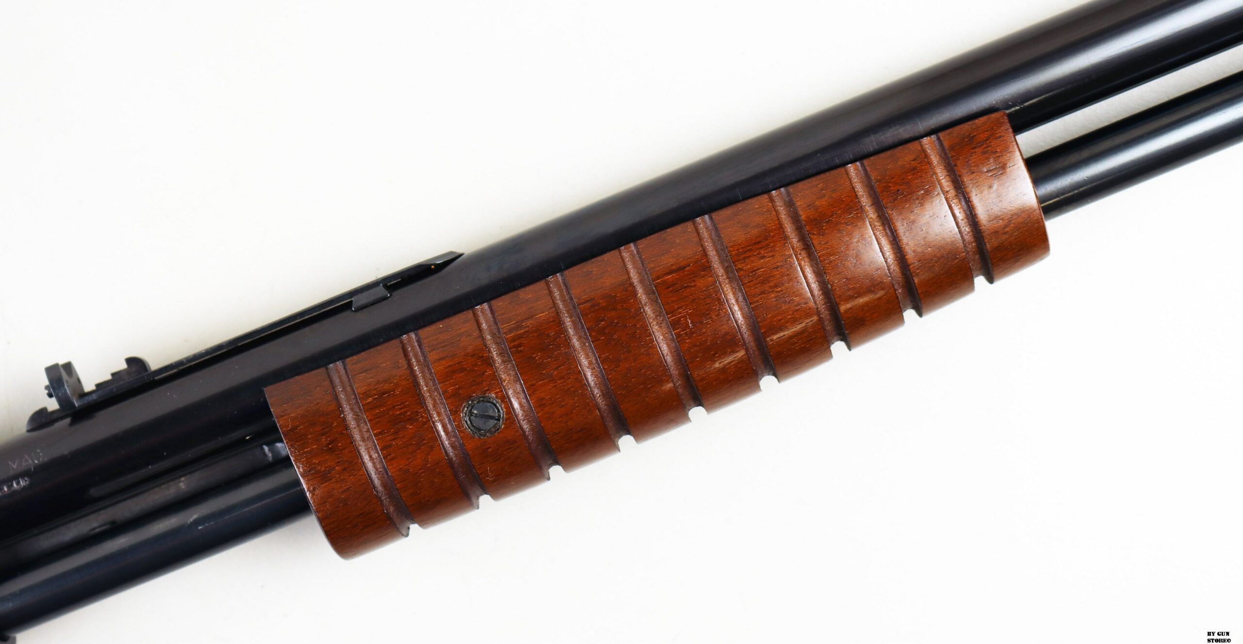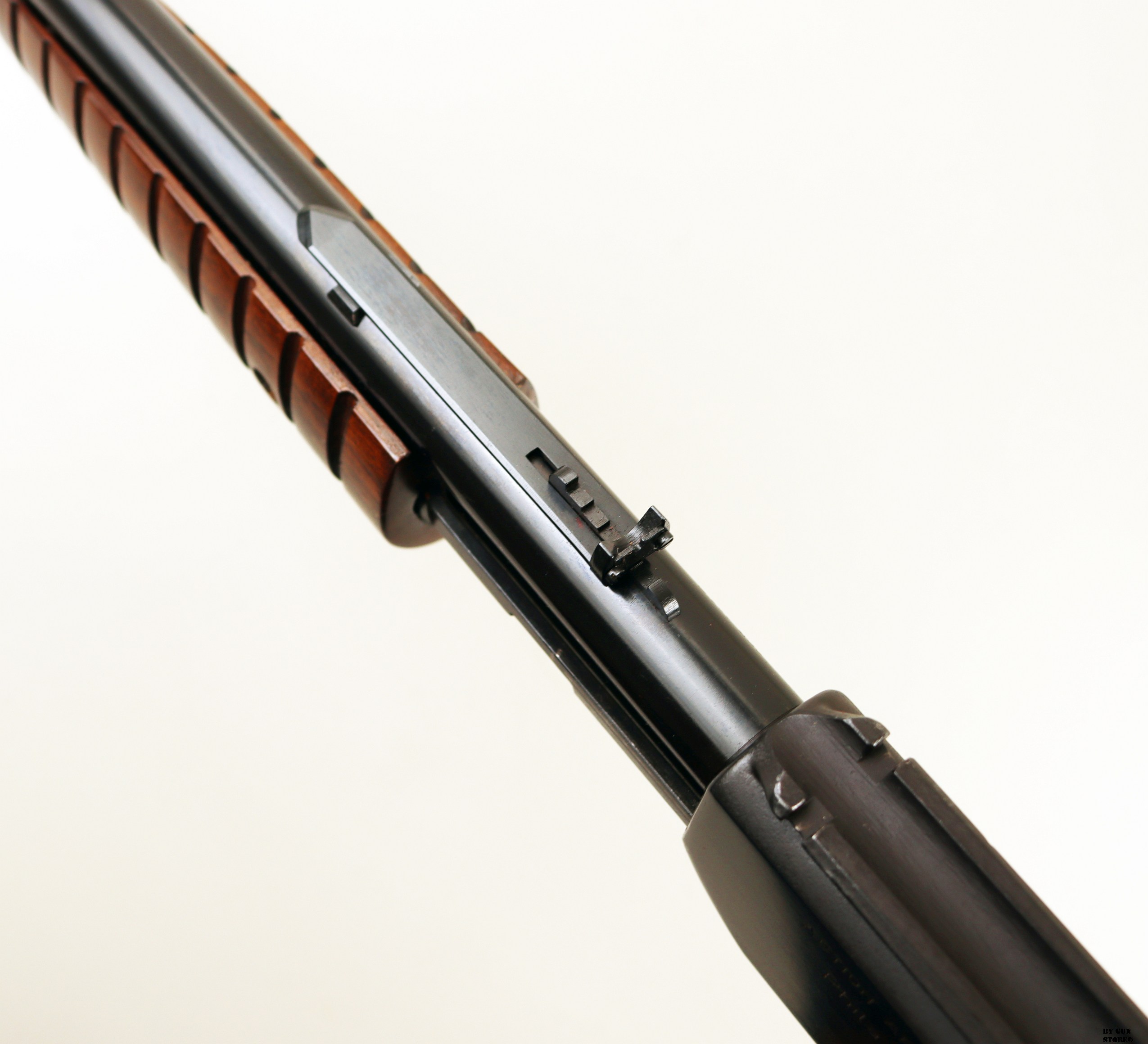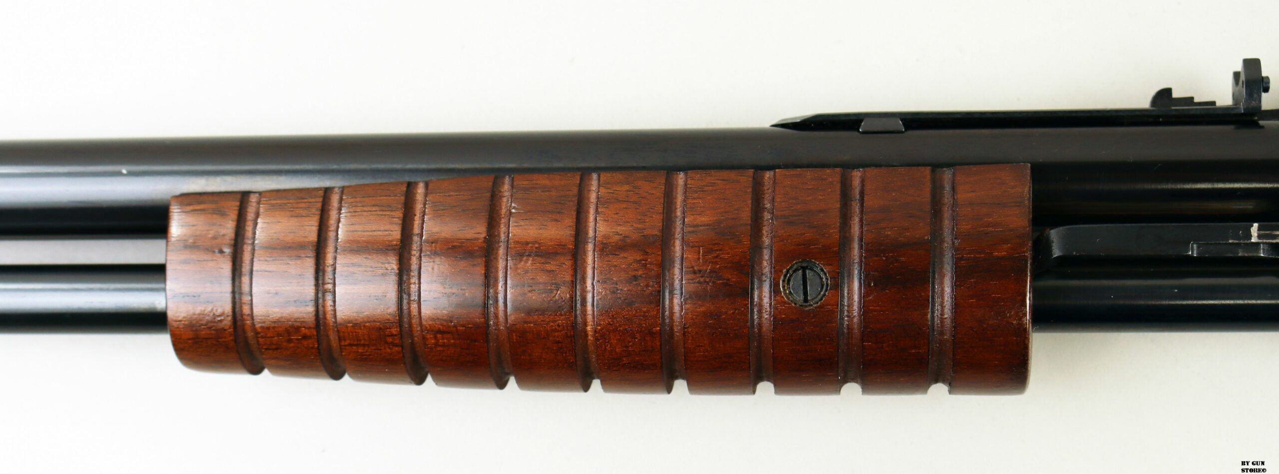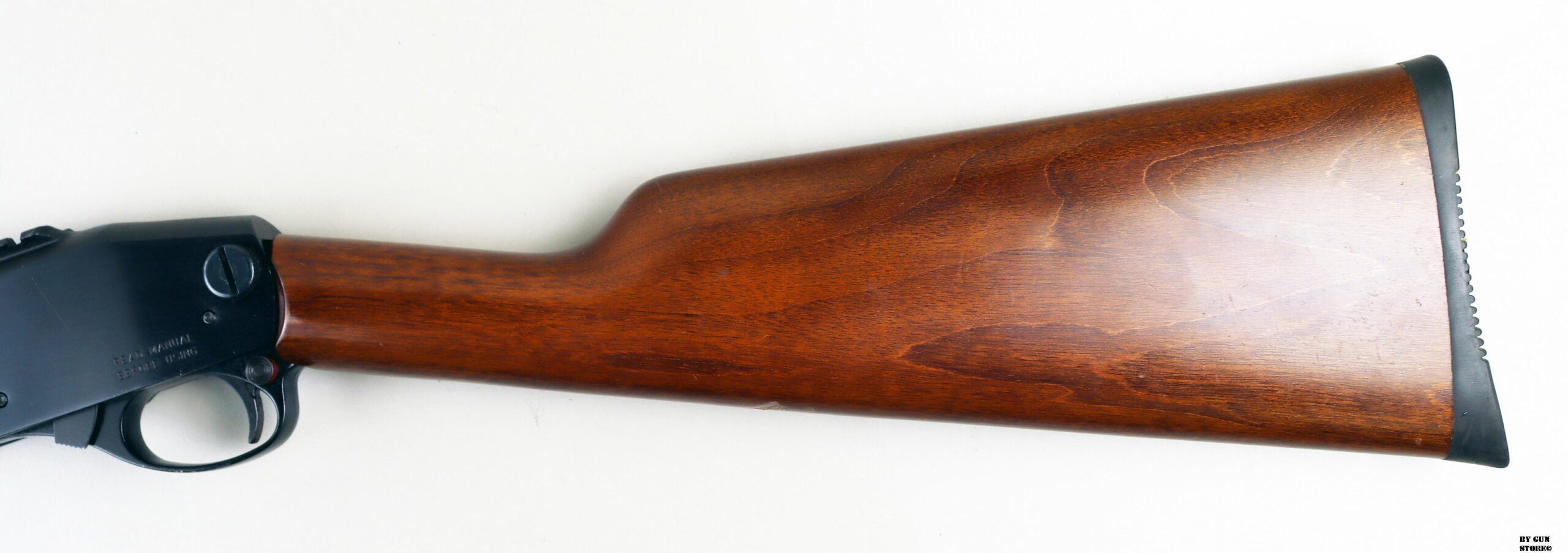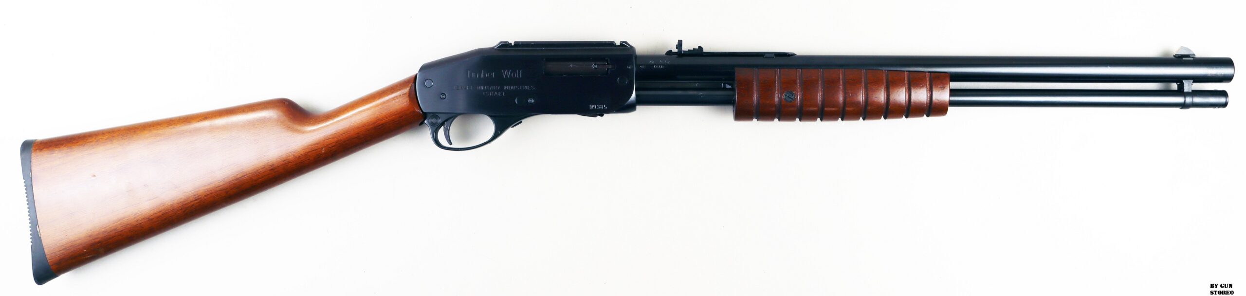 La carabina a pompa Timber Wolf è stata progettata da Evan Whildin e prodotta dalla Israeli Military Industries , fino al 1989 e non è più in produzione. Questo è uno dei pochi fucili moderni camerati per cartucce da revolver come il .357 Magnum e il .44 Magnum. Meno di 1000 esemplari sono stati importati negli Stati Uniti dalla Springfield Armory. Un singolo prototipo è stato realizzato in calibro .32-20. Questo che presentiamo è in condizioni ottime. Canna e azione sono perfette. Brunitura originale e legni ottimi. Concettualmente, l’arma era simile al fucile a pompa Colt Lightning di 100 anni prima. Anche questo era camerato per cartucce da pistola, essendo stato progettato per essere un complemento del Colt Single Action Army. Allo stesso modo, il Timber Wolf fu concepito per essere un complemento ideale per qualsiasi revolver camerato per due delle cartucce più popolari e potenti dell’epoca. Dotato di mire metalliche di serie, era possibile montare un’ottica grazie alla slitta integrata sulla parte superiore del castello. Questo è ciò che rendeva la Timber Wolf un’arma interessante. Invece di dover scegliere l’altezza degli anelli di montaggio dell’ottica (bassa, media o alta), era possibile regolare l’inclinazione del calcio con un semplice cacciavite e una chiave a brugola. Successivamente, la base del calcio poteva essere regolata per bloccarla nella posizione più adatta al tiratore e al tipo di mirino utilizzato. La tacca di mira regolabile è graduata fino a 275 iarde, un obiettivo ambizioso per il calibro .357 Magnum.