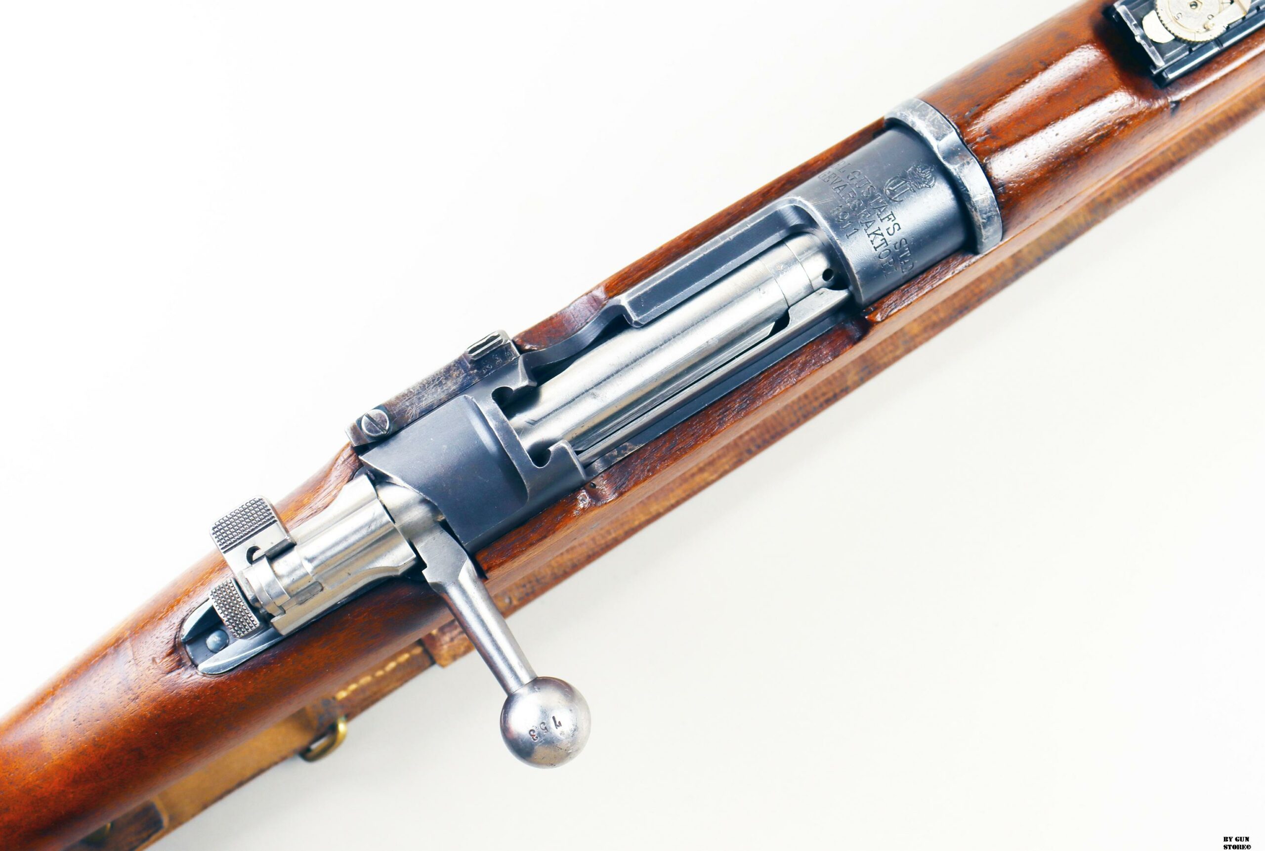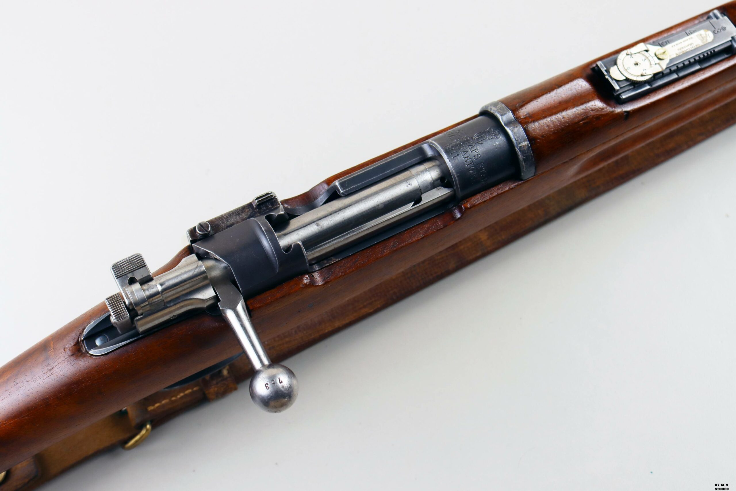 Nel 1938 i Mauser 1896 avevano già più di quarant’anni, fucili così lunghi non erano più adatti ad un conflitto “moderno”, che richiedeva una notevole mobilità. Si decise di accorciare la canna, come avevano già fatto i tedeschi, come avevano già fatto gli italiani, come avevano già fatto gli americani. Nacque pertanto il progetto del Mauser svedese modello 1938 o M/38. Prima di mettere in produzione i Mauser M/38, si provvide ad accorciare dei fucili modello 96, che mantenevano la manetta dell’otturatore dritta e che vennero denominati M/96-38. Questa operazione fu effettuata, nel periodo dal 1938 al 1940, su circa 30.000 fucili. Solo successivamente, dal 1942 al 1944, la produzione degli M/38 propriamente detti (quelli con la manetta dell’otturatore piegata) fu assegnata alla Husqvarna, per un totale di 60.000 fucili, e la stessa Husqvarna produsse, dal 1943 al 1944, 20.000 fucili M/96.