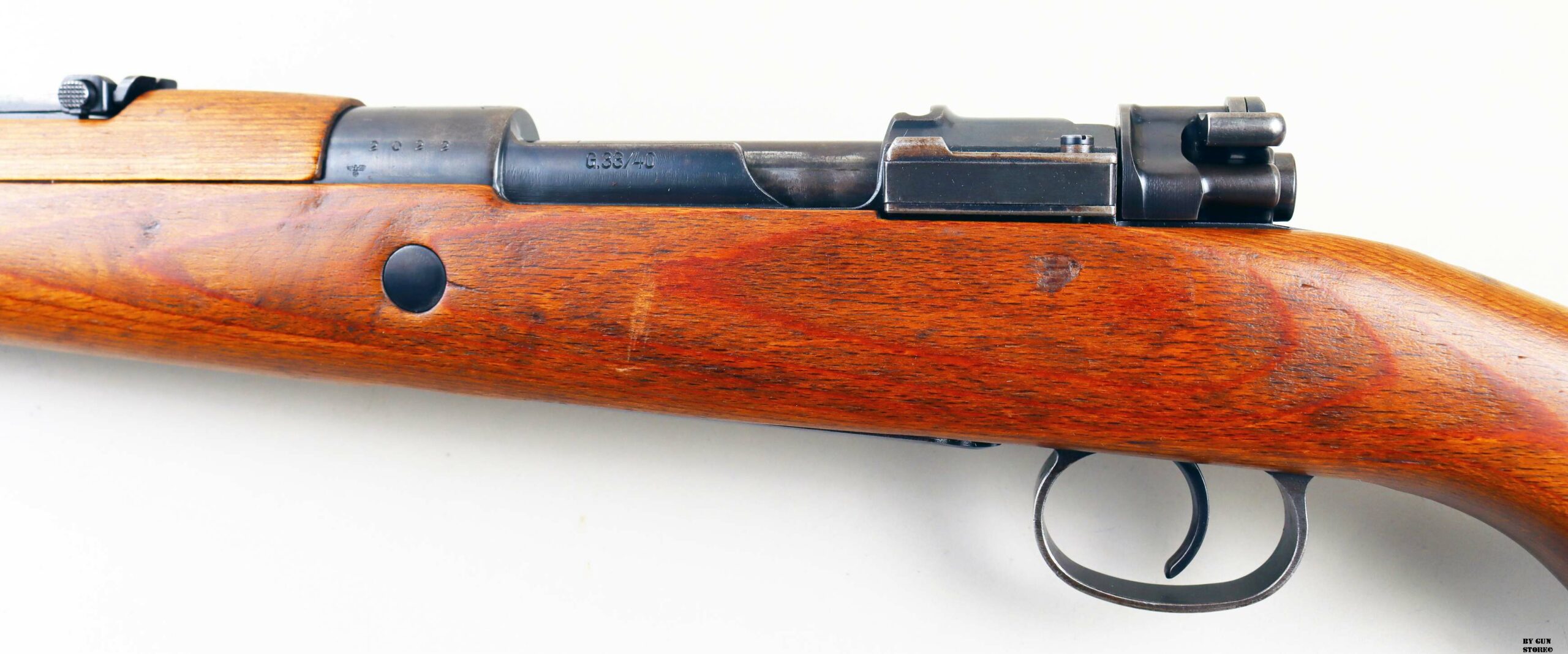 Il Gewehr 33/40 è un fucile a otturatore rotante basato in gran parte sul fucile ceco VZ.33, a sua volta ispirato al famoso Gewehr 98. Il fucile era piuttosto corto, essendo lungo solo un metro. Una caratteristica notevole del fucile è la piastra metallica all’estremità del calcio. Questa lamina metallica protettiva, con piastra d’acciaio sul lato, era fissata per rendere l’arma utile agli Jäger come strumento da arrampicata e supporto, con protezione dei danni causati dalle pietre. I G33/40 furono utilizzati dai Gebirgsjäger e dai Fallschirmjäger. Furono prodotti per soli tre anni, dal 16 ottobre 1940 come Gewehr 33/40 fino al dicembre del 1942, quando la produzione cessò. Qualsiasi baionetta per K98 è compatibile con il fucile G33/40. Il Gewehr 33/40 fu prodotto esclusivamente dall’ex fabbrica Ceskoslovenska Zbrojovka di Brno, che operava come Waffenfabrik Brunn AG e a cui fu assegnato il codice ‘DOTt’ nell’aprile del 1941. L’OKW (Oberkommando der Wehrmacht) ordinò 50.000 fucili nel 1940 e le acquisizioni totali potrebbero aver superato i 130.000 prima che la produzione a Brno sembrasse essere stata convertita al modello standard Karabiner 98k (informazioni tratte da THE GERMAN RIFLE: A COMPREHENSIVE ILLUSTRATED HISTORY OF THE STANDARD BOLT-ACTION DESIGNS, 1871-1945 di John Walter). I nazisti catturarono la fabbrica, adattarono e modificarono il VZ 33 ceco trasformandolo nel G33/40, e riutilizzarono i pezzi del VZ33 ceco sul 33/40.
