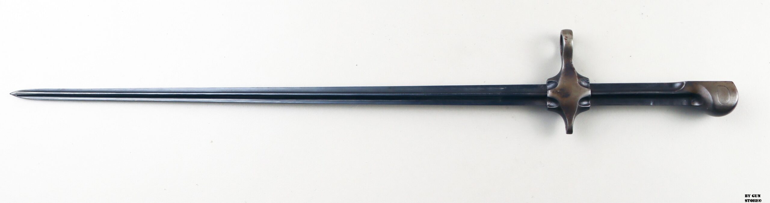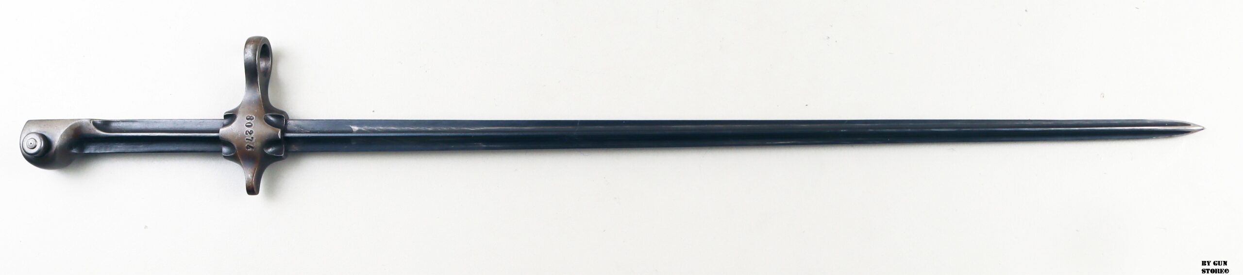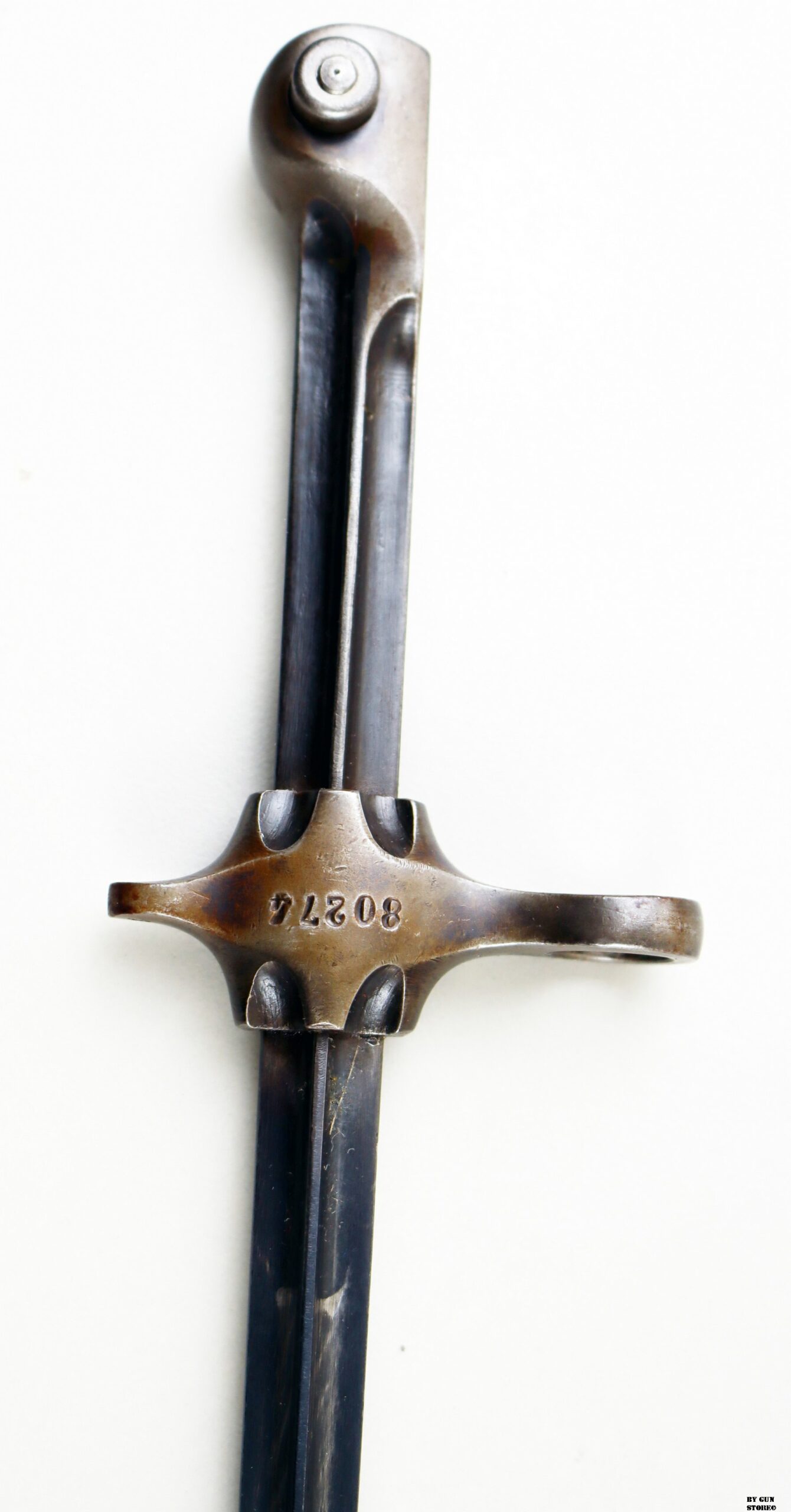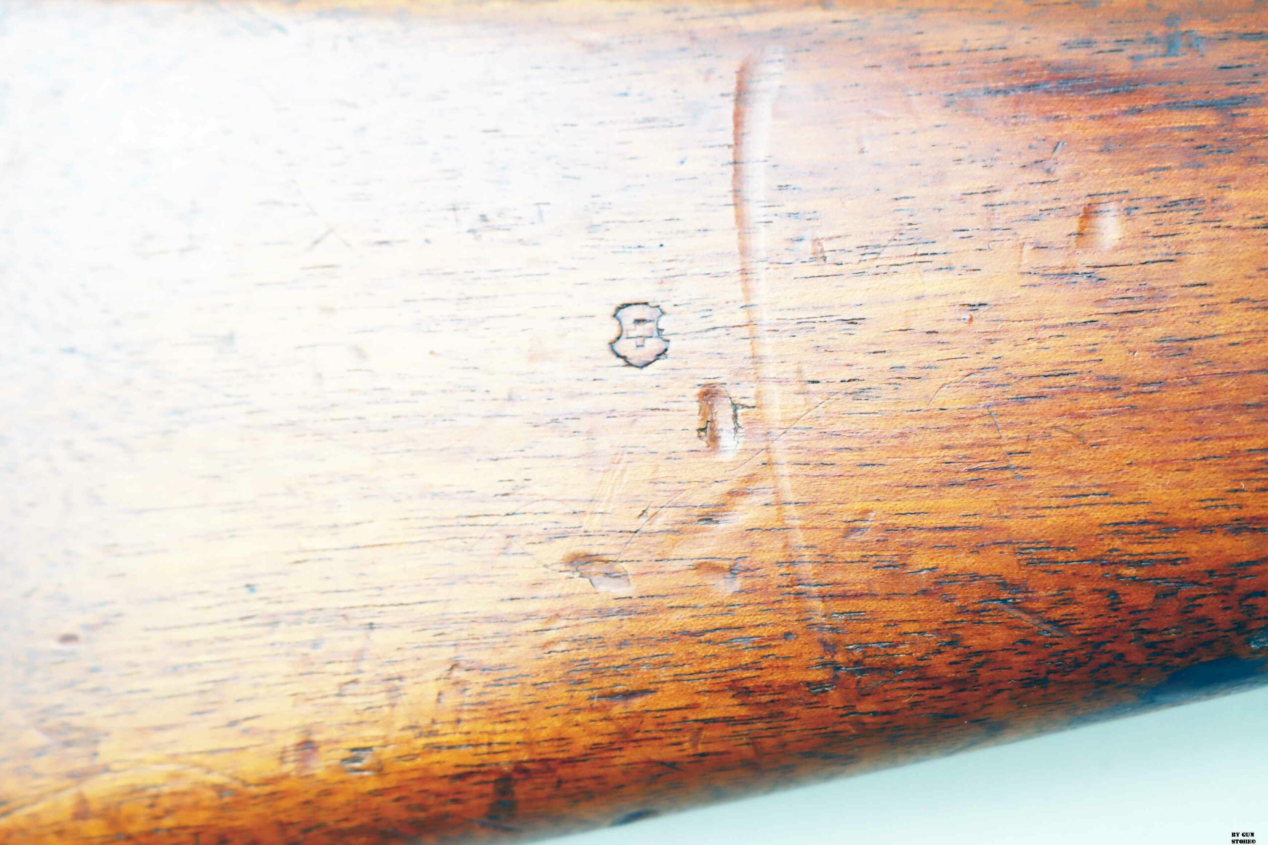 Il fucile da Cadetto, Kadettengewehr in tedesco. Un monocolpo in calibro 7,5×55. L’alzo ha sul bordo sinistro del supporto le tacche che coprono da 300 a 1200 m, ovviamente destinate al tiro con le cartucce a piena carica, mentre su quello destro le tacche sono da 200 a 400, per il tiro con le munizioni “da ragazzo”, caricate con una minor dose di propellente. Il castello presenta una culla liscia che chiude la sede del caricatore. Ovviamente è diversa dal normale anche la parte inferiore dell’arma, che presenta solo le teste delle viti di fissaggio inserite in rosette di acciaio annegate nel legno, e diversi sono anche i valori di peso e lunghezza, per adattarsi al fisico dei giovani da addestrare. La canna è lunga 60 cm, contro i 70 e passa dei fucili d’ordinanza, e anche il calcio ha dimensioni ridotte, ma tutto il resto, ovvero sistema di otturazione, sicura, tipo della calciatura, organi di mira, finimenti metallici, è molto simile. Questo è monomatricola, con canna, meccanica e azione ottime. Brunitura originale, è un ottimo pezzo da collezione o da uso al poligono. In abbinamento la baionetta corretta.