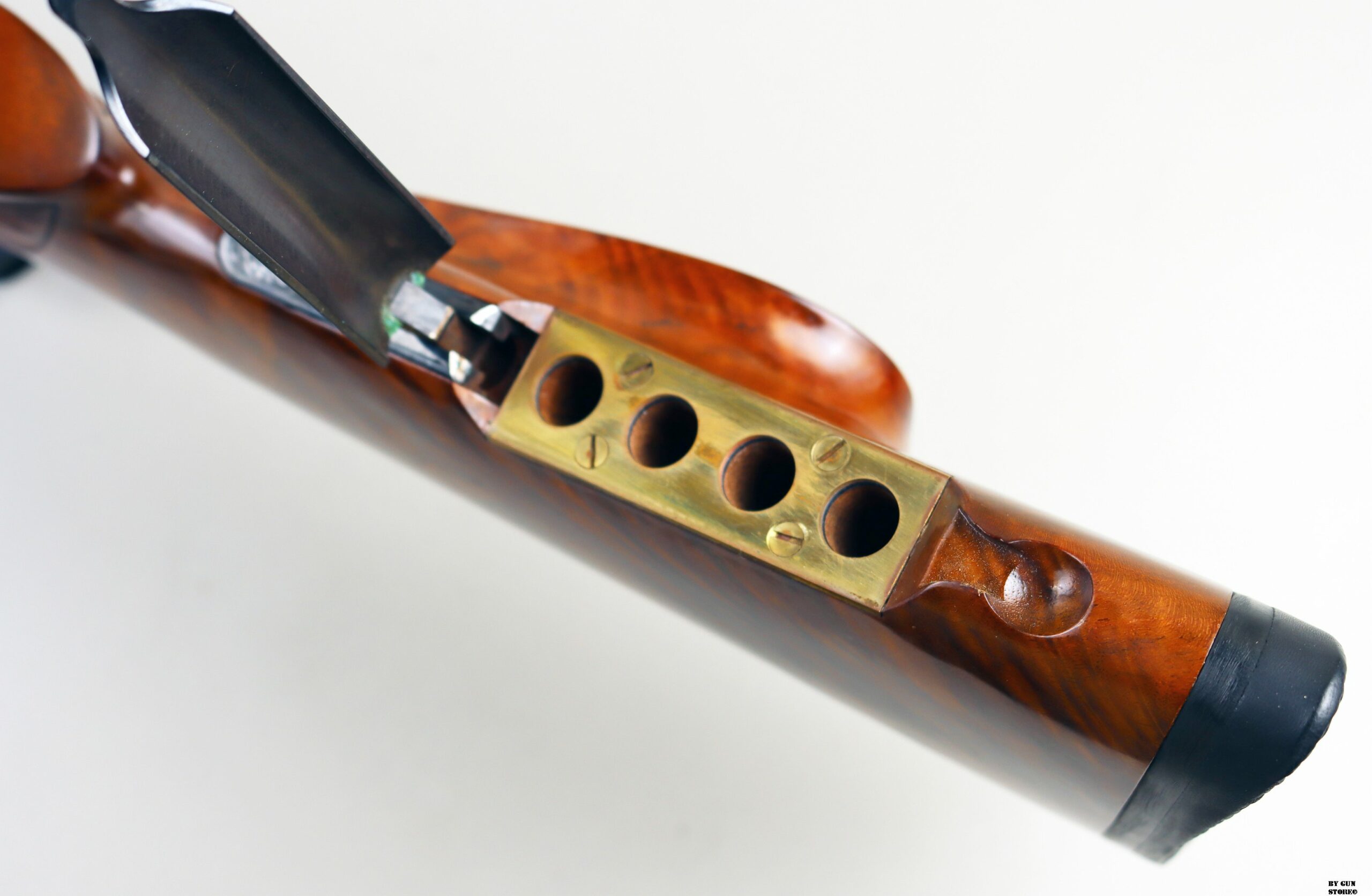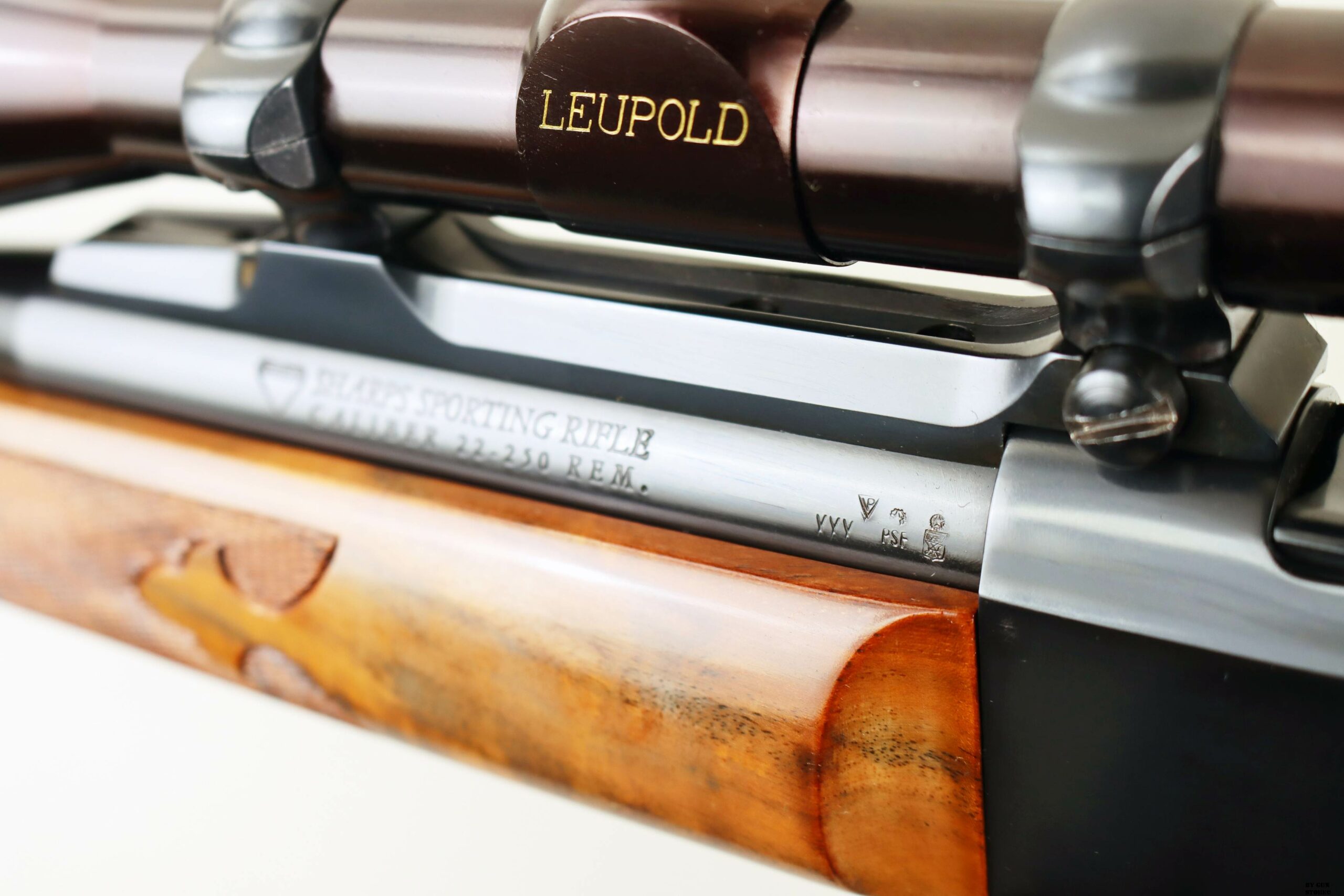 Uno splendido e raro fucile a blocco cadente Sharps modello Sporting Rifle, prodotta ad Hartford in Connecticut. Arma arrivata in Italia nel 1974, come rilevabile dai banchi di prova (XXX). Canna, meccanica e azione in ottime condizioni. L’arma monta un’ottica Leupold con reticolo perfetto modello Vari- X-II 3×9. Brunitura ottima e originale, legni con zigrini ottimie e poggiaguancia. E’ completo di cinghia Colt. E’ completo dei suo kit di manutenzioni originale e coevi. Calibro 22-250.