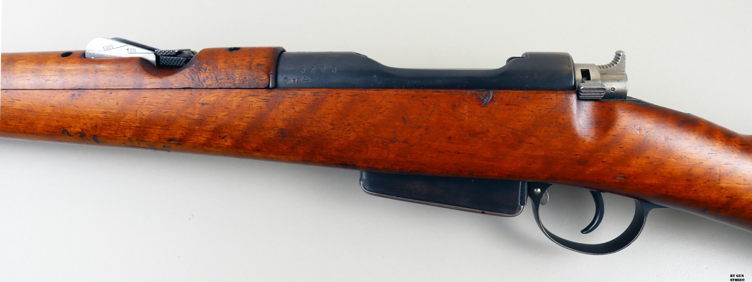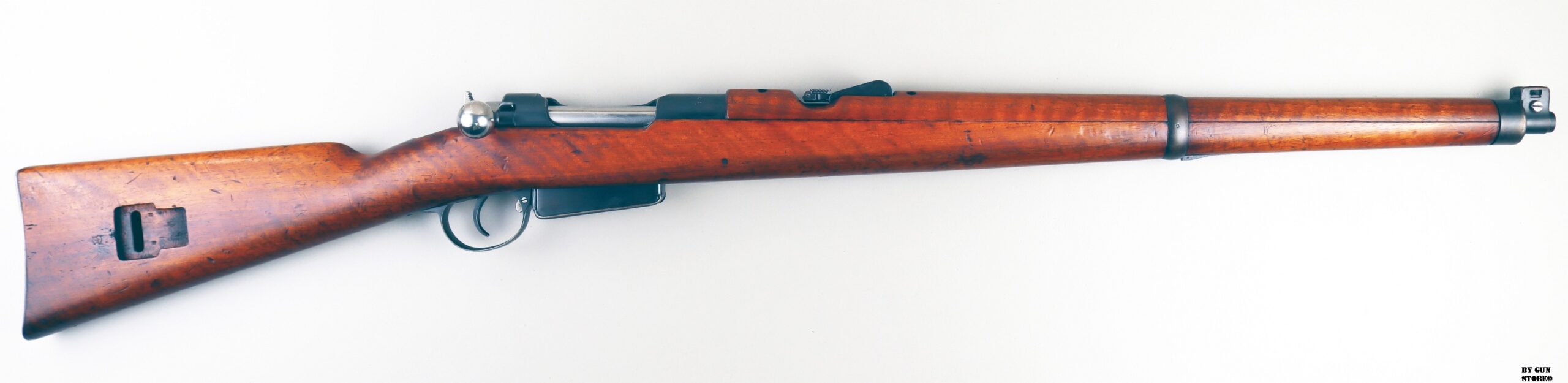 Splendido fucile mod. 1893 Cavalleria prodotto a Neuhausen, dalla Eidgenössische Waffenfabrik Bern (W+F). Con l’introduzione del fucile da fanteria modello 1889 in calibro Gewehr Patrone 90 (7,5 mm GP 90) 1890 e la conseguente sostituzione dei fucili Vetterli in calibro 10,4 mm Vetterli da parte della maggior parte dei soldati equipaggiati con fucili, la cavalleria era ancora equipaggiata con un’arma “vecchia”, ovvero il moschettone Vetterli 1878 , nel vecchio calibro. Il fucile da fanteria modello 1889 non era adatto alla cavalleria che necessitava di un fucile corto a causa della sua lunghezza. Dal punto di vista della standardizzazione, calibri diversi non erano ottimali per le truppe attive e così nel 1891 il capo d’armi della cavalleria, in seguito generale Ulrich Wille, richiese l’approvvigionamento di una nuova carabina da cavalleria.