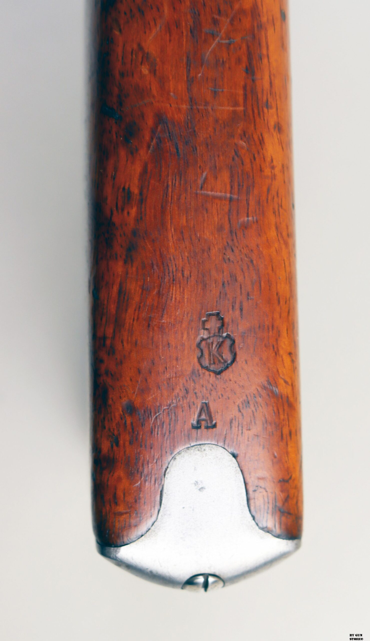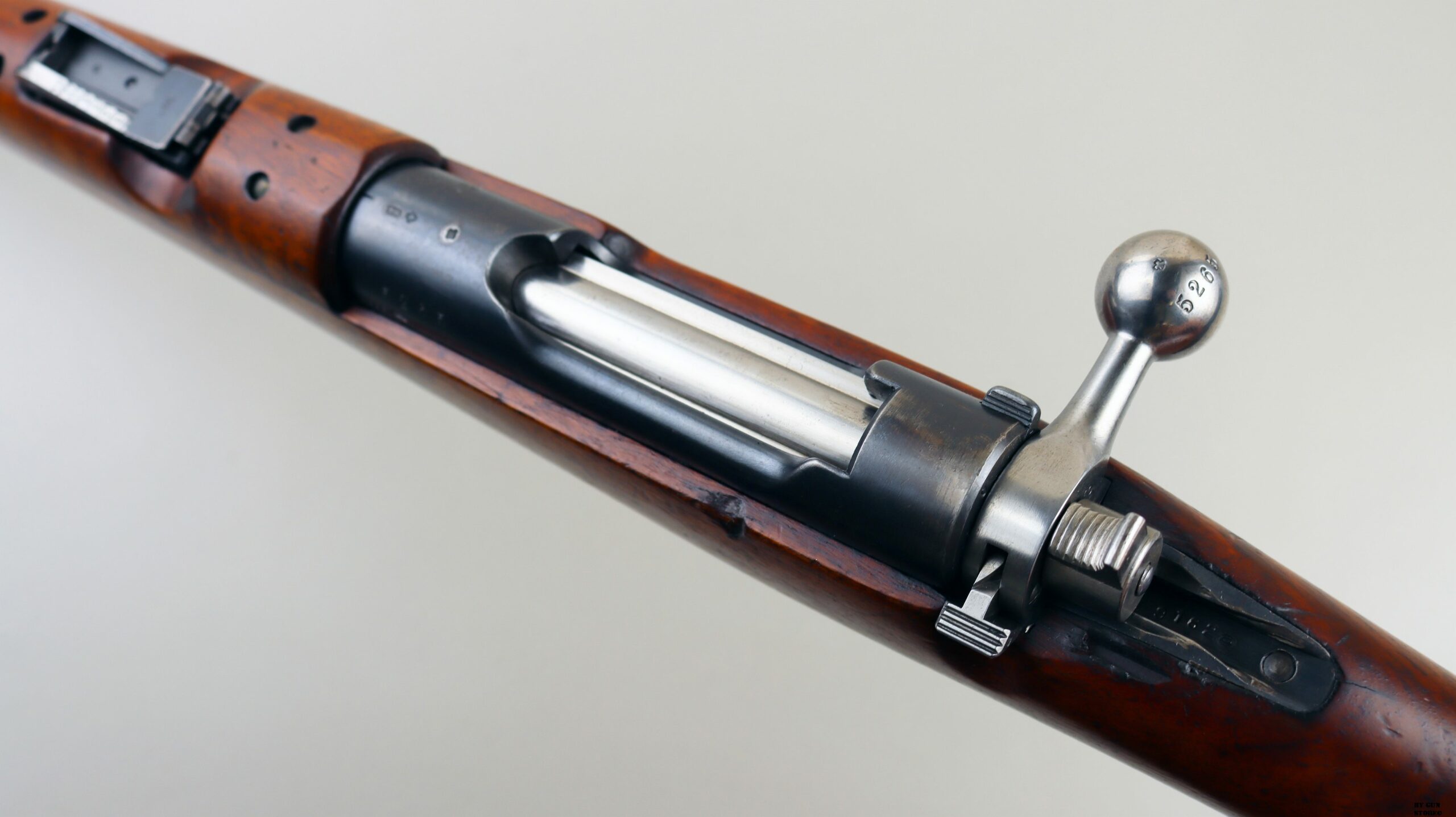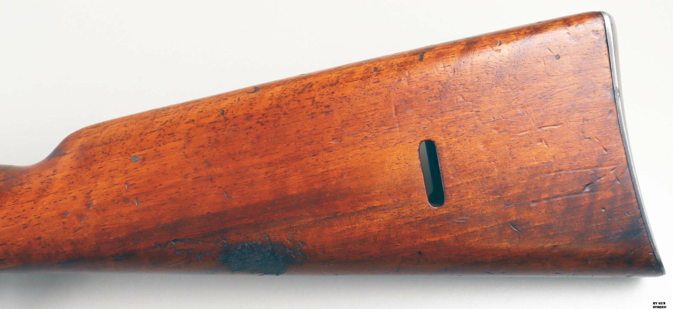 Il caricatore è fissato direttamente accanto alla guardia del grilletto, come fu fatto in seguito sulla carabina Modello 1931 , e contiene sei cartucce. La carabina da cavalleria Modello 1893 non ha un fermo del caricatore; pertanto la culatta può essere chiusa anche quando il caricatore è vuoto. I primi 4.250 pezzi della carabina da cavalleria modello 1893 furono realizzati dalla SIG Neuhausen (“SJG NEUHAUSEN”), probabilmente nel 1895 e all’inizio del 1896. Da marzo/aprile 1896 e dal numero 4.251 in poi, la produzione ebbe luogo presso la Waffenfabrik Bern (W+F). Questo che presentiamo è in ottime condizioni con canna, meccanica e azione ottime. Calcio in noce, brunitura originale, monomatricola. Ottimo per collezione. Calibro 7,5×55.