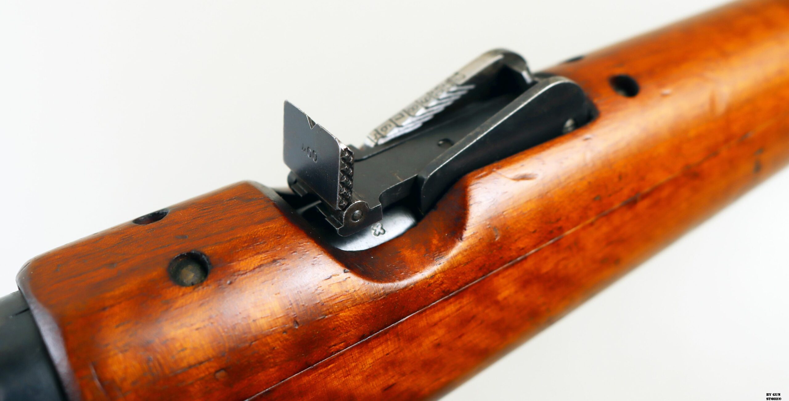 Il mirino ha diversi meccanismi per la regolazione della distanza; per 500-1200 m la lama del mirino può essere regolata. A 300 m è possibile sparare tramite una tacca di mira fissa montata anteriormente e a 400 m tramite una tacca di mira pieghevole. La fascia anteriore con ganasce di protezione del mirino e il mirino è avvitata anteriormente alla canna. Se la vite si allenta, anche il porta mirino con il mirino si muove, causando una maggiore dispersione dell’arma.