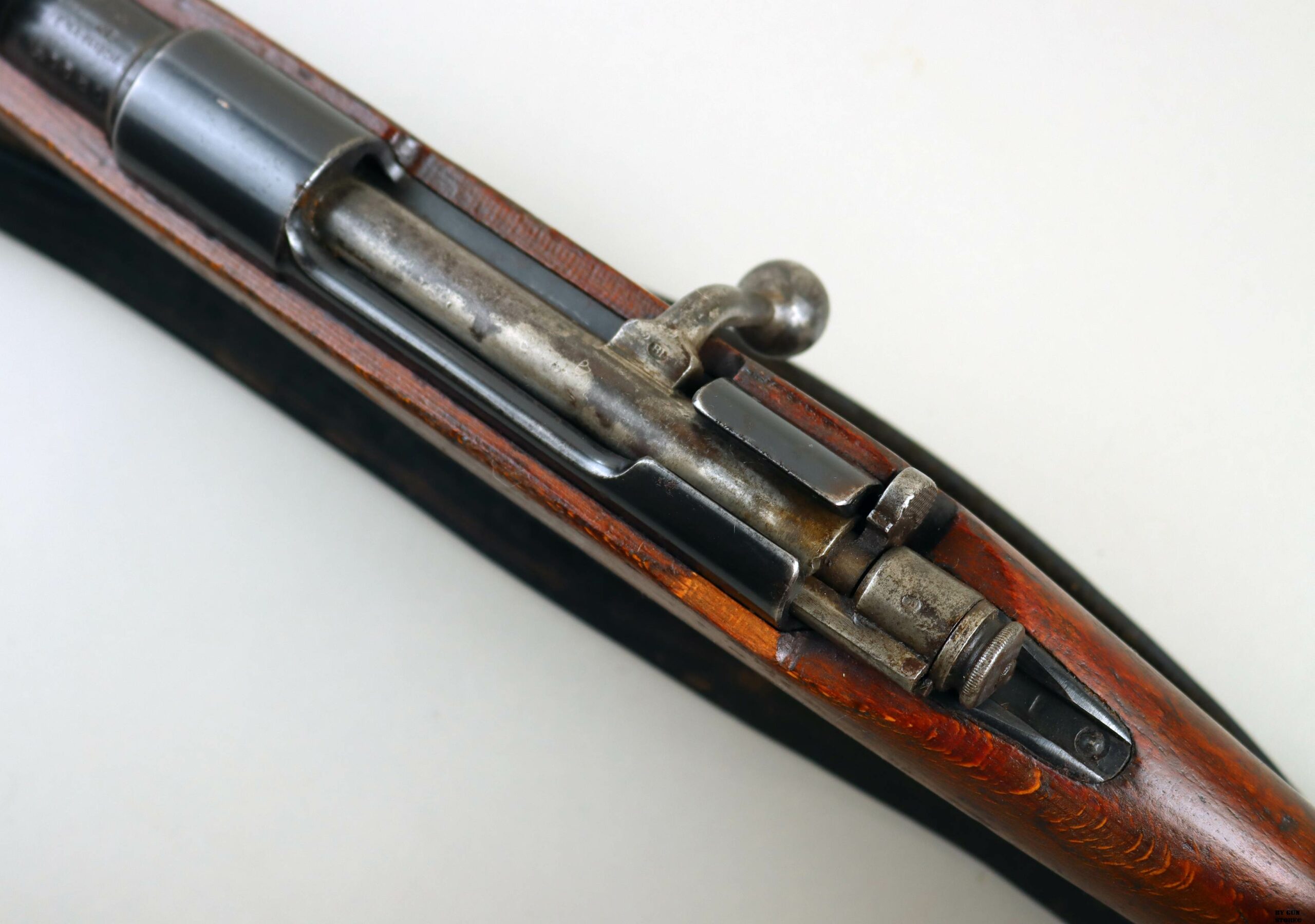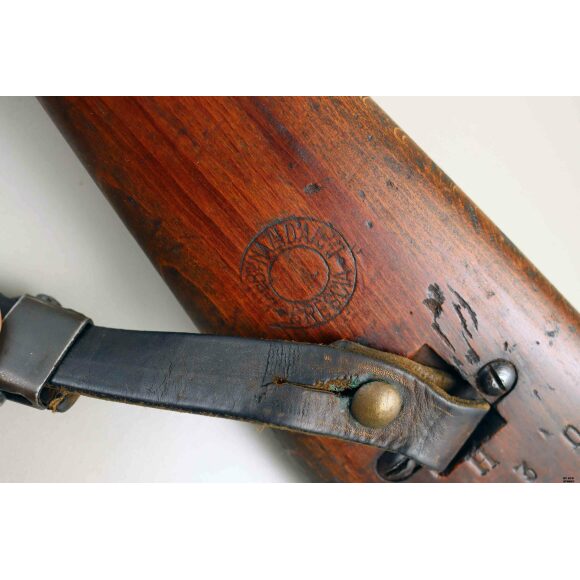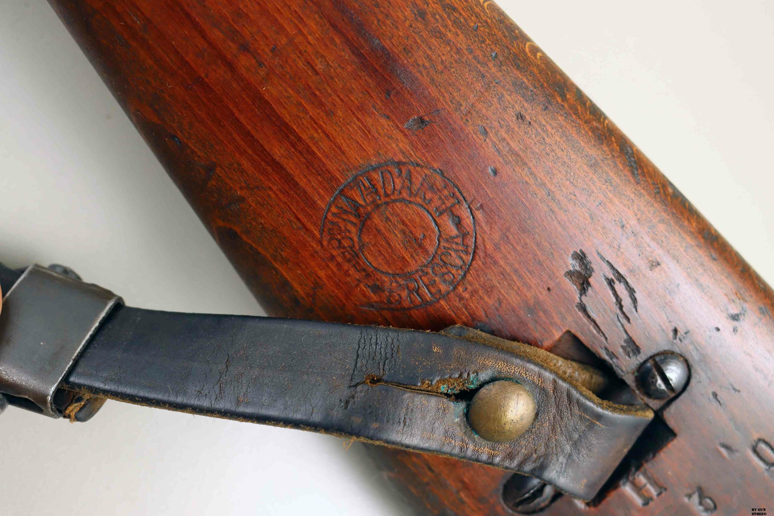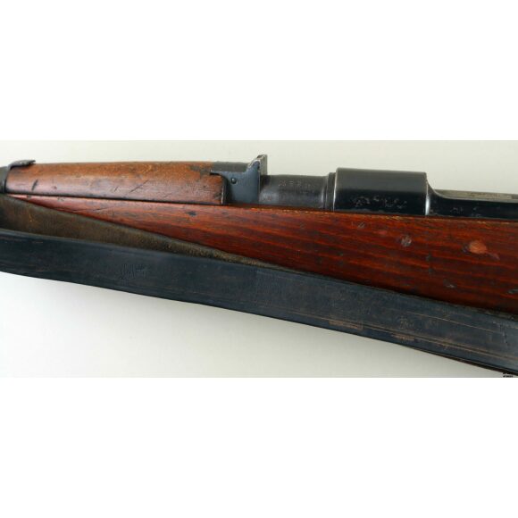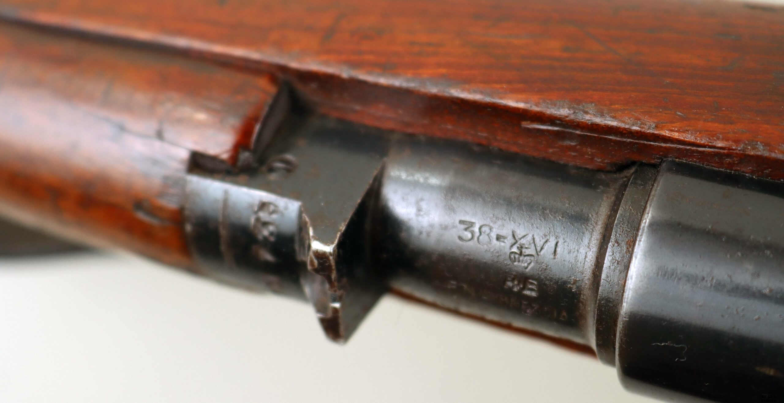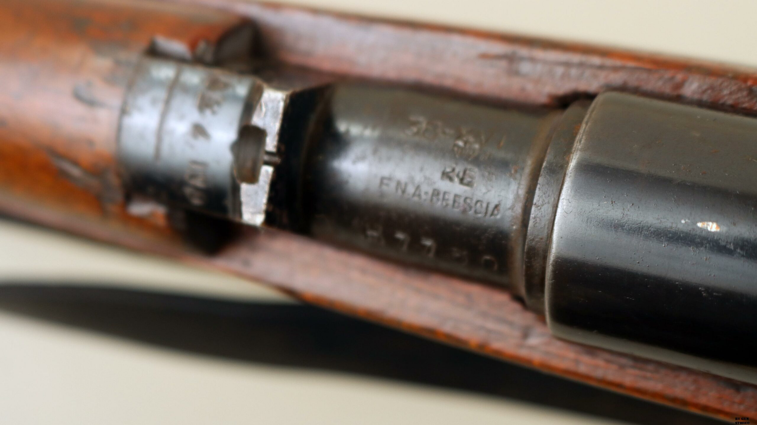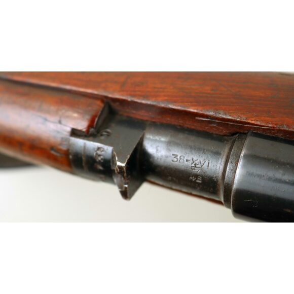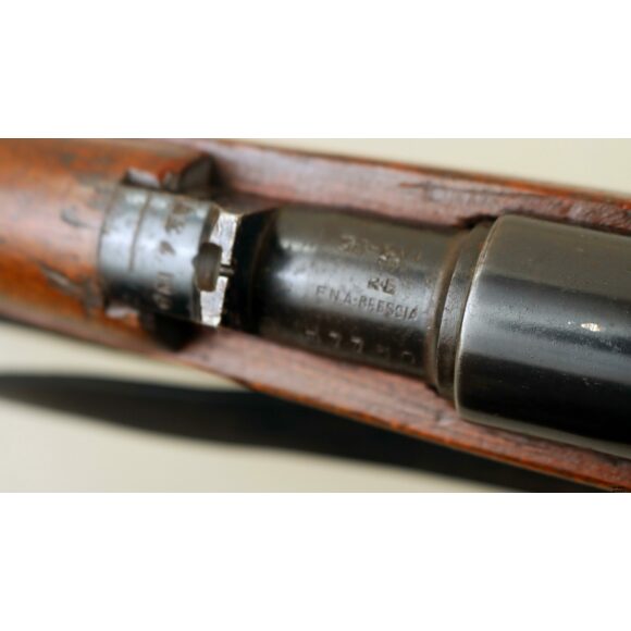 Moschetto modello 38 di Cavalleria prodotto dalla F.N.A. di Brescia nel 1938 (XVI E.F.). Presenta il punzone coronato R.E. del Regio Esercito. Mira fissa, canna, meccanica e azione sono ottime. Calcio monomatricola con punzone sulla pala della Fabbrica d’Armi di Brescia. Calibro 7,35×51.