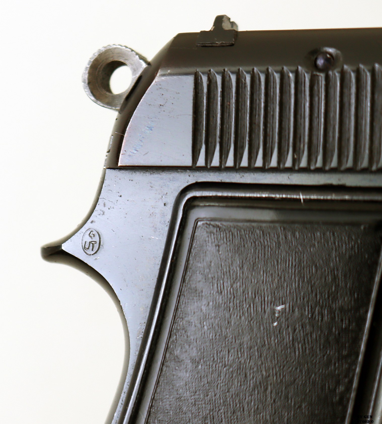 Una veramente splendida pistola Beretta pistola Beretta modello 1935 prodotta nel periodo della Repubblica Sociale italiana, dopo l’8 settembre 1943. Questa, in particolare, proviene da ritrovamento di famiglia, con la fondina corrispondente. L’arma, matricola 523121, è sta prodotta tra il marzo e giugno del 1944 (16.000 pezzi da 509.000 a 525.000). La canna è veramente molto bella, praticamente a specchio e monomatricola con fusto e carrello. La brunitura è ancora del tipo lucido, rigorosamente originale, con i piani tirati ancora bene. Il carrello, sul lato destro, presenta un segno della prova di durezza del metallo. Sul lato sinistro è presente il punzone del Banco di Brescia. Sul lato destro è applicato il punzone 4UT, ascritto in un ovale. Il 4°Ufficio Tecnico dell’Esercito Tedesco – Heereswaffenamt, presente sia in Gardone Val Trompia che a Como, aveva il compito di ispezione ed approvazione delle armi destinate alla Wehrmacht, alle truppe ausiliarie ed a quelle dell’Esercito Repubblicano della R.S.I. La fondina è coeva e di produzione RSI. Classico cuoio conciato al cromo grigioverde, presenta una apertua ad estrazione rapida. Vero e ormai non comune pezzo da collezione. Calibro 7,65 mm, Arma Comune.