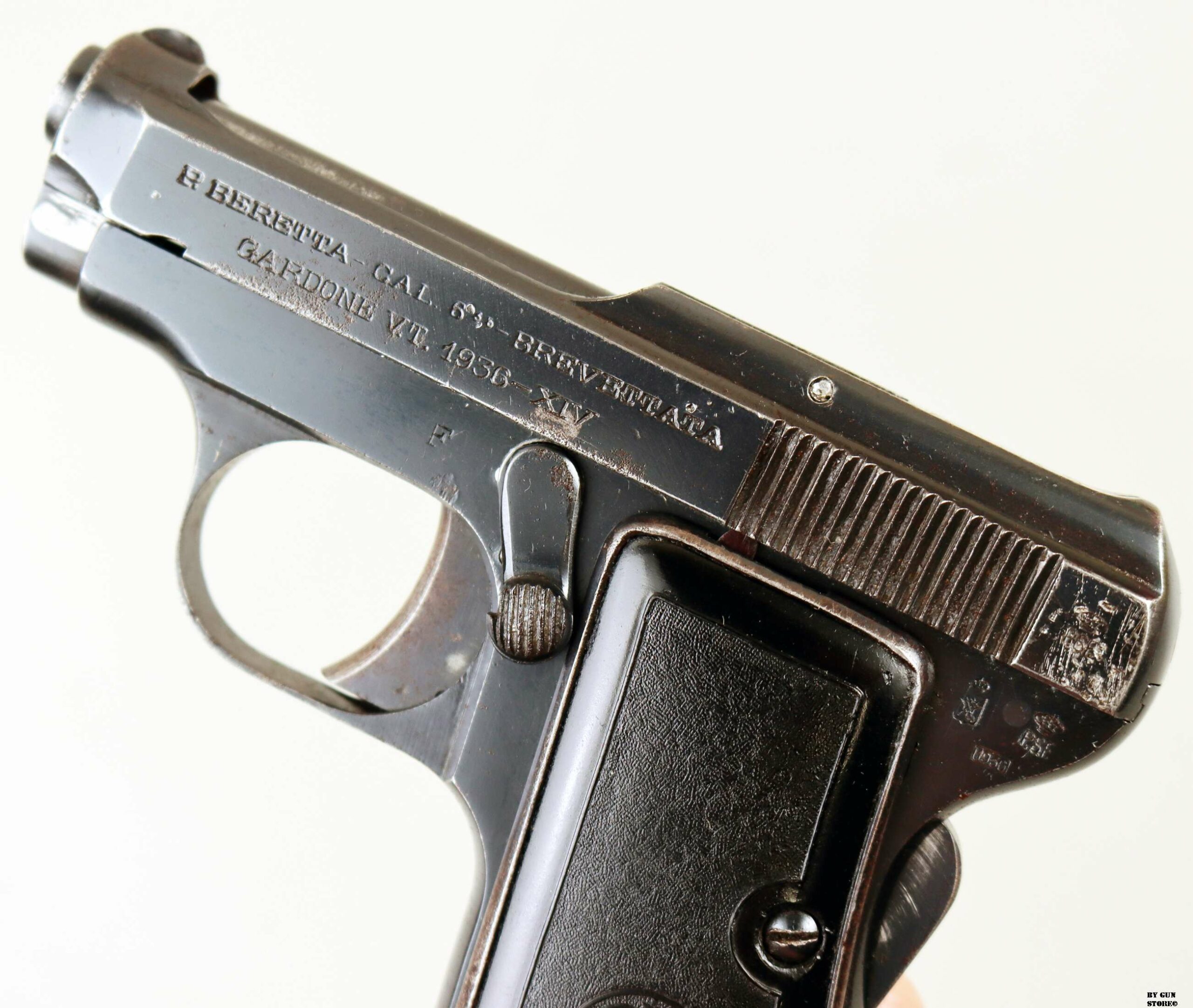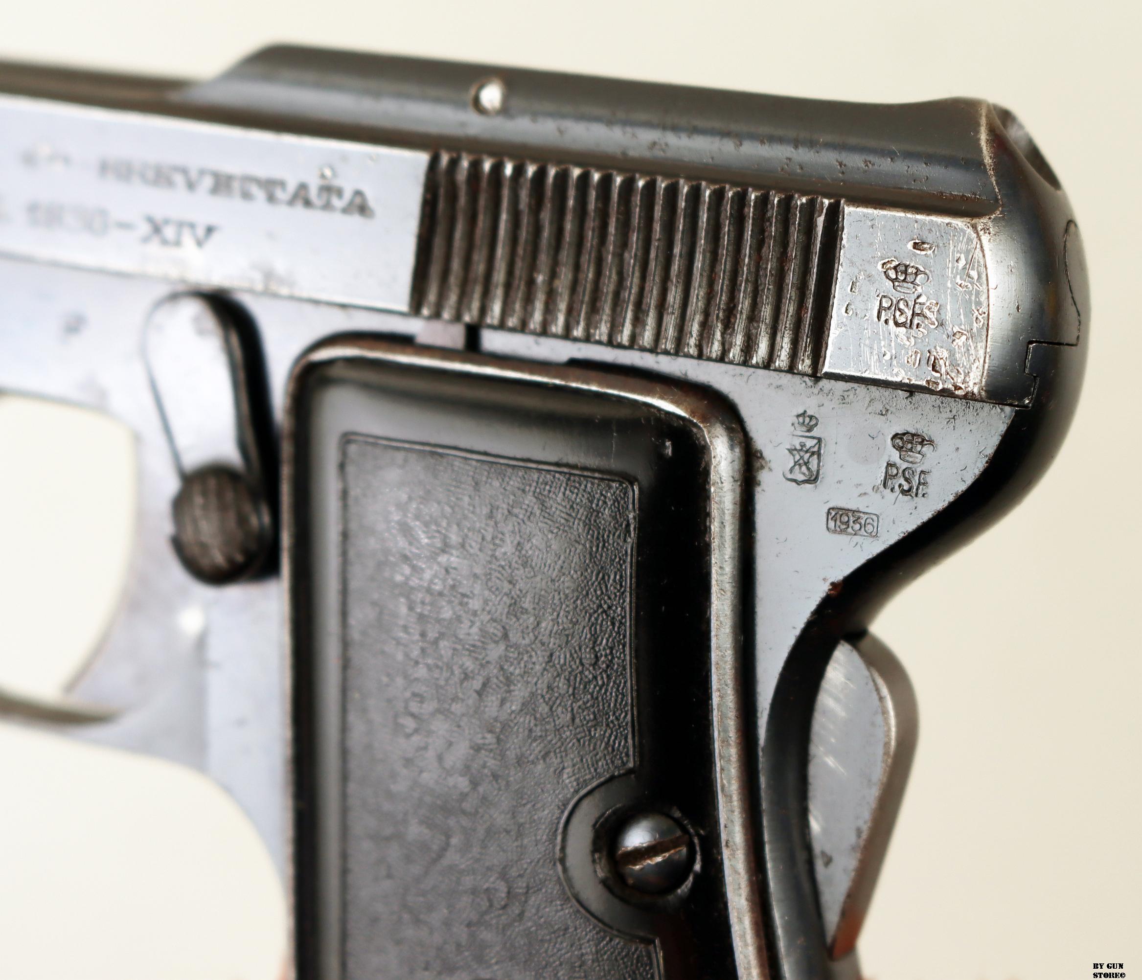 Anno 1936 di produzione e bancatura presso il Regio Banco Nazionale di Prova, per questa pistola modello 318 in calibro 6,35 mm. Canna opaca con qualche segno, sparabile e collezionabile. arma comune.