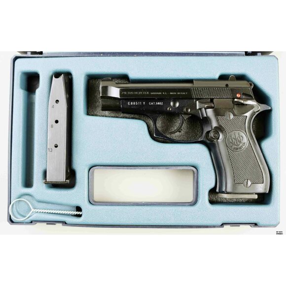 Anno 1998 di produzione e bancatura presso il BNP di Gardobe Valtrompia per questa ottima pistola Beretta modello 84 Cheetah. Canna, meccanica e azione sono ottime. L’arma è stata in dotazione al fianco di GPG. Minori segni di utilizzo ma ancora ottima per molti altri anni di servizio o per semplice divertimento al poligono. Dotazione completa della casa con secondo caricatore, scovolo valigetta e sopra scatola matricolata. Calibro 9 corto e Arma Comune.