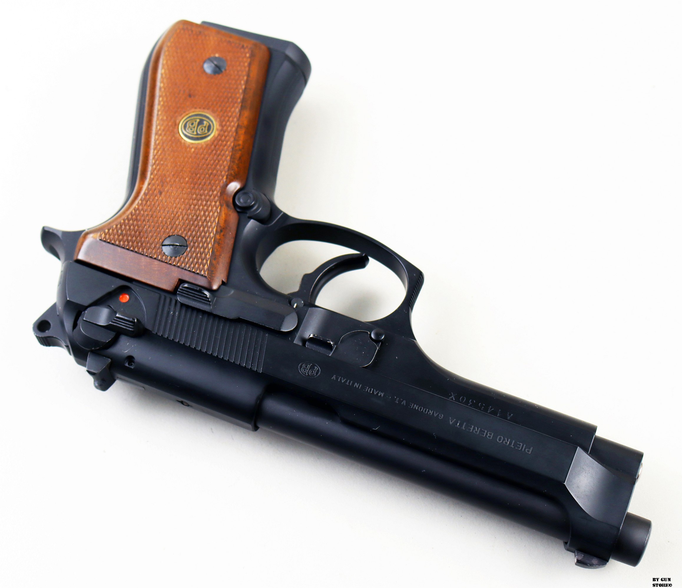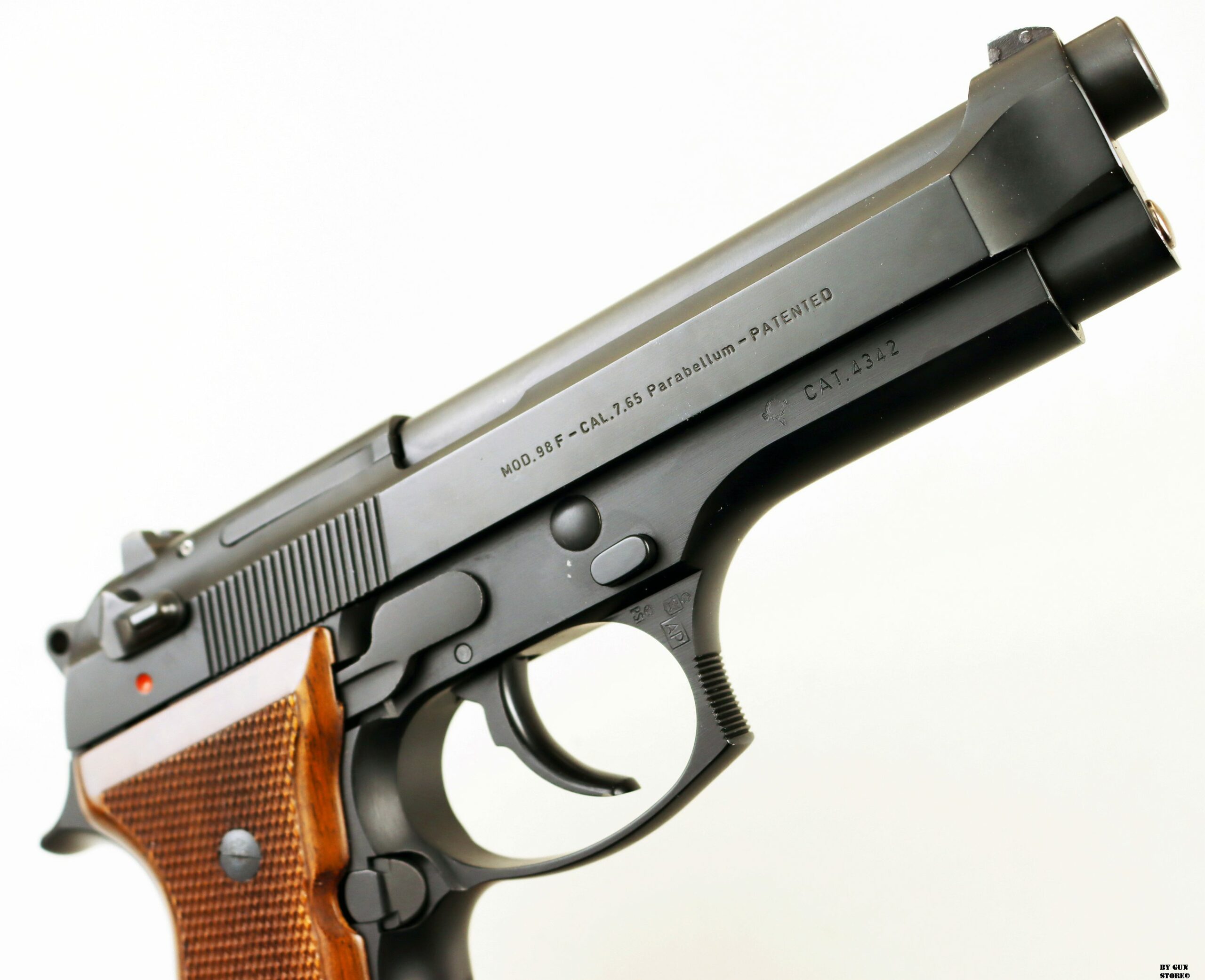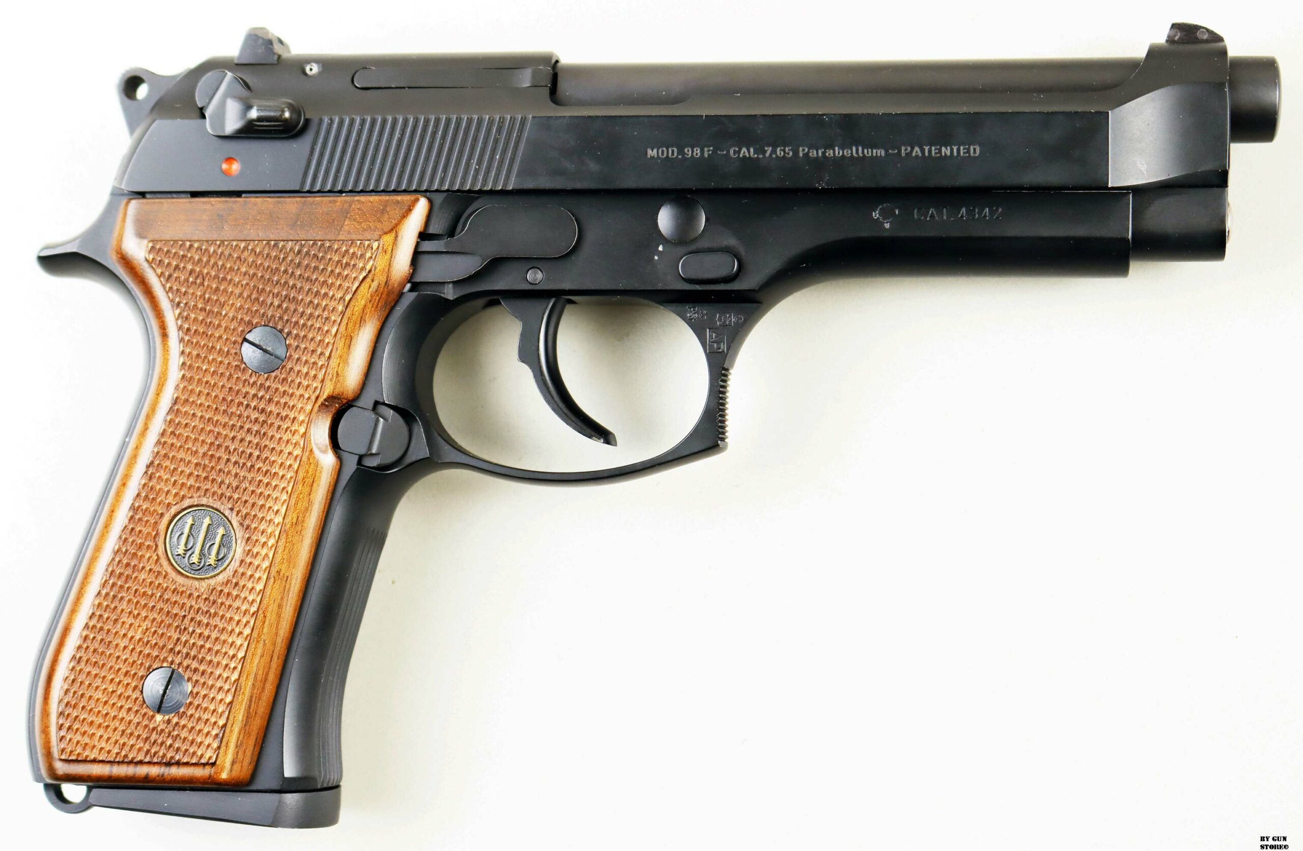 Anno 1986 di produzione e bancatura (AP) presso il BNP di Gardone, per questa pistola Beretta modello 98F. Una delle prime prodotte in calibro 7,65 parabellum. Proveniente da collezione è immacolata e con la dotazione di fabbrica originale. Scatola, sopra scatola, libretto e guancette di plastica di origine. Il precedente proprietario ha montato delle guancette di legno originali e ha sostituito l’asta guidamolla con quella in acciaio, sempre Beretta. Arma Comune.