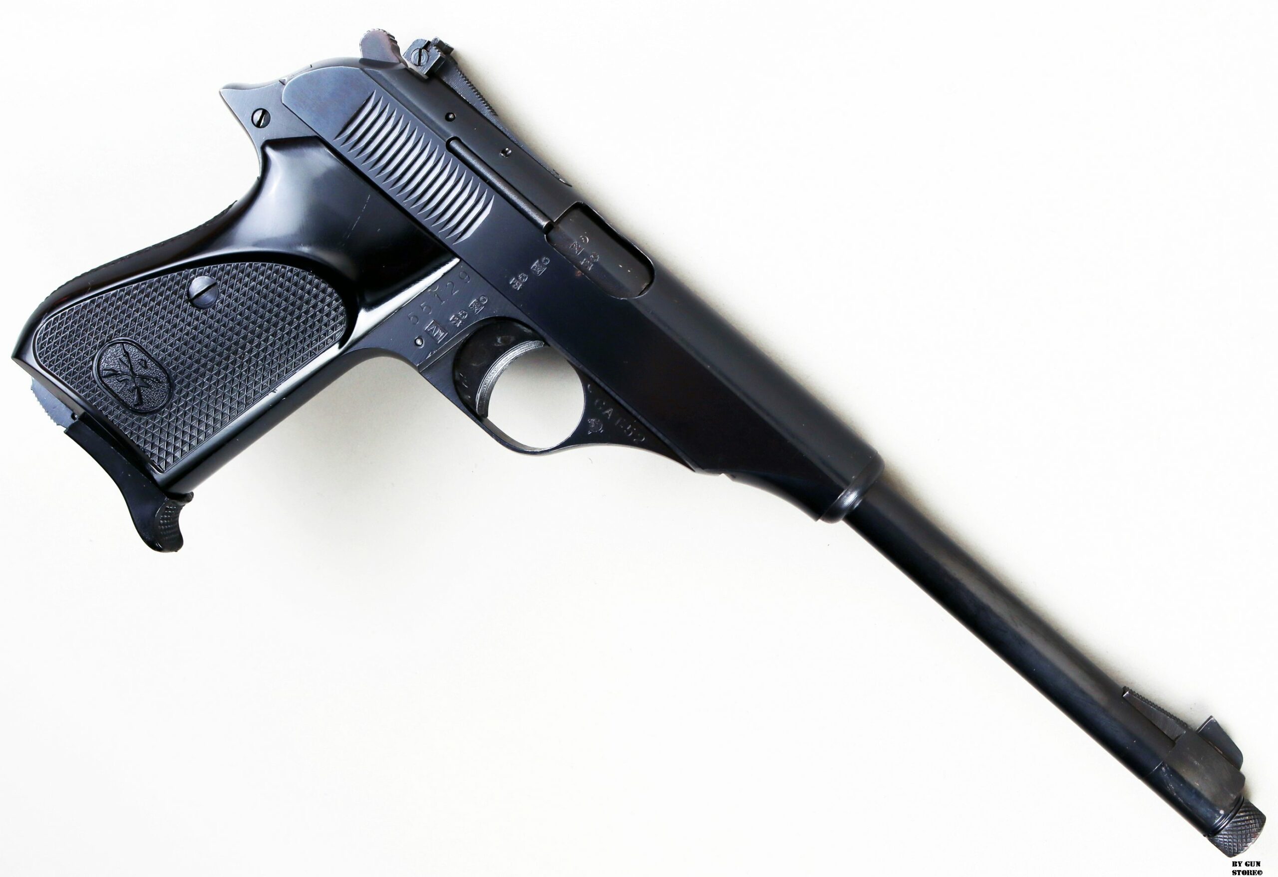 Anno 1984 (AM) per questa pistola Bernardelli modello 60 AMR in calibro 22. Un versione a canna lunga e mira regolabile ideale per il tiro mirato al poligono. Ottimo pezzo da collezione è completa della scatola coeva, del secondo caricatore e del libretto. Canna meccanica e azione sono ottime. Calibro .22 Long Rifle, Arma Comune.