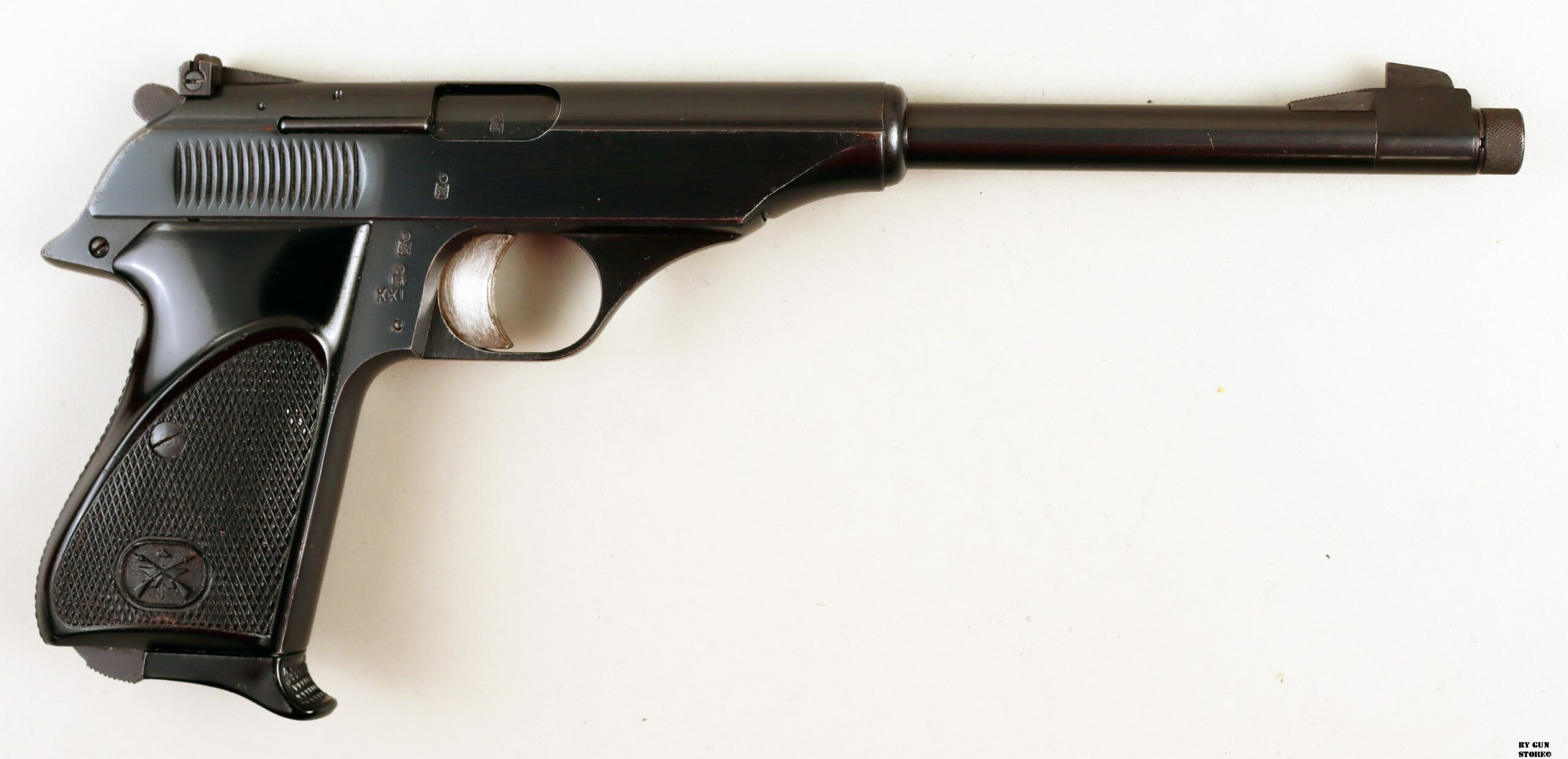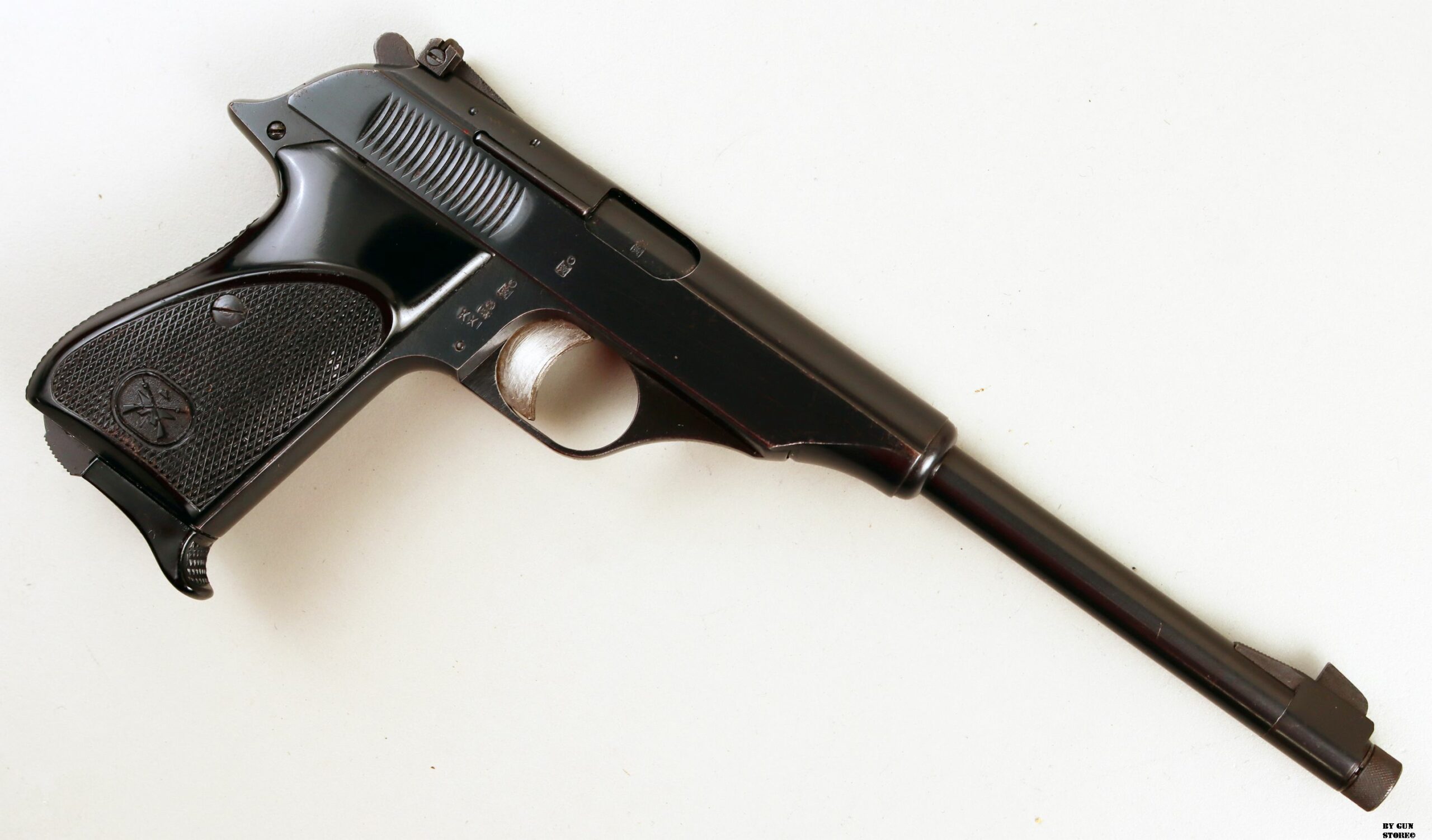 Anno 1965 (XXI) per questa pistola Bernardelli modello 60 in calibro 22. Un versione a canna lunga e mira regolabile ideale per il tiro mirato al poligono. Ottimo pezzo da collezione è completa della scatola coeva, del secondo caricatore, del libretto e della fiala porta olio. Canna meccanica e azione sono ottime. Calibro .22 Long Rifle, Arma Comune.