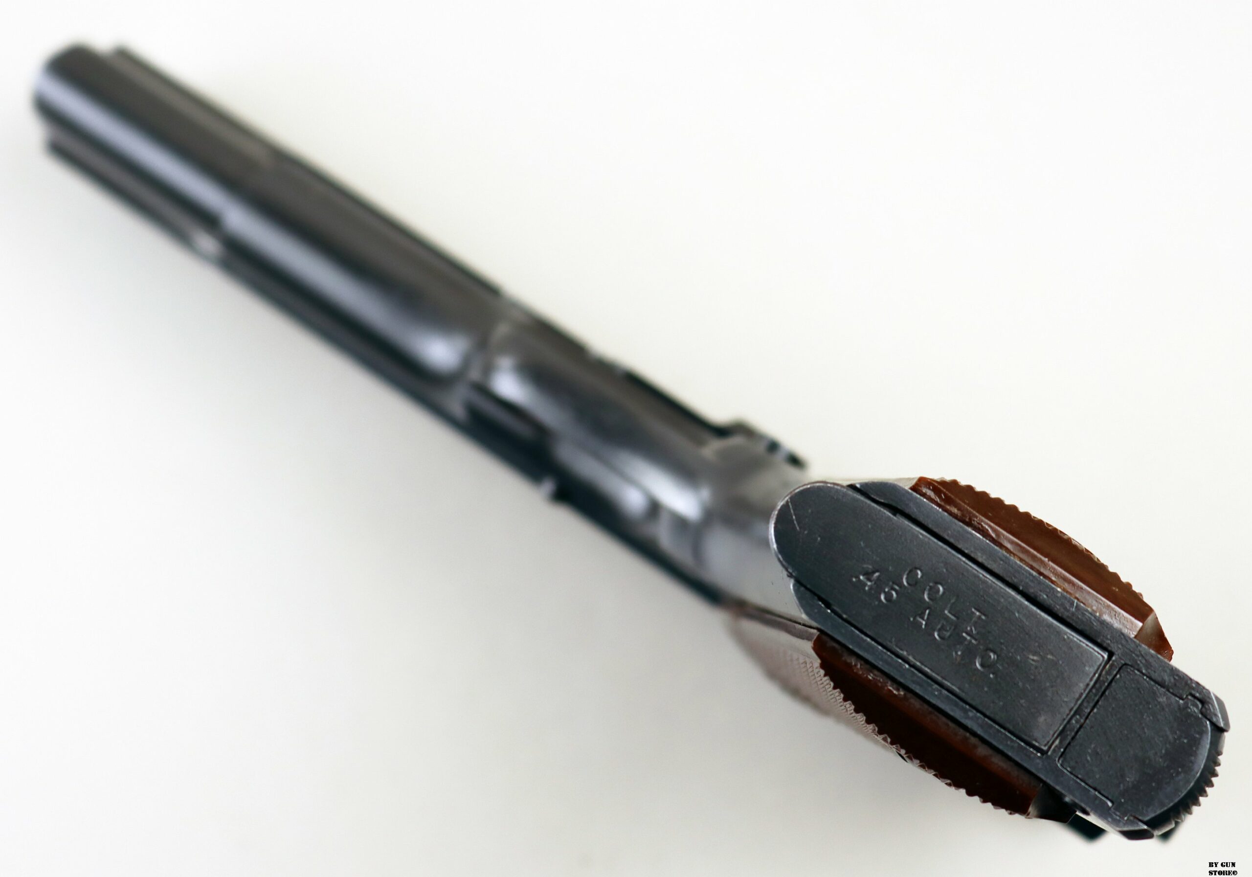 Anno 1968 di produzione presso lo stabilimento Colt per questa non comune pistola Government Model in calibro .45 Acp. Proveniente da collezione è in condizioni splendide. Brunitura lucida completa, canna coeva, meccanica e azione sono perfette. Guancette di plastica originali e coeve. Bancata in Germania nel 1968. Arma che gode di classificazione sportiva 12_00055cs4