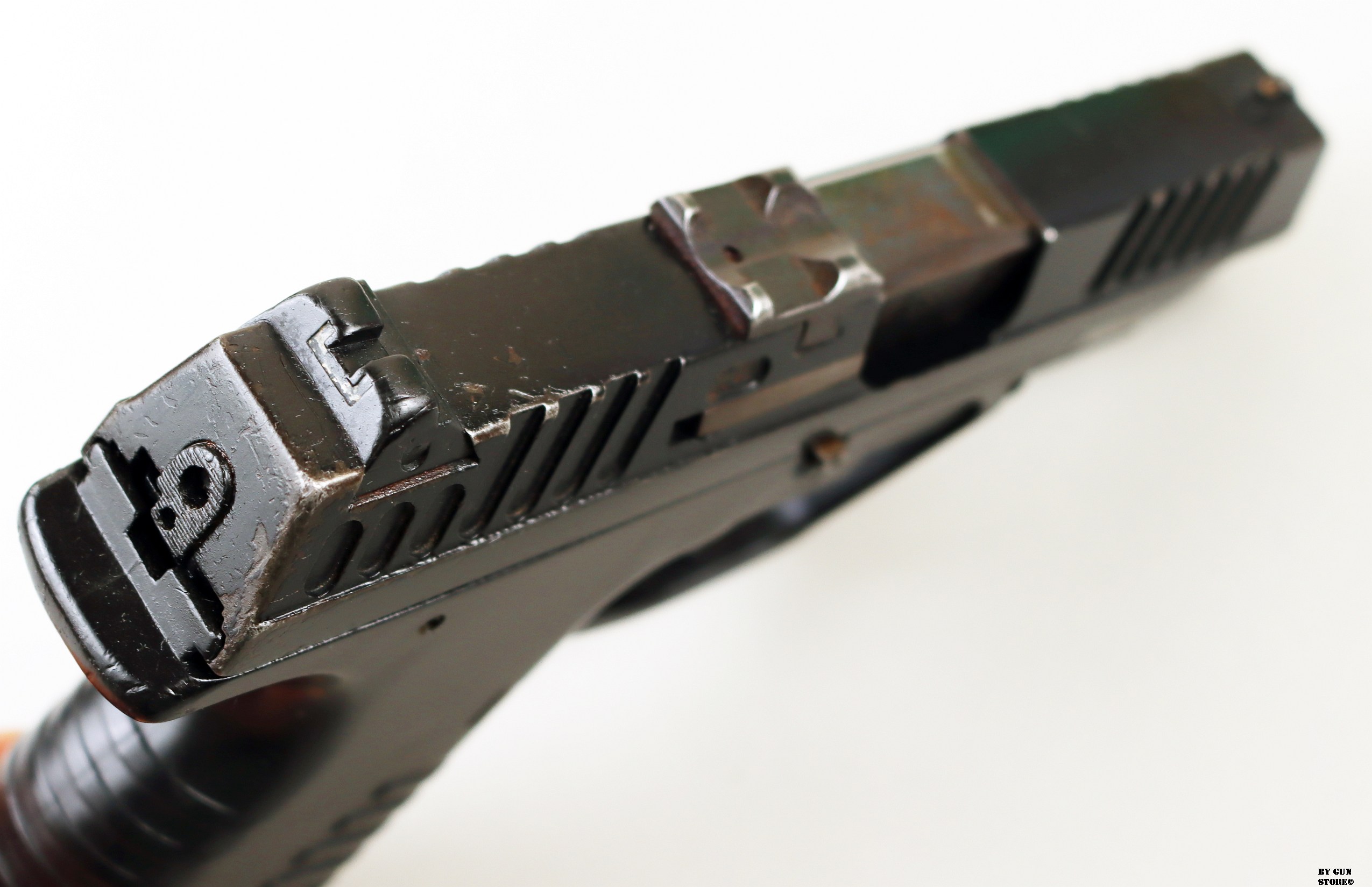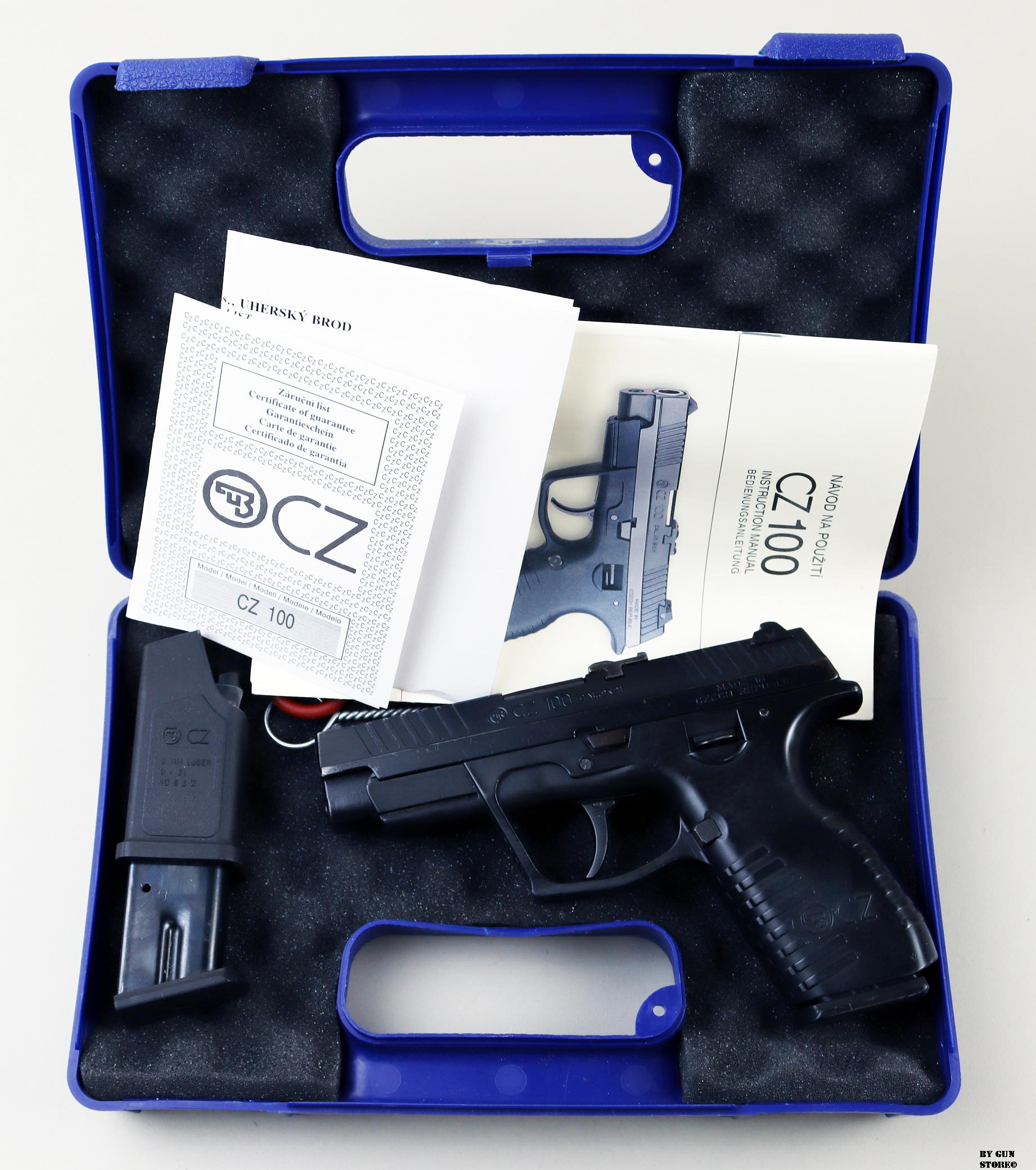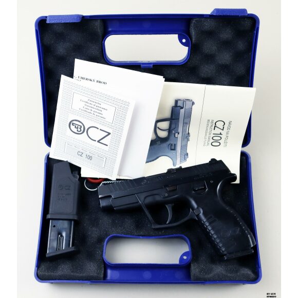 Una pistola CZ modello 100 in calibro 9×21. Ha la dotazione completa della casa. Fusto in polimeri, canna, meccanica e azione sono ottime. Arma con segni esterni ma ottima per meccanica e canna. Carrello con prese anterio. Pezzo ideale per divertimento al poligono o porto in servizio. Arma comune.