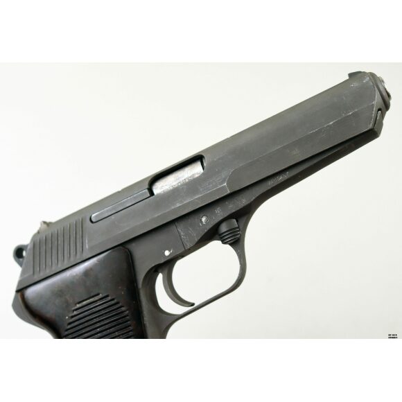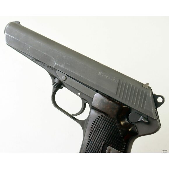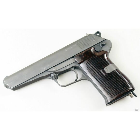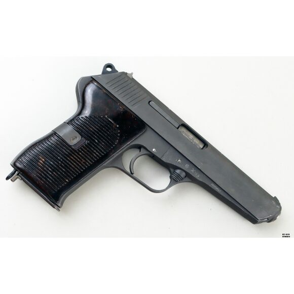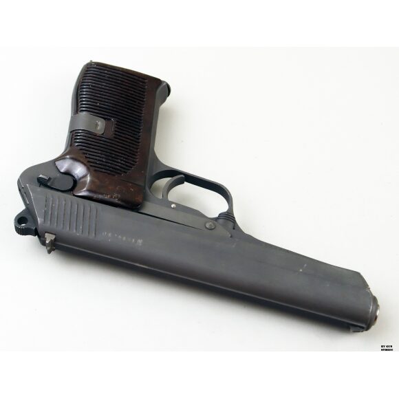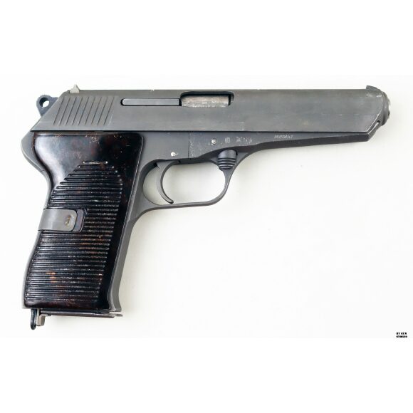 La CZ 52 o VZ.52 (VZOR model 52) è una pistola semi-automatica realizzata dalla Česká Zbrojovka Strakonice tra il 1952 e il 1954. L’arma venne sviluppata come arma da fianco per i membri delle forze armate cecoslovacche dai progettisti Jan e Jaroslav Kratochvíl. La pistola era dotata di una chiusura metastabile a rulli derivata dalla mitragliatrice tedesca MG 42. Come munizioni poteva impiegare le 7,62 x 25 Tokarev , sia in versione standard che quelle sviluppate appositamente per essere impiegate nella pistola mitragliatrice M48. La sicura aveva tre posizioni: spostata in in basso era in posizione di sparo, in orizzontale era in posizione di sicura e, spostandola verso l’alto, fungeva da abbatti-cane. Per la sua realizzazione vennero impiegati i migliori acciai presenti in territorio cecoslovacco. La CZ 52, dalla sua messa in servizio nel 1952, rimase come arma da fianco delle forze armate cecoslovacche fino alla caduta dell’Unione Sovietica avvenuta alla fine degli anni ’80 del XX secolo. Questa è in condizioni ottime: fusto, canna e carrello sono monomatricola. Presenta il marchio di produzione del 1953. Sul carrello sono presenti più punzoni della prova di durezza dell’acciaio tipicamente presenti su quest’arma. Canna a specchio e meccanica perfetta. Ottimo pezzo da collezione o per divertimento al poligono. Arma Comune.