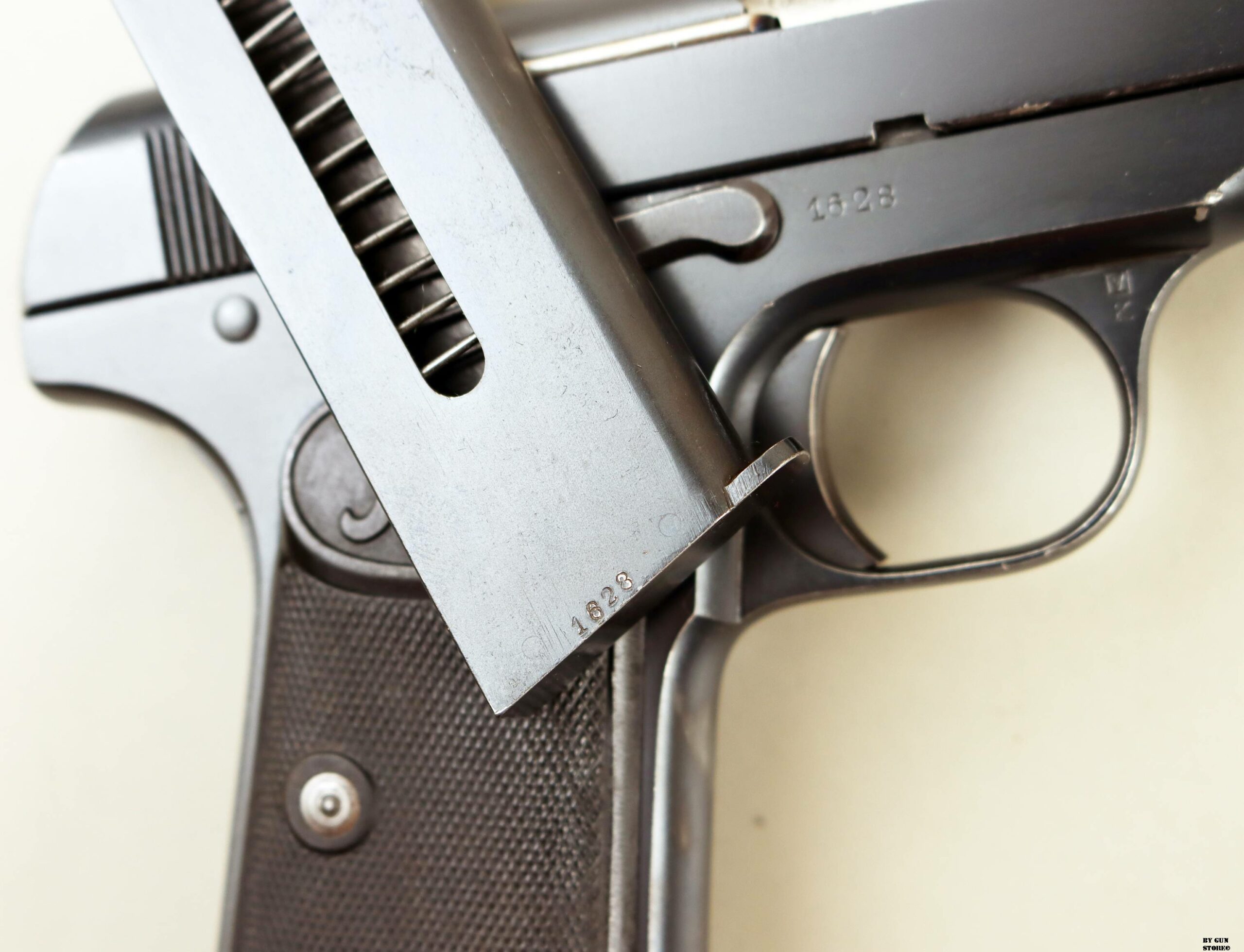 La FN Model 1903 (M1903, FN Mle 1903) o Browning No.2 era una pistola semiautomatica progettata da John Browning e realizzata dal produttore di armi belga Fabrique Nationale (FN). È stata introdotta nel 1903 ed è dotata di cartuccia del tipo 9×20 mm SR Browning Long. Le prime 10.000 pistole furono prodotte dalla Fabrique National d’Armes de Guerre di Herstal, in Belgio, e acquistate dall’agente svedese Paul Berghaus AB di Göteborg. Fu rinominato M/07 (il 16 dicembre 1907). Tutte le pistole consegnate furono controllate dalla fabbrica di armi Carl Gustafs Stads di Eskilstuna. Successivamente questo modello fu prodotto su licenza F.N. e Browning dalla Husqvarna Vapenfabriks Aktibolag. L’arma che presentiamo è in condizioni splendide, matricola 1628 (molto bassa dato che il lotto era numerato da 1 a 10.000), presenta una brunitura, blu intensa, originale e completa. Fusto, canna (non fotografata) e carrello presentano tutti la stessa matricola. Anche il caricatore è monomatricola, rendendo il pezzo ancora più raro. Meccanica, canna e azione sono ottime. Sulla parte posteriore del carrello, sotto la Corona Svedese, sono presenti i punzoni degli ispettori per le armi leggere dell’esercito svedese: HC (Hyltén-Cavallius) e CJ (Carl Edward Johansson). Questo è un Vero pezzo da collezione, in condizioni splendide e un Storia molto interessante. Arma Comune.