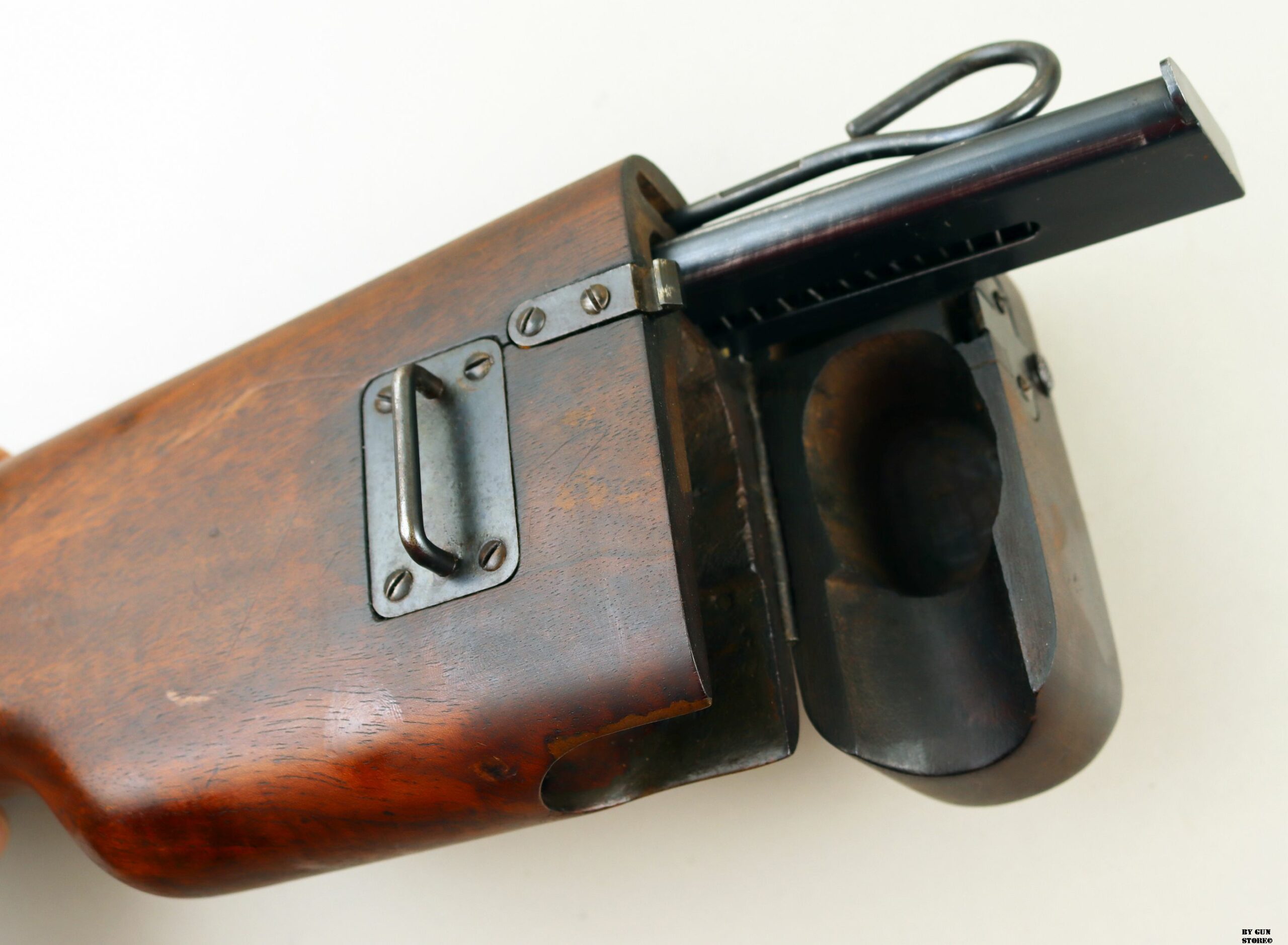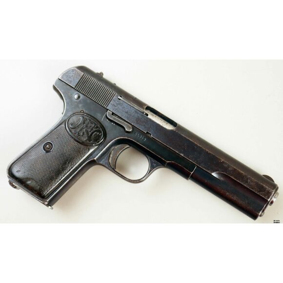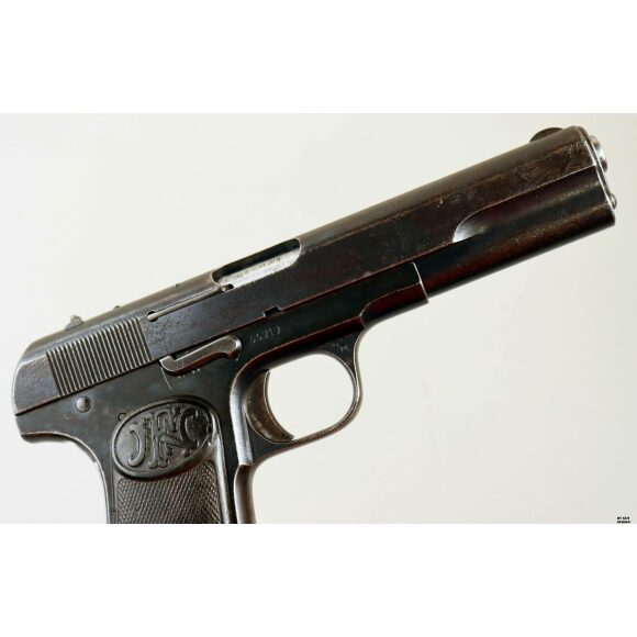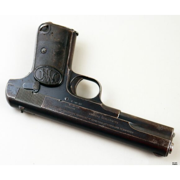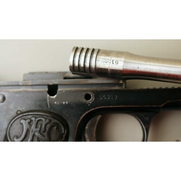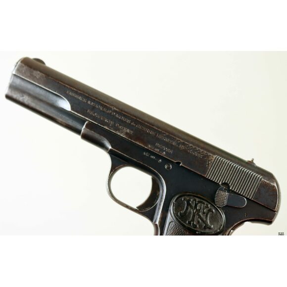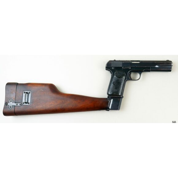 La FN Model 1903 (M1903, FN Mle 1903) o Browning No.2 era una pistola semiautomatica progettata da John Browning e realizzata dal produttore di armi belga Fabrique Nationale (FN). È stata introdotta nel 1903 ed è dotata di cartuccia del tipo 9×20 mm SR Browning Long. Questa è una rara versione dotata di calciolo fondina in legno. La Fabrique Nationale fece questa versione per competere sul mercato con le Mauser C96 e le Luger P08. Caricatore maggiorato, ricoverabile nel calciolo, insieme all’astina scovolo. Arma e calcio sono in un range matricolare abbastanza vicino. Causa di probabile rimescolamento in arsenale. Pare che i Russi abbiamo acquistato un lotto di 5.000 pezzi con questa configurazione. Ma oltre al momento non è dato sapere. Il set è molto raro, soprattutto considerando le condizioni generali. L’arma presenta la brunitura originale ed è monomatricola. Arma comune.