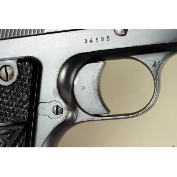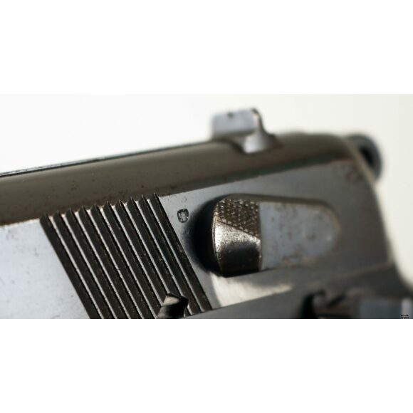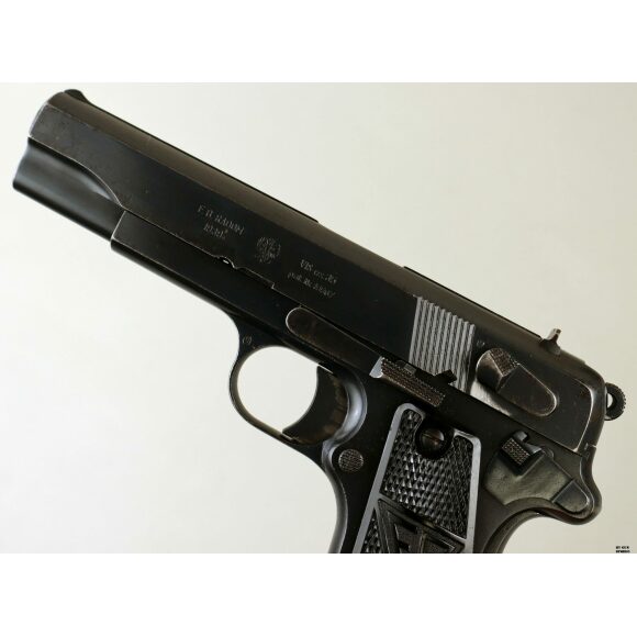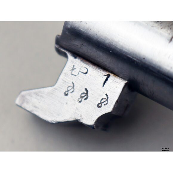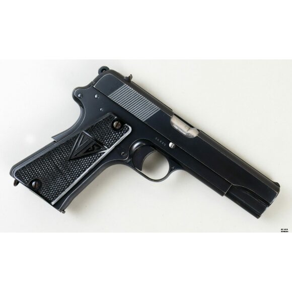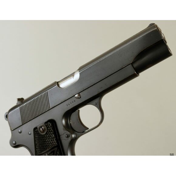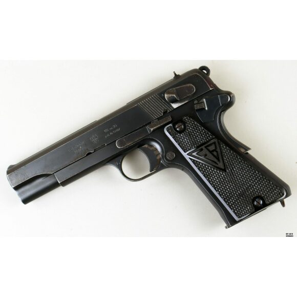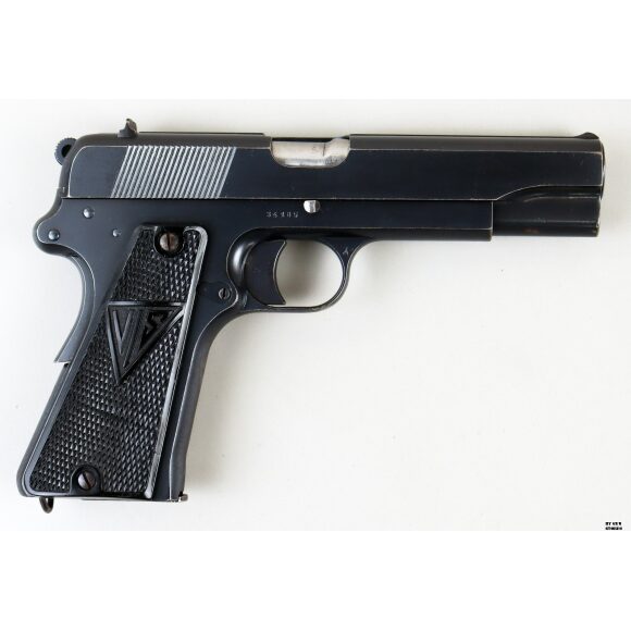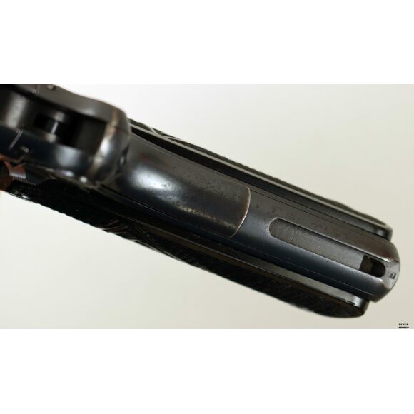 La prima variante è il modello Polish Eagle, così chiamato per la splendida aquila che impreziosisce il carrello dalla profonda brunitura. Queste pistole erano meticolosamente realizzate a mano ed erano all’altezza delle migliori pistole che l’Europa offriva all’epoca. Il modello Polish Eagle era inoltre dotato di una fresatura sul dorsalino. L’idea era di creare una fondina in legno che potesse essere utilizzata anche come calcio da spalla. L’esemplare che proponiamo è stato prodotto nel 1939 e riporta il numero di matricola 34.185. Sul lato sinistro del carrello riporta i marchi “F.B. RADOM VIS wz35 1939r pat Nr. 15567” che circondano la sagoma dell’aquila polacca. L’impugnatura è del primo tipo, con fresatura per calciolo/fondina. Canna e azione sono ottime, la brunitura è originale e l’arma è monomatricola in tutte le sue parti.