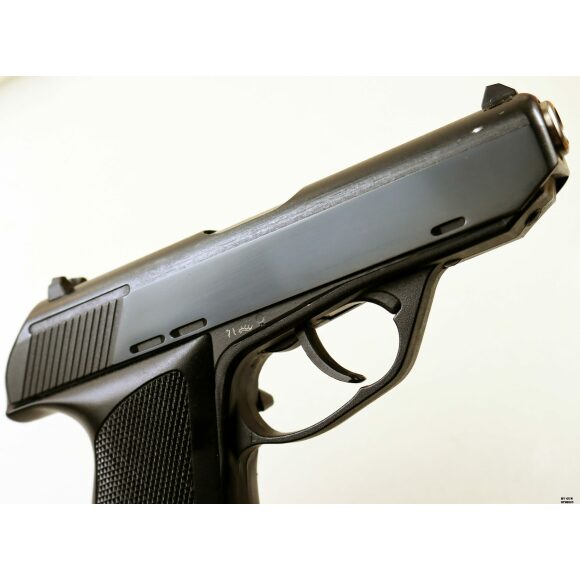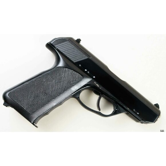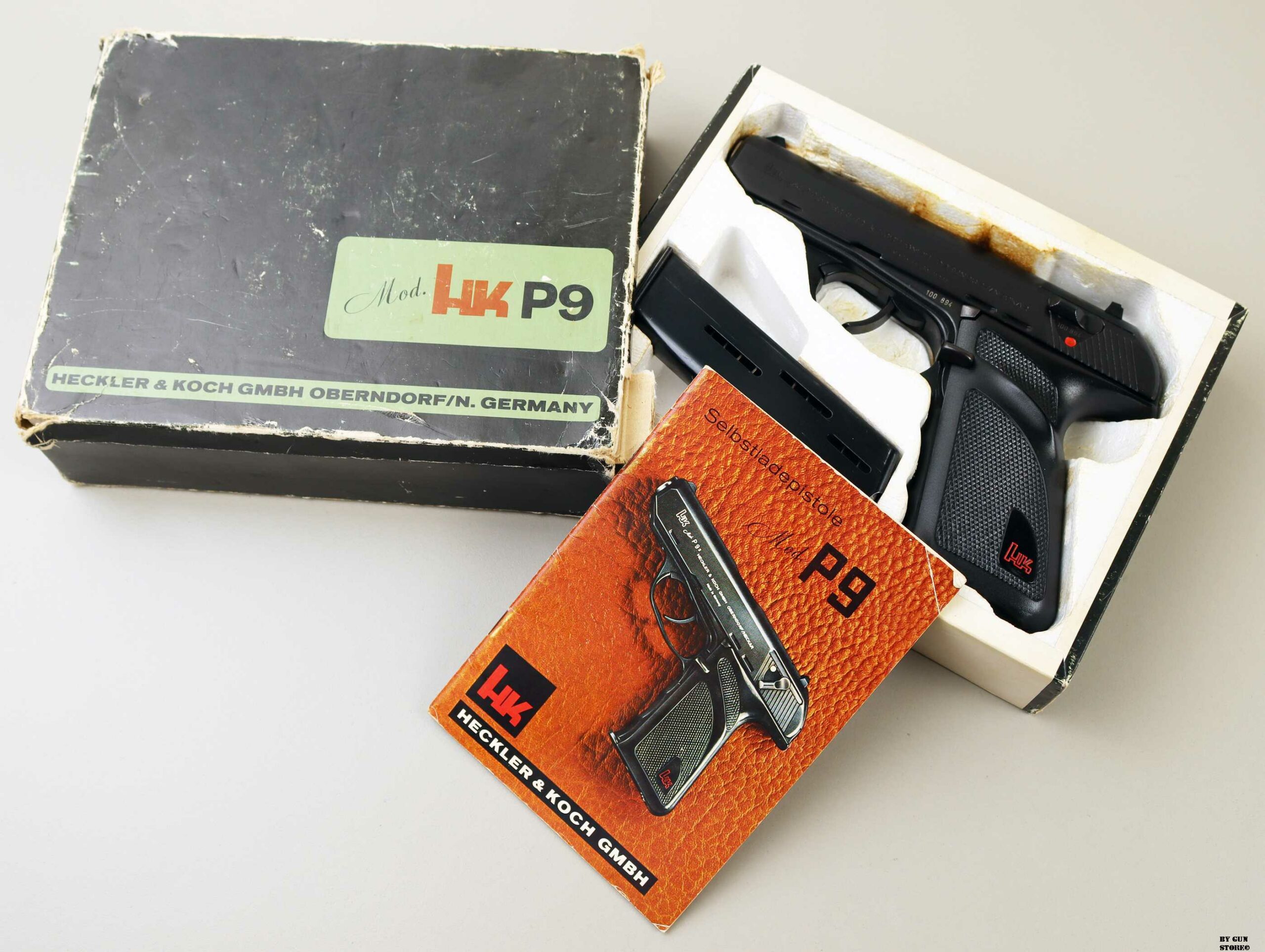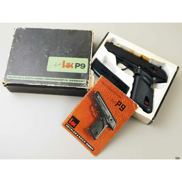 Veramente ottime le condizioni per questa ormai rara pistola Heckler & Koch modello P9S. Questa matricola 100894 è bancata nel 1971, secondo anno di produzione, dato che dal 1968 al ’70 c’era la modello P9 in singola azione. Il fusto è del primo tipo dato che la versione successiva, la più diffusa, prevede il poggiadito sul ponticello. La sigla P9S sta per Pistole 9-Schuss, Spannabzug, tradotto in italiano “pistola a 9 colpi, in doppia azione”. La pistola P9 in calibro 9mm Luger fu sviluppata nel 1968 e inizialmente fu pensata come una pistola a raffica destinata ad equipaggiare i carristi e i paracadutisti, ma di fatto fu prodotta esclusivamente in versione semiautomatica e con caratteristiche tipiche di un’arma per uso civile. Una delle caratteristiche più peculiari della versione P9S è la leva presente sull’impugnatura. Si tratta del comando di chiusura del carrello (hold open) con una triplice funzione: premendolo quando l’arma è in posizione di riposo, cioè con il cane abbattuto, si provoca l’armamento del cane ed è quindi possibile sparare il primo colpo in singola azione. Se l’arma ha il cane armato, spingendo verso il basso la leva e premendo il grilletto, si abbatte il cane. La versione calibro 9 mm per un lungo periodo di tempo fu pistola d’ordinanza del GSG 9, l’unità tattica d’elite della polizia federale tedesca e fu adottata, in versione silenziata, anche dai Navy SEALS statunitensi. Canna, meccanica e azione sono perfette. Questa è dotata di scatola originale, prova di tiro (non visibile in fotografia), libretto e secondo caricatore. Un Vero set per il collezionista. Calibro 9×19 mm, Arma comune.