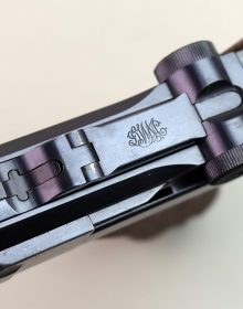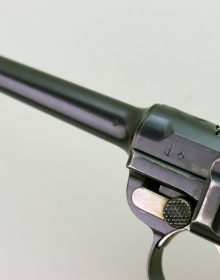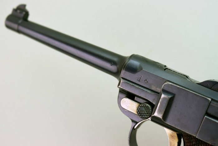 Condizioni ottimee per questa Luger DWM (Deutsche Waffen- und Munitionsfabriken Aktiengesellschaft) modello 1900/06 o “Croce nel Sole” militare facente parte del secondo lotto di consegna da parte dei tedeschi nel 1907 (1500 pezzi con matricole tra 5601 e 7100). Brunitura originale, canna a specchio con rigature molto ben definite. Le parti dorate ancora ben chiare e lucenti, monomatricola (non le guancette) e con il corretto punzone dell’Ispettore Capo Maggiore Vogelsang (che rimarrà in servizio fino al 1913) a fianco della croce di Ginevra. Appena sopra ponticello, sotto la matricola, è presente un “P 34” la marcatura di privatizzazione nel 1934. Sicura dorsale assente per una maggiore immediatezza nel tiro. Caricatore corretto con inserti metallici. Calibro 7,65 Pb. Ottimo pezzo per collezione a tema.