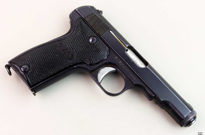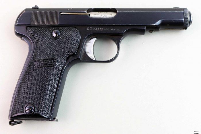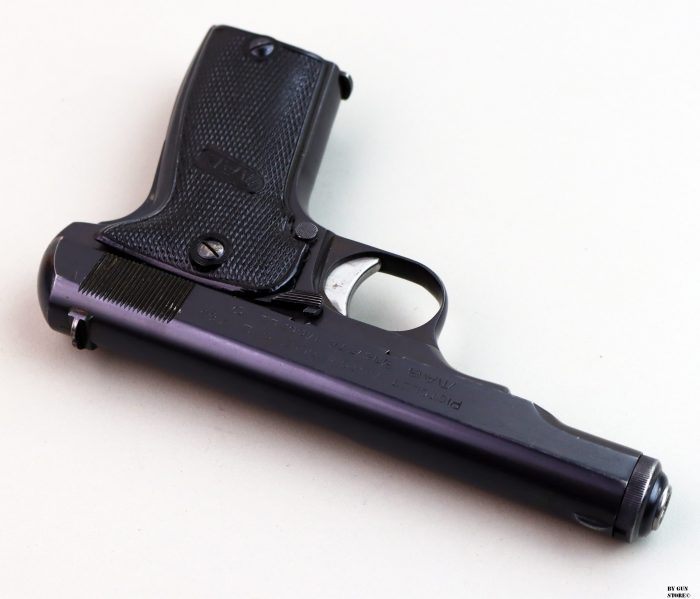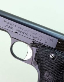 Splendide condizioni per questa “modele D” prodotta dalla francese MAB. Un’arma protagonista anche durante la Seconda Guerra Mondiale in questo caso prodotta sotto occupazione tedesca. Canna e meccanica ottime, brunitura originale, questa presenta l’anello per il correggiolo dato che rientra un lotto prodotto per l’esercito tedesco. Presenta il punzone di accettazione Waffenamt (WaA251). Canna, meccanica e azione sono ottime. Brunitura originale, interessante variante per collezione, calibro 7,65 mm.