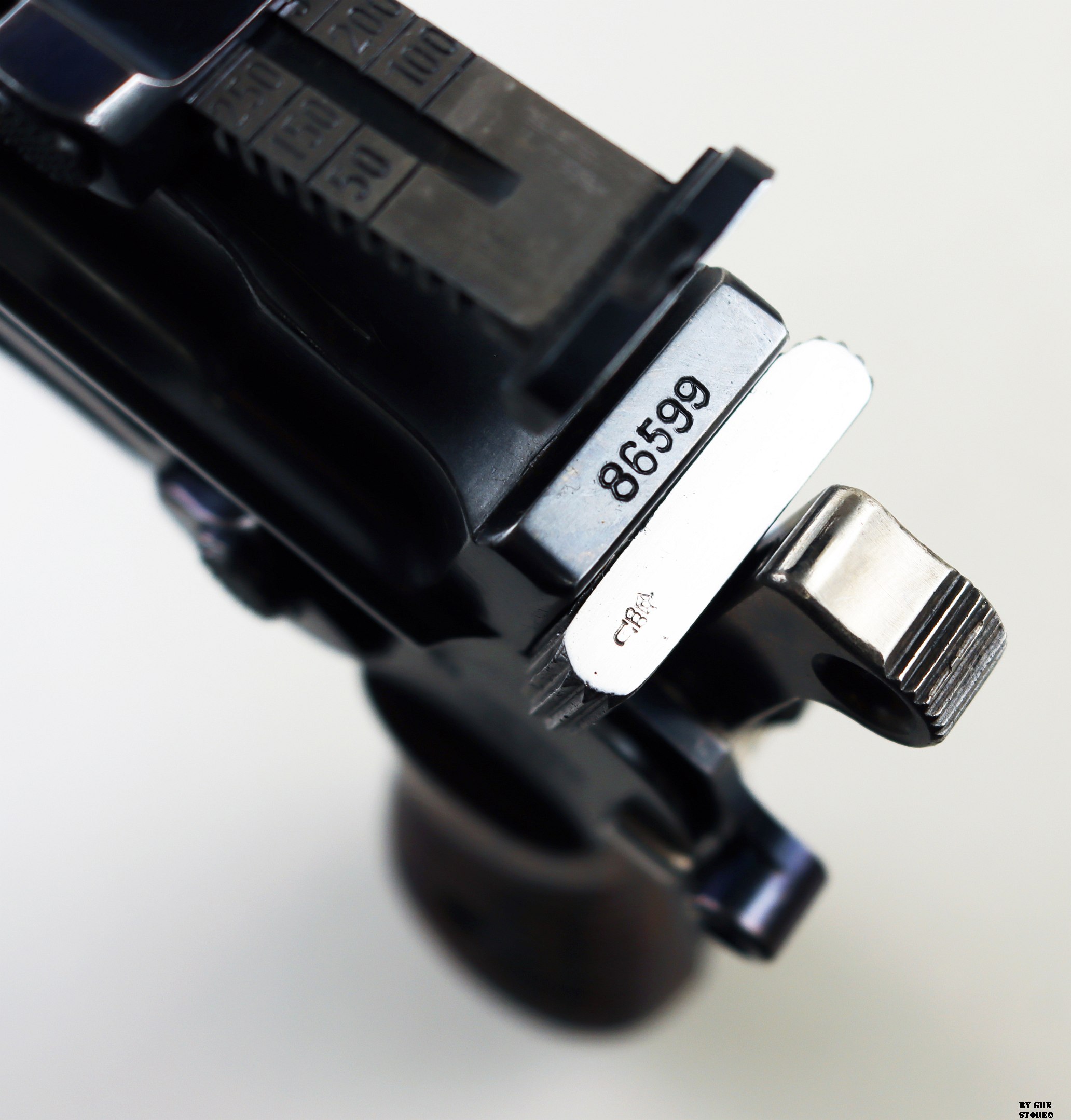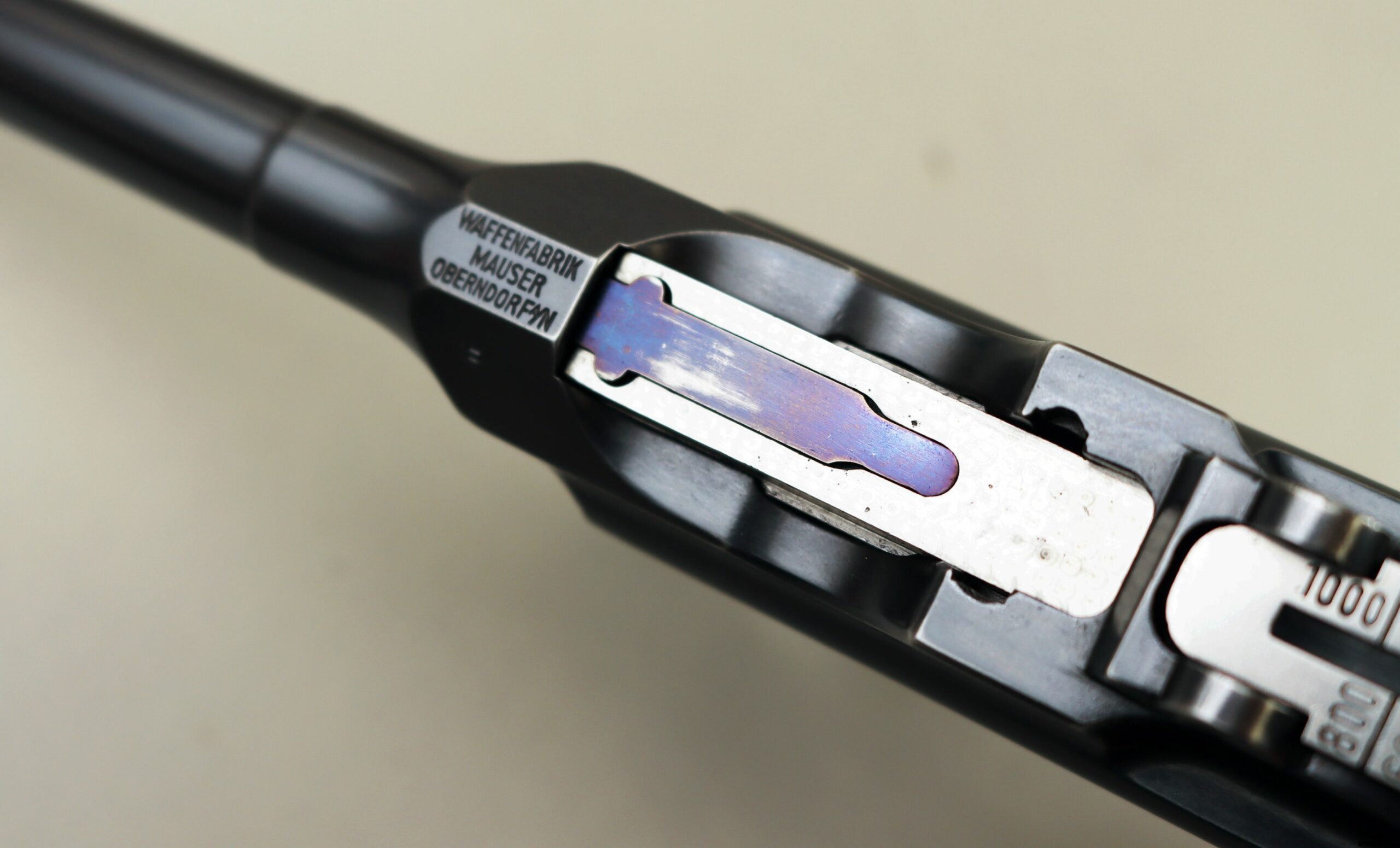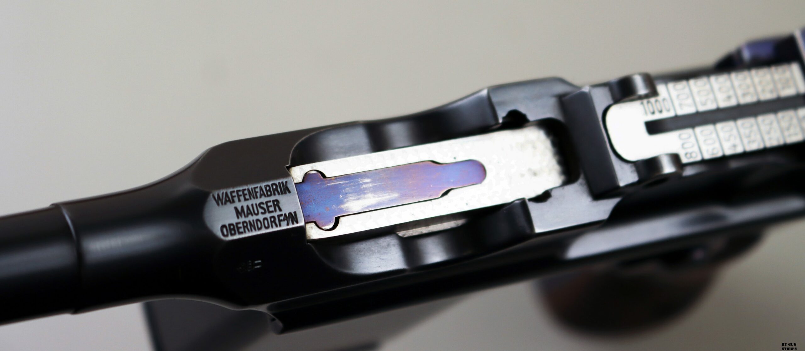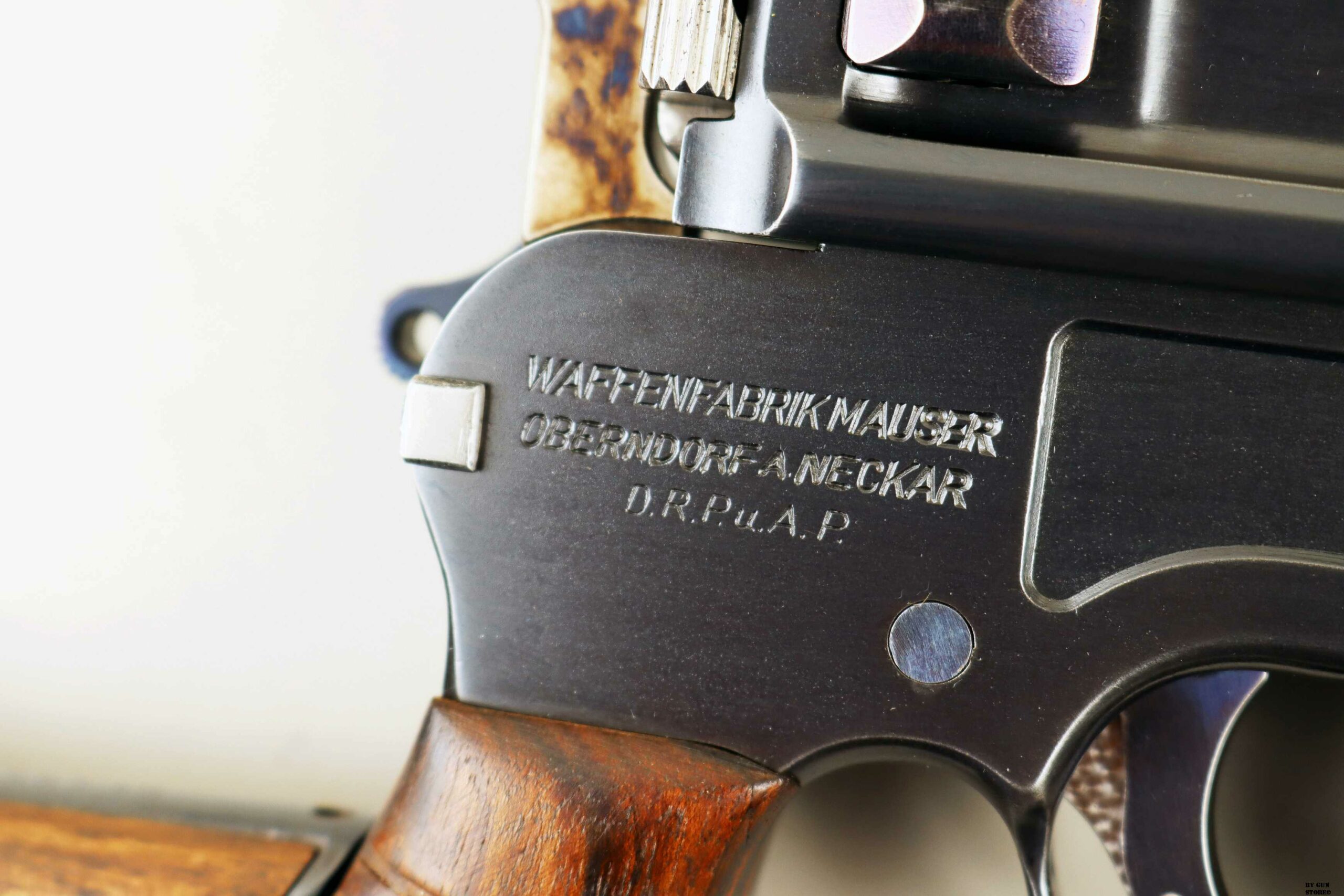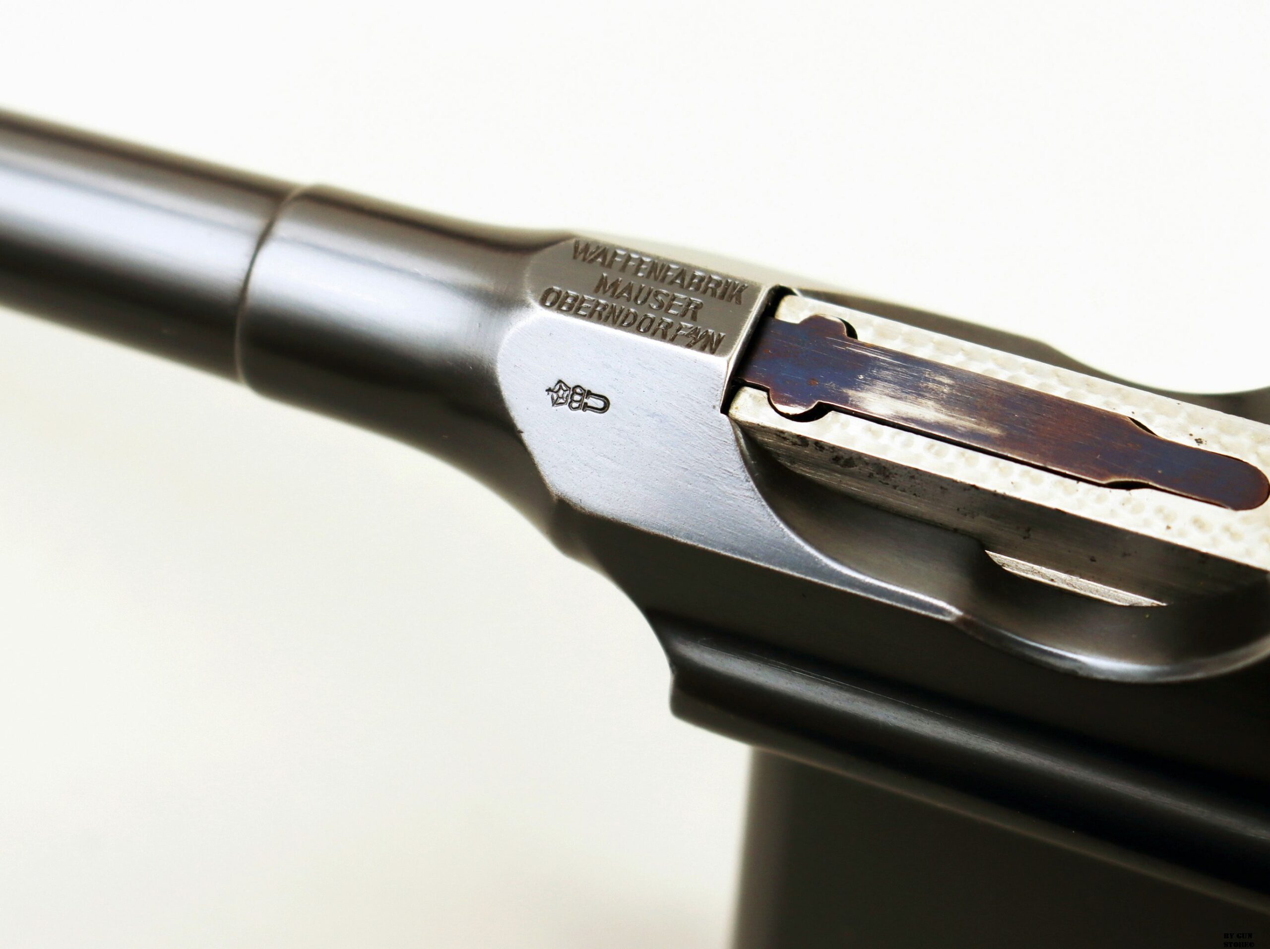 Le aziende spagnole Beistegui Hermanos e Astra iniziarono a produrre versioni della C96 alimentate da caricatore amovibile e a fuoco selettivo rispettivamente nel 1927 e nel 1928, destinate all’esportazione in Estremo Oriente. La Mauser per non perdere quote di mercato iniziò la produzione dello Schnellfeuer (fuoco rapido), la loro versione a fuoco selettivo e caricatore staccabile dell’M30 progettata dall’ingegnere Karl Westinger. La produzione iniziò nel 1932 e terminò nel 1938. Un progetto di grande successo, con circa 98.000 pezzi prodotti con una propria serie di range matricolare. Gran parte della produzione fu destinata all’esportazione in Sud America, Cina e per la guerra civile spagnola. Dal 1932 al 1935, l’esercito jugoslavo testò lotti di Schnellfeuer sia in 7,63 mm sia in 9×19. Anche il governo brasiliano acquistò cinquecento pistole mitragliatrici Schnellfeuer per la Policia Militar do Distrito Federal. Nel 1939, le forze armate tedesche iniziarono ad acquisire la Schnellfeuer con la denominazione militare “Reihenfeuer (“Serie di fuoco”) Pistole Modell 712″. Queste furono distribuite alle unità di polizia militare della Wehrmacht, delle Waffen-SS, alla Kriegsmarine per l’uso della fanteria di marina e alla Luftwaffe per portaordini motociclisti e reparti dell’antiaerea. Si tratta di 7.800 pezzi compresi nel range matricolare da 83.000 e 93.000 (questa è la numero 86599). L’arma ha una canna da 5,5 pollici, un gruppo di mira posteriore graduato da 50 a 1.000 metri e l’attacco per un un calciolo/fondina in legno (presente). Si differenzia dalla C96 standard per il caricatore amovibile e un selettore di fuoco sul lato sinistro del telaio con marcature “N” per “Normalfeuer” (fuoco a colpo singolo) e Reihenfeuer (“fuoco in serie”). Di fianco è presente il MAUSER banner. In modalità completamente automatica, la pistola produce una cadenza ciclica di circa 900 colpi al minuto, il che la rende quasi incontrollabile se non si monta il calciolo. Questa si presenta in ottime condizioni generali con canna, meccanica e azione ottime. Ha una bellissima brunitura a tampone e ai sali (grilletto, estrattore, cursore dell’alzo, selettore) che sono successive alla produzione. Comuque un ottimo pezzo con classificazione ad uso sportivo 24_00010ds1