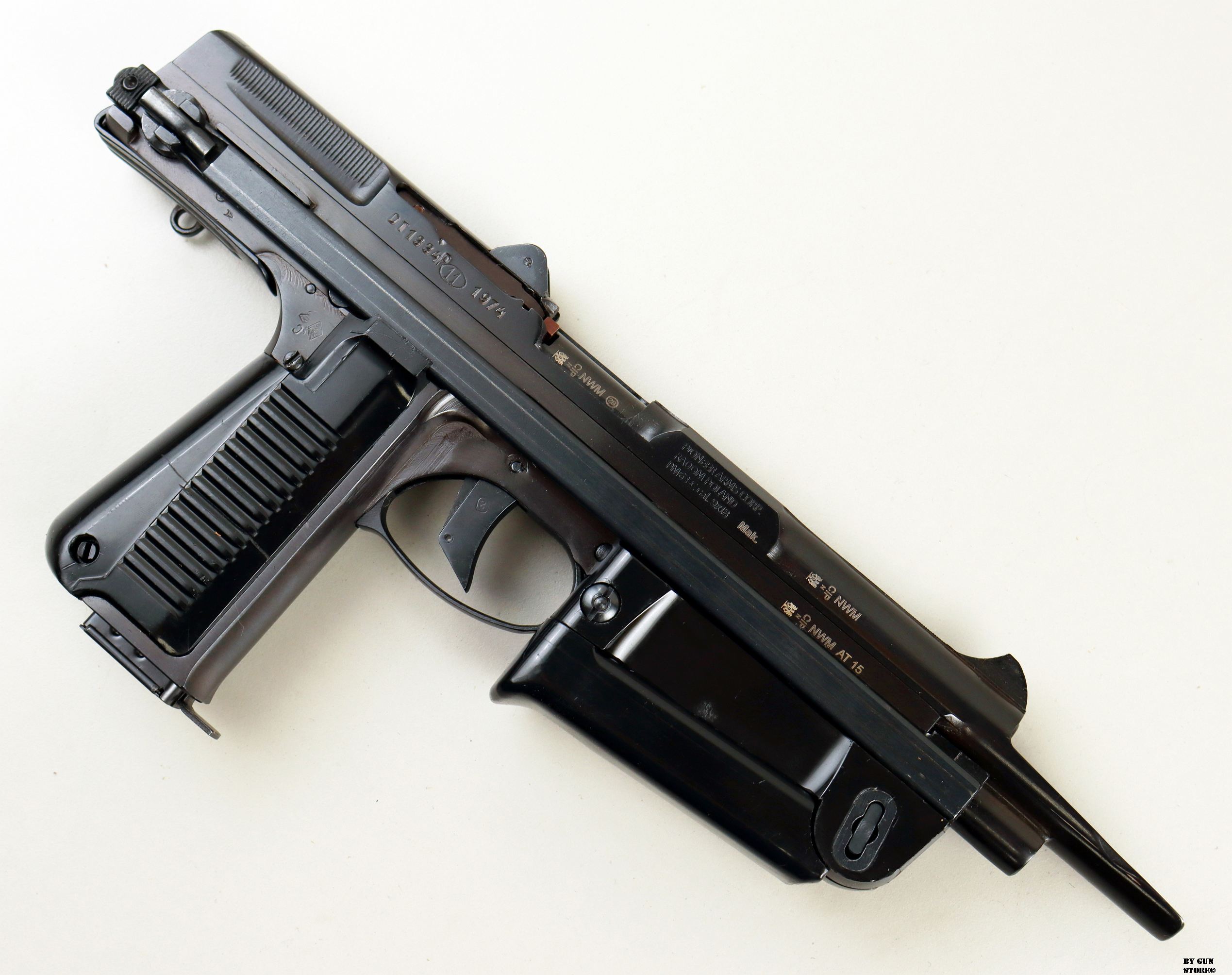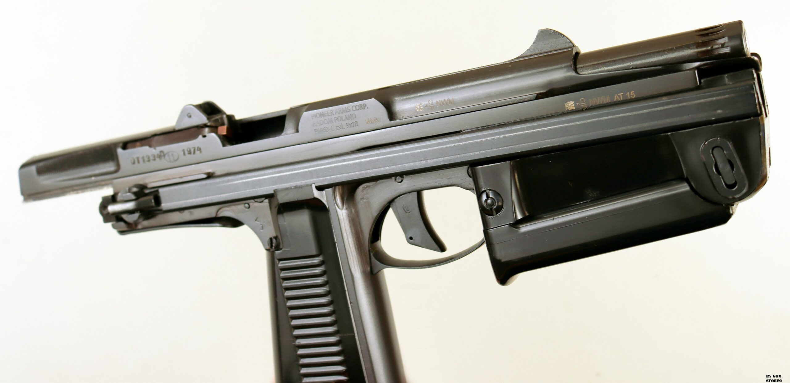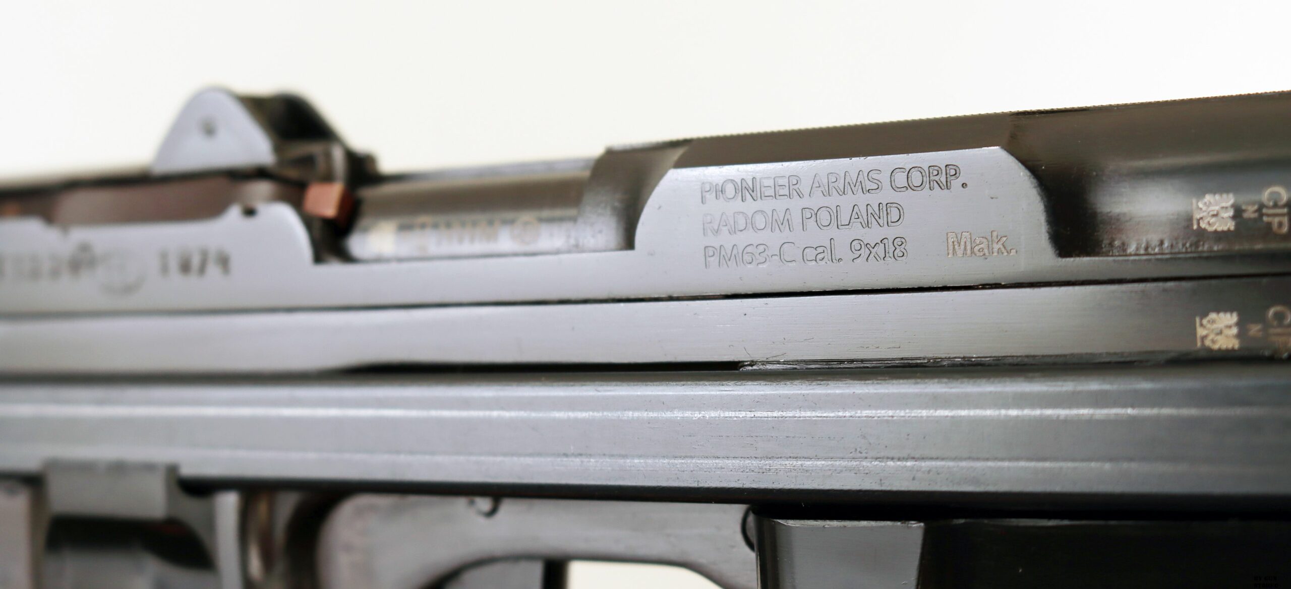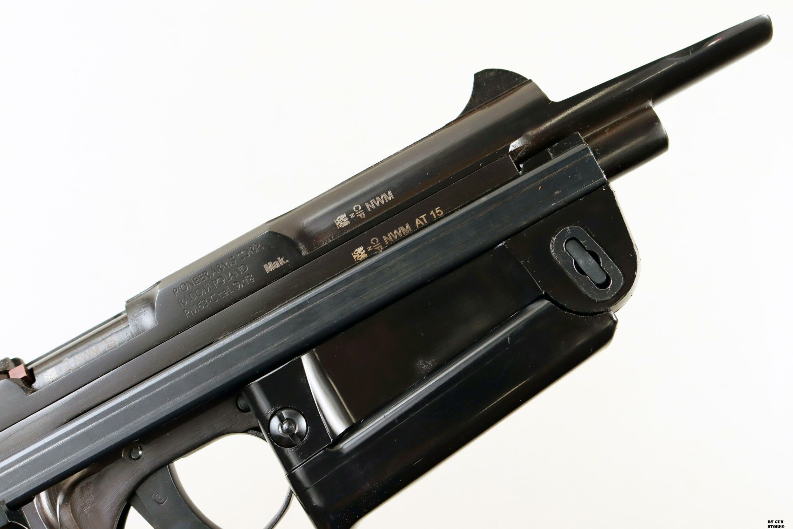 Pistola semiautomatica polacca PM-63C RAK calibro 9×18. Questo modello è dotato di un caricatore originariamente da 15 colpi. Prodotto da Pioneer Arms Radom, Polonia.