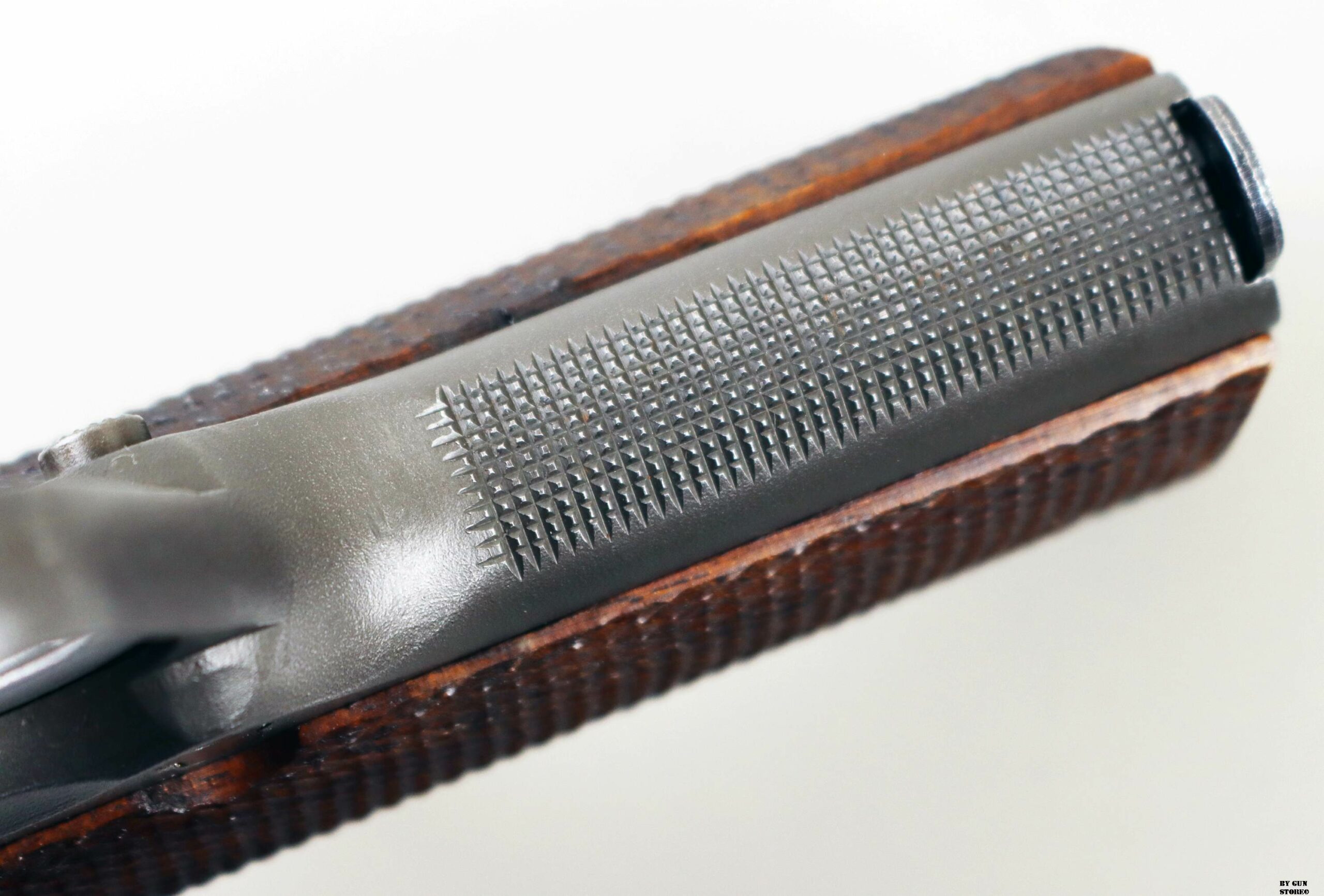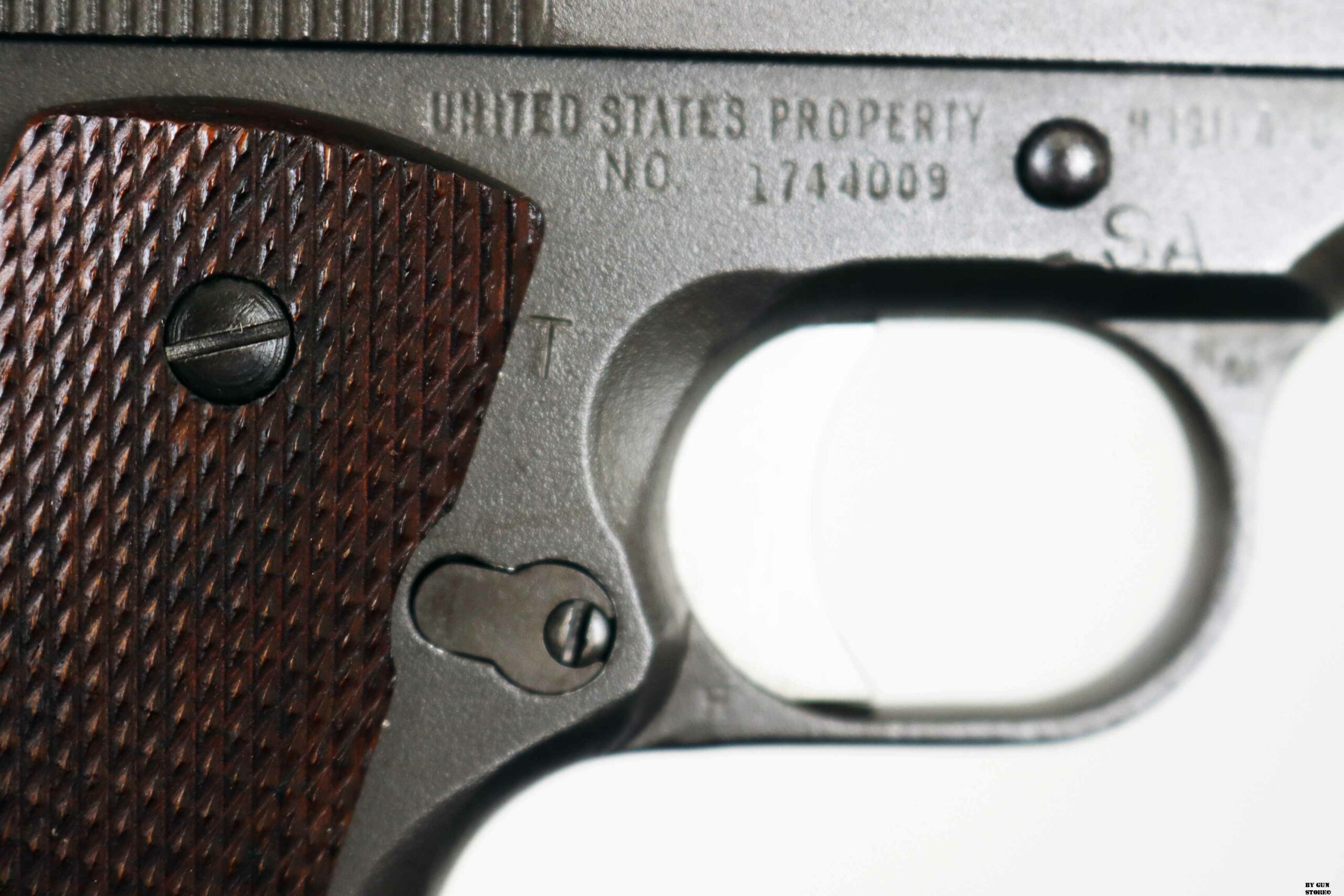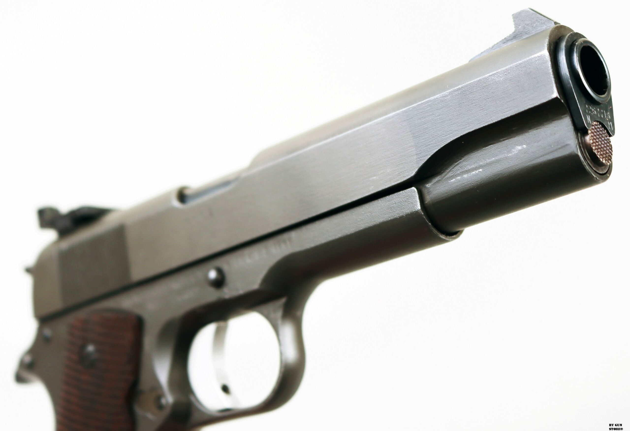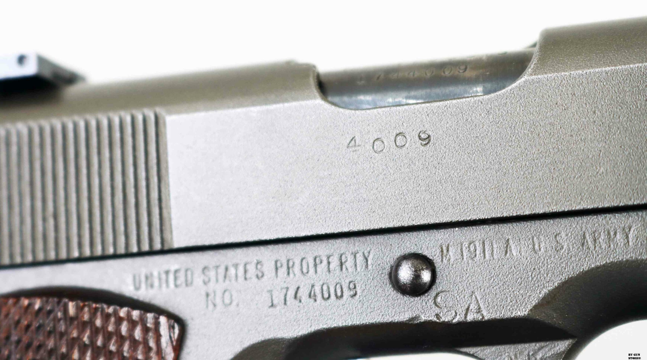 Le prime pistole di servizio da competizione, prodotte dall’Army Ordnance Corps per l’uso nelle National Matches, furono distribuite in occasione delle National Matches del 1955 ai concorrenti e nella Scuola di Tiro con Armi Leggere. Quella prima pistola da competizione National era identica nell’aspetto a una normale pistola di servizio 1911A1, fatta eccezione per la sostituzione delle guancette in plastica standard con quelle in noce zigrinato. Internamente, la precisione della pistola National Match del 1955, fu migliorata grazie alla sostituzione della canna di servizio con una canna National Match, della boccola della canna d’Ordinanza con una boccola National Match e del collegamento della canna con un collegamento speciale. La boccola e il collegamento di ricambio servivano a riportare la canna, dopo il rinculo, in una posizione più precisa rispetto al carrello e alle mire per ogni colpo. Ogni anno successivo, la pistola National Match ha subito ulteriori miglioramenti e modifiche. Nel 1956, ad esempio, il mirino di servizio fu sostituito con uno largo 1/8″ e la tacca di mira posteriore fu ridotta a 1/8″. Le mire del 1957 erano più alte (0,395 per la tacca posteriore e 0,295 per il mirino anteriore) e quelle del 1958, a 0,458 e 0,358, erano ancora più alte. Nel 1961 fu introdotto il mirino posteriore regolabile di tipo commerciale, il Micro Sight, che venne poi sostituito nel 1963 dal mirino posteriore di tipo Elliason. Mentre alcune pistole National Match venivano vendute ogni anno ai partecipanti al National Match e ad altri acquirenti autorizzati dal Direttore del Tiro Civile, quelle che rimanevano sotto il controllo governativo venivano generalmente restituite ogni anno alla Springfield Armory per essere ricostruite secondo le nuove specifiche. I tiratori che acquistavano queste pistole, in molti casi, le facevano modificare per incorporare i miglioramenti più recenti. Pertanto, le prime pistole National Match nella loro configurazione originale sono relativamente rare. La pistola National Match qui esposta presenta la zigrinatura a croce fresata sulla parte anteriore dell’impugnatura, introdotta nel 1959, il grilletto in alluminio risalente al 1961, la canna è marcata NM 7790313, il mirino posteriore è ancora del tipo Micro Sight punzonato con i cannoni incrociati dell’Ordnance Department. Il bushing anch’esso originale è marcato NM 7267718 (tutti i modelli NM utilizzavano la stessa boccola della canna con questa matricolazione). Le caratteristiche di quest’arma la riporta come produzione del 1961 (972 pezzi prodotti di cui 137 rivenduti su autorizzazione del Direttore del Tiro Civile), anche perchè, nel 1962, la SA smise di stampare le ultime 4 cifre del numero di serie sul lato destro del carrello (su questa è presente il numero 4009 – a partire dal 1963 o 1964, iniziò a stampare le ultime 4 cifre del numero di serie del fusto sul carrello, sotto il fermo del percussore). Tutti i modelli National Match utilizzavano la stessa boccola della canna rullati NM7267718. L’arma di partenza è una Remington Rand prodotta tra il 1944 e 1945 (lotti da 1.610,000 a 1.655,000 & da 1.750,000 a 1.790,000 & 1.816,691 a 1.869,313), con la fosfatazione corretta. Il fusto indica che l’arma è stata ispezionata e accettata sotto la supervisione del Colonnello Frank J. Atwood (FJA – ufficiale dell’Ordnance Department dell’Esercito statunitense, responsabile del distretto di Rochester – New York – tra il 1942 e il 1946, che controllava la produzione bellica). Da notare anche il punzone SA sempre sul fusto che indica il passaggio all’Arsenale di Springfield e che fusto, canna e carrello presentano tutti la stessa matricola. Canna (originariamente Colt militare), meccanica e azione sono ottime. Vero e raro pezzo, in calibro .45 Acp, da VERA collezione vista la rarità, che gode di classificazione ad uso sportivo 18_00275cs1.