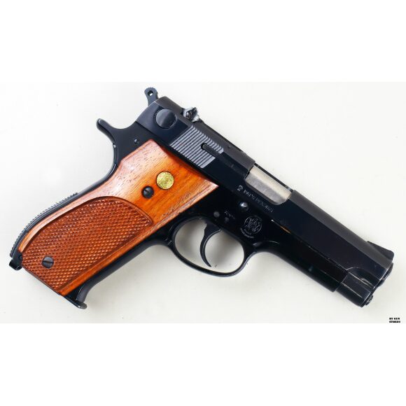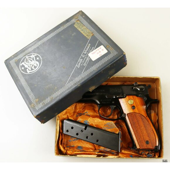 Anno 1972 di importazione in Germania per questa pistola Smith & Wesson mod. 39-2 adattata al mercato dell’epoca italiano in 7.65 Parabellum. Canna, meccanica e azione sono perfette. Arma completa di scatola e secondo caricatore. Arma comune.