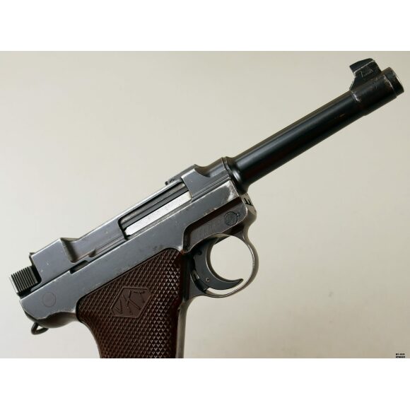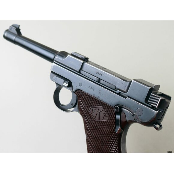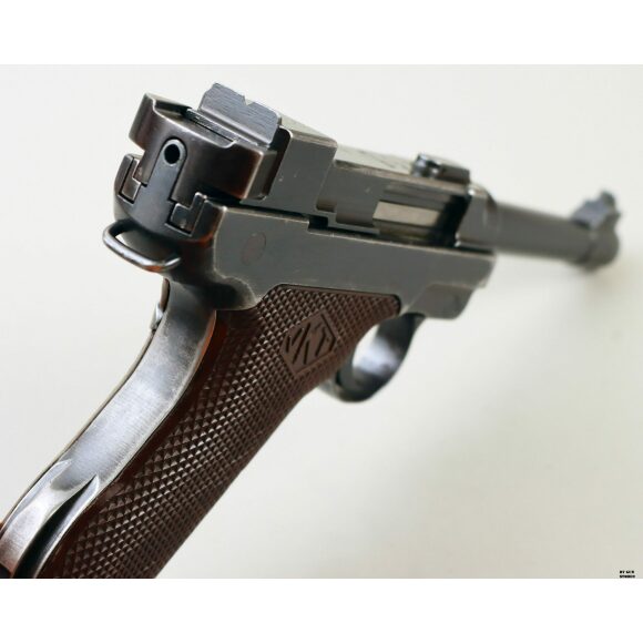 - Serie 2: Questa serie di produzione di circa 1.000 pistole fu realizzata intorno al 1941-1942. Le pistole non presentavano più dettagli inutili realizzati all’interno della pistola per parti (recuperatore del carrello) omesse dopo la serie 0. I numeri di serie erano circa 3700-4700. La nostra che presentiamo ha matricola 3744.