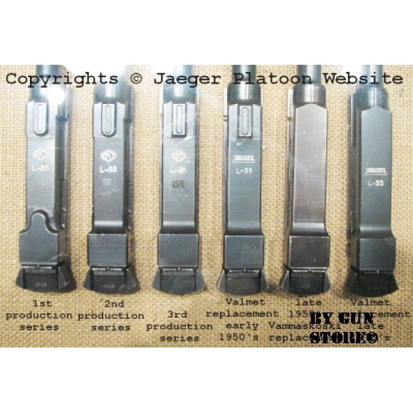 - Serie 4: Dopo la Seconda Guerra Mondiale, le forze armate finlandesi avevano pistole più che sufficienti per l’uso in tempo di pace. Tuttavia, le fabbriche Valmet Oy Tourula (fabbrica VKT con il nuovo nome) avevano ancora molti componenti semilavorati per la pistola L-35. L’azienda decise di sfruttare questi componenti esistenti utilizzandoli per produrre pistole per il mercato commerciale. Questa produzione, che contava poco più di 2.000 pistole, aveva numeri di serie compresi tra 6800 e 9300. La maggior parte di queste pistole fu venduta all’estero. Tutte le L-35 della serie 4 presentavano le marcature Valmet e L-35 sulla parte superiore del carrello, al posto delle marcature VKT e L-35 utilizzate nelle serie di produzione precedenti. Le pistole della serie 4 non avevano inoltre l’attacco per il calcio, che era stato utilizzato in tutte le serie di produzione precedenti.