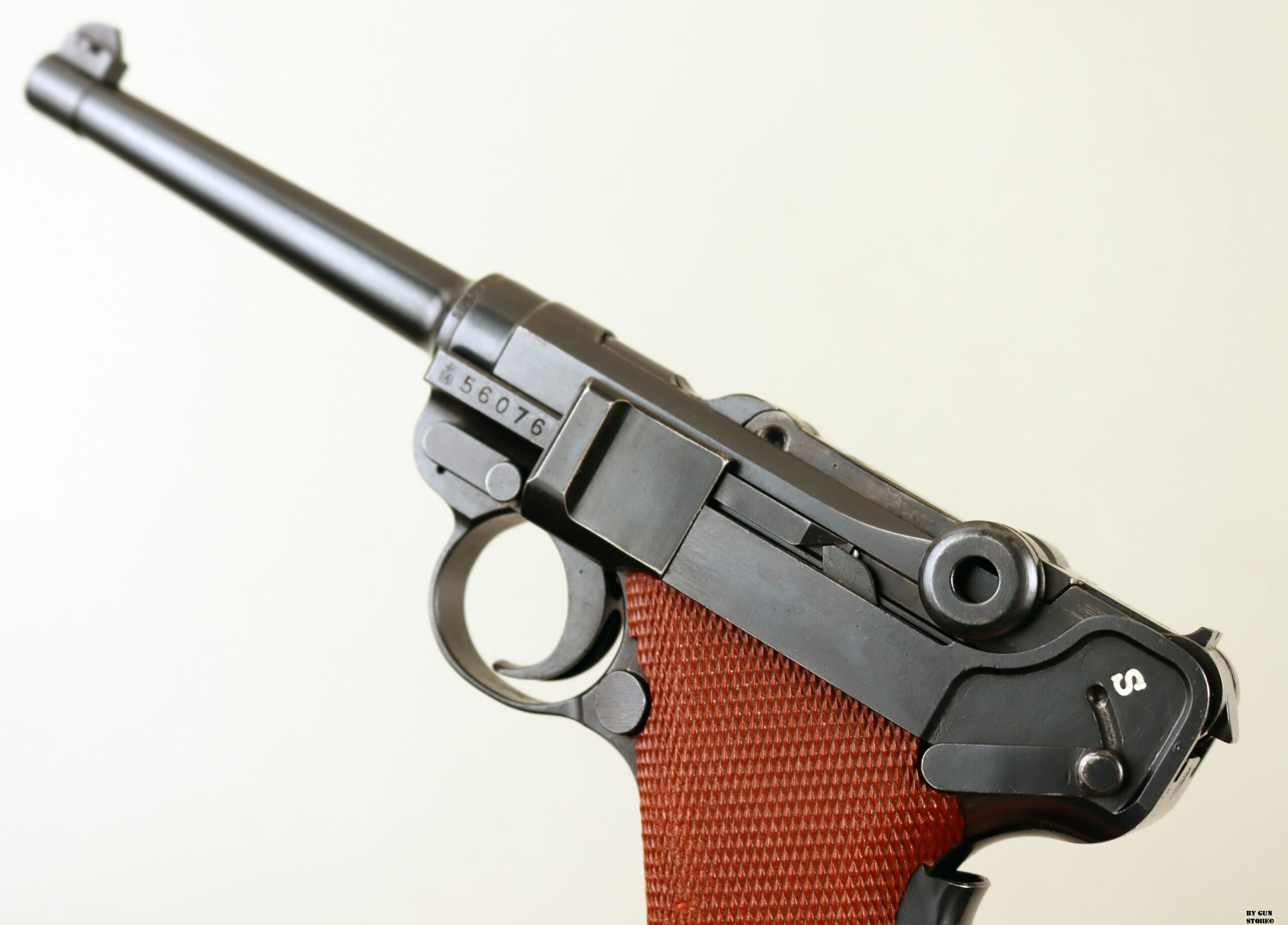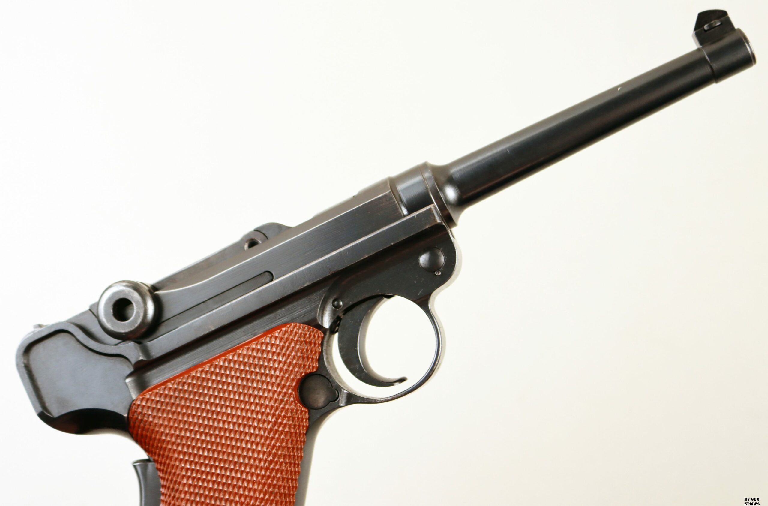 Condizioni splendide per questa pistola Luger prodotta dalla Waffen Fabrik nel modello 1906/1929. Meglio conosciuta come “guance rosse” appunto per le guancette originali in canevasit (un laminato di cotone molto fine legato con resina fenolica). Arma con brunitura perfetta e originale, monomatricola, con canna, meccanica e azione perfette. Presenta il punzone dell’Ispettore militare Maggiore Mühlemann che verificò le armi d’Ordinanza dal 1913 al 1941. Le 06/29 hanno range seriale da 50.001 a 77.941 e produzione dal 1933 al 1946, per un totale di 27.940 pezzi. Le guancette in canevasit vennero mantenute fino a circa la matricola 57.000, poi sostituite da quelle più resistenti in bachelite nera e poi marrone. Sul ponticello è presente al “P” di privatizzazione, quando l’arma decomissionata fu immessa sul mercato civile. Unico neo il fondello del caricatore in plastica in sostituzione di quello molto fragile in canevasit. Vero pezzo da collezione. Classificazione sportiva