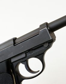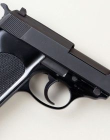 Ottima arma ex ordinanza della Bundeswehr questa Walther modello P38 prodotta a Ulm nel maggio del 1965. Nel maggio 1957 nel nuovo stabilimento Walther a Ulm fu ripresa la produzione della P38 con alcune modifiche. Il fusto della pistola era ora in alluminio. La sua superficie era anodizzata nera, con una finitura semi-opaca. Le guancette erano ora in plastica nera zigrinata. Il carrello e la canna erano fosfatati. Alla ripartenza della produzione la canna non era più costruita in un unico pezzo. Quella di nuova generazione consisteva di un tubo interno della canna che comprendeva la rigatura, e una guaina esterna sulla quale erano realizzati per fresatura sia l’alloggiamento per il blocco di chiusura sia il mirino. Nel 1959 la Bundeswehr cambiò il modo di chiamare le armi in dotazione. Furono create delle categorie in base al calibro e la pistola P38 in calibro 9x19mm diventò la P1. Walther adeguò i marchi sul carrello a partire dal 1963. I fusti in lega leggera furono rinforzati con un inserto d’acciaio di sezione esagonale dalla larghezza di 2.5 millimetri che in una seconda revisione fu portata a tre millimetri. Condizioni ottime per canna, meccanica e azione. Calibro 9×19 mm. Classificazione Sportiva 22_00013s7