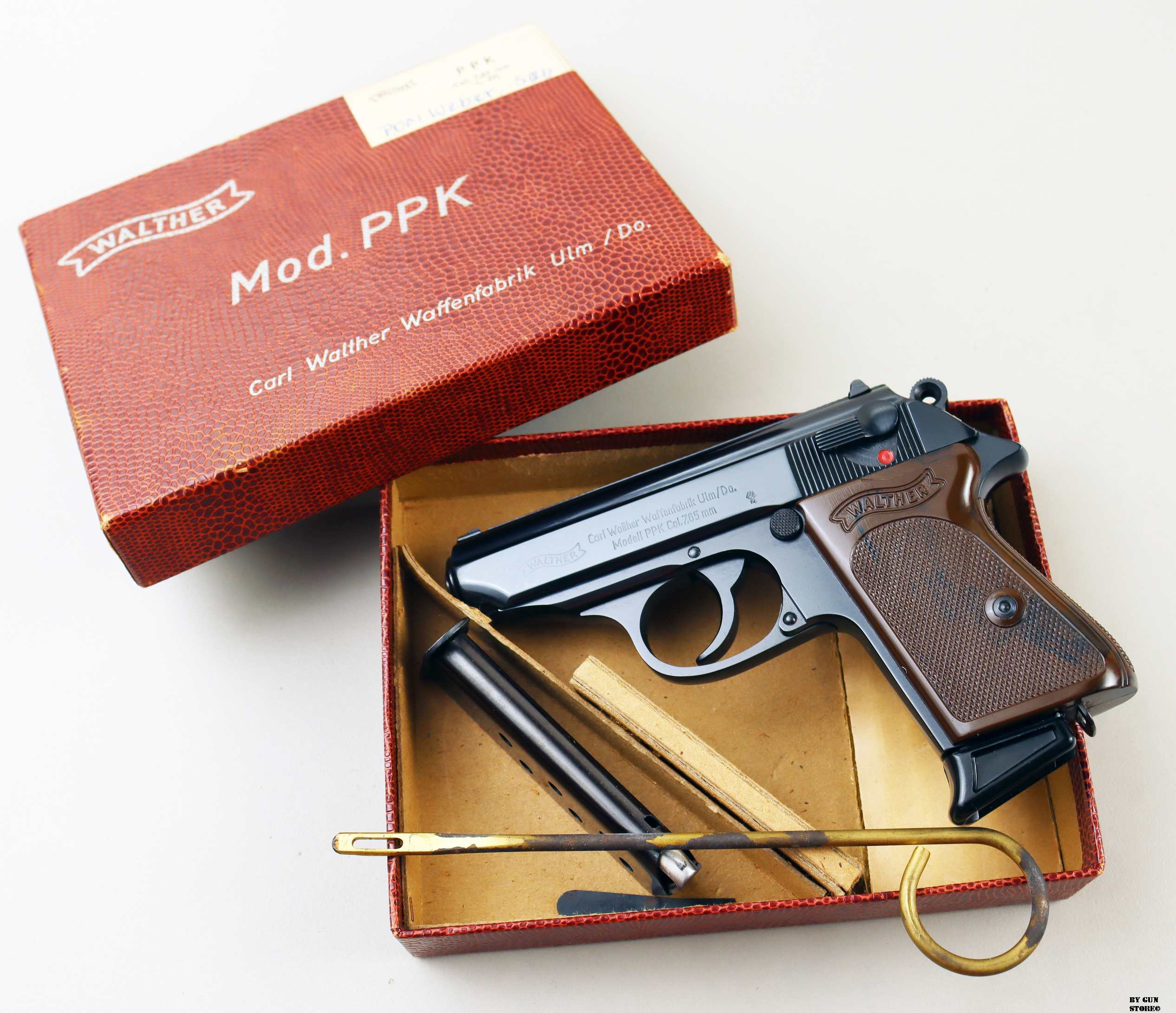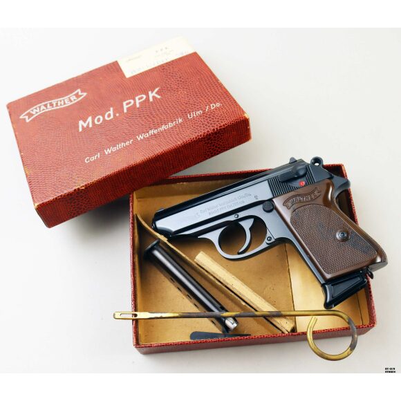 Condizioni perfette per questa classica pistola Walther modello PPK in calibro 7,65 mm. Brunitura originale, meccanica e canna ottime. Pezzo ideale per collezione, difesa o divertimento al poligono. Completa di scatola matricolata, secondo caricatore, astina scovolo, libretto (non fotografato) e chiavetta. Calibro 7,65 mm, arma comune.