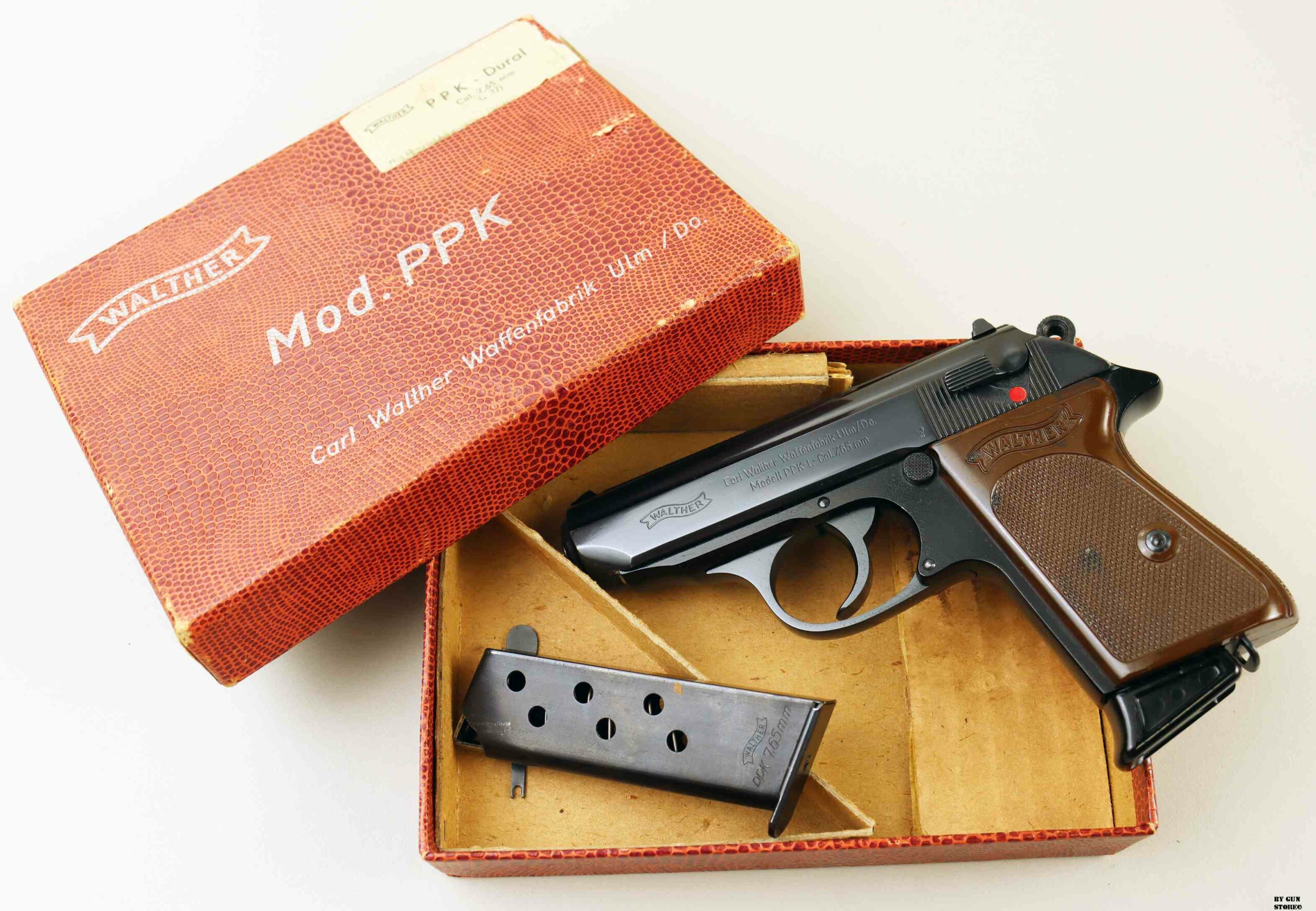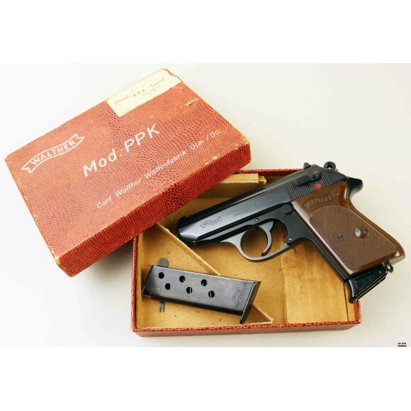 Condizioni perfette per questa classica pistola Walther modello PPK-L, con il fusto in lega, in calibro 7,65 mm, prodotta a bancata Ulm nel 1967. Brunitura originale, meccanica e canna ottime. Pezzo ideale per collezione, difesa o divertimento al poligono. Completa di scatola matricolata e secondo caricatore. Calibro 7,65 mm, arma comune.