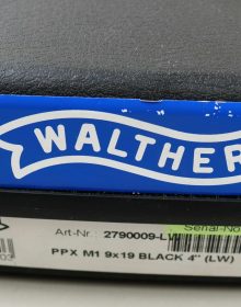 Anno 2013. Mai arrivata in Italia (pensiamo che questo sia l’unico esemplare in calibro originale) la Walther PPX è una pistola semiautomatica sviluppata dalla tedesca Carl Walther e disponibile in calibro 9 × 19 mm Parabellum e .40 Smith & Wesson. La pistola è per uso ambidestro, con rilascio del caricatore a pulsante e guancette ergonomiche. Prodotta in Germania prevalentemente per il mercato USA, questa che proponiamo è in condizioni pari al nuovo ed appena fresca di importazione. In scatola originale matricolata completa di tutta la dotazione di fabbrica. Arma comune.