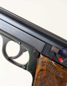 Anno 1939 di produzione per questa non comune versione di pistola Walther Zella Mehlis modello PPK con il fusto in versione leggera in Ergal. studiata appositamente per il porto veniva spesso data in dotazione ai piloti della Luftwaffe. Questa di produzione civile e priva di punzoni militare era comunque spesso di appannaggio degli ufficiali dell’esercito tedesco. Con sicura già a 60° ancora con brunitura blu ai sali ha canna, meccanica e azione in ottime condizioni. E’ una rara variante ideale per un valido posto in collezione. Calibro 7,65 mm.
